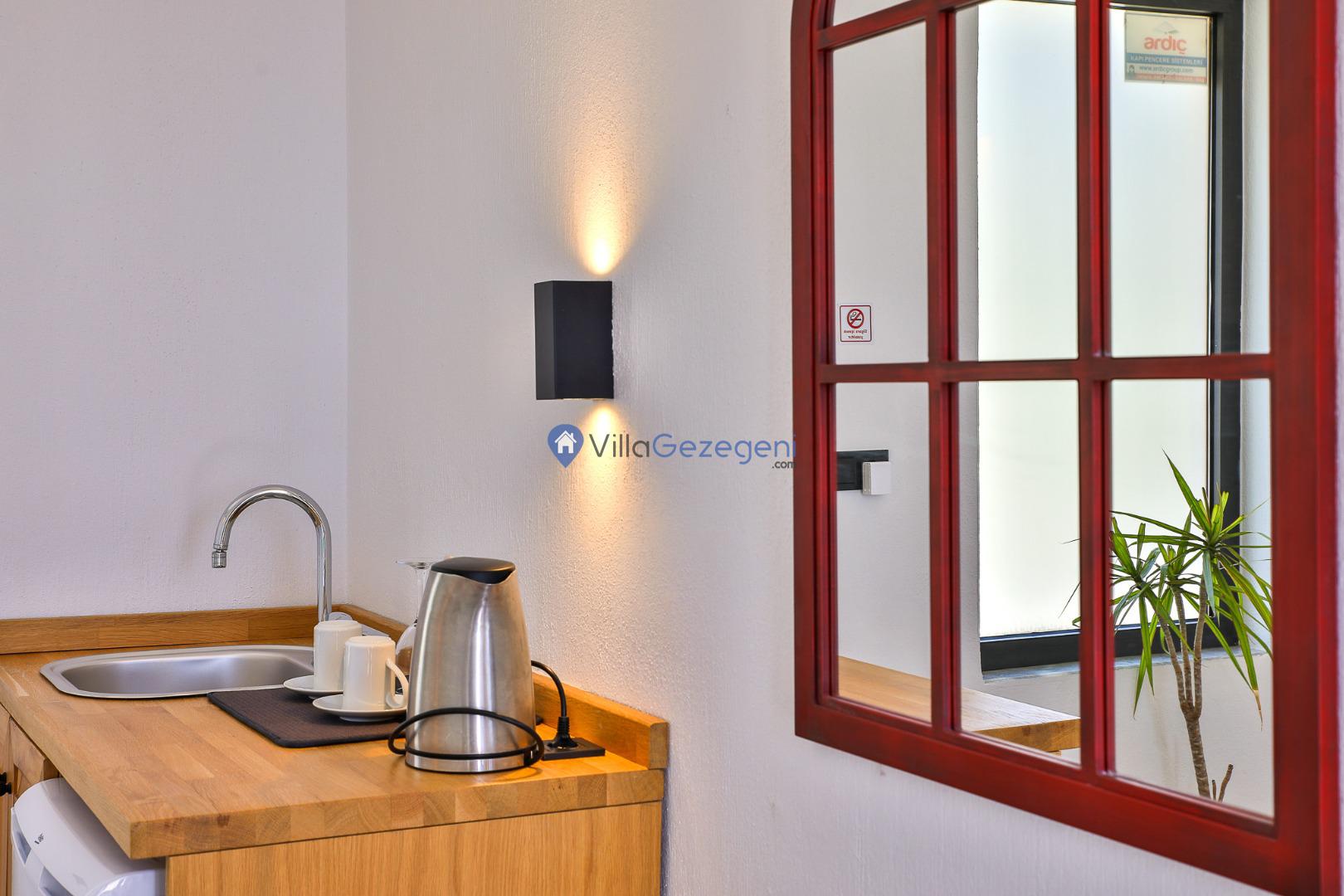 Villamız günlük hayatta sık kullanılan; Mikrodalga fırın, ankastre fırın, buzdolabı, çamaşır makinası, bulaşık makinesi, elektrikli su ısıtıcı kettle, ankastre 4’lü ocak,6 kişilik yemek takımı, kaşık ve çatal takımı, tencere ve tava takımı, bardaklar yer almaktadır. İhtiyacınız durumunda villamızda bulunmayan malzemeler hakkında bizle iletişime geçebilir ve yardım isteyebilirsiniz.