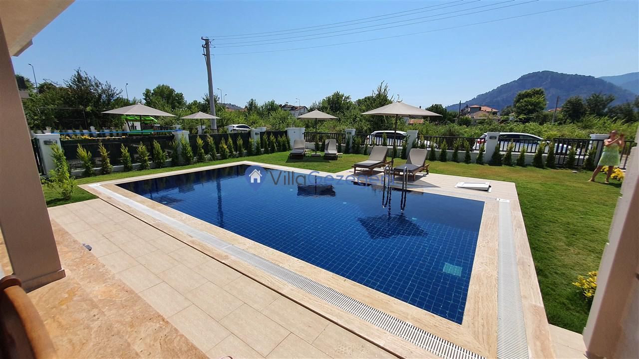 Villa Güneş Ortaca'nın bahçesi, sizlere huzurlu ve keyifli bir açık hava alanı sunar. Bahçede yer alan geniş havuz terası, yüzme havuzunun etrafında yer almakta olup, gün boyu güneşlenebileceğiniz şezlonglar ve serinlemek için güneş şemsiyeleri ile donatılmıştır.
