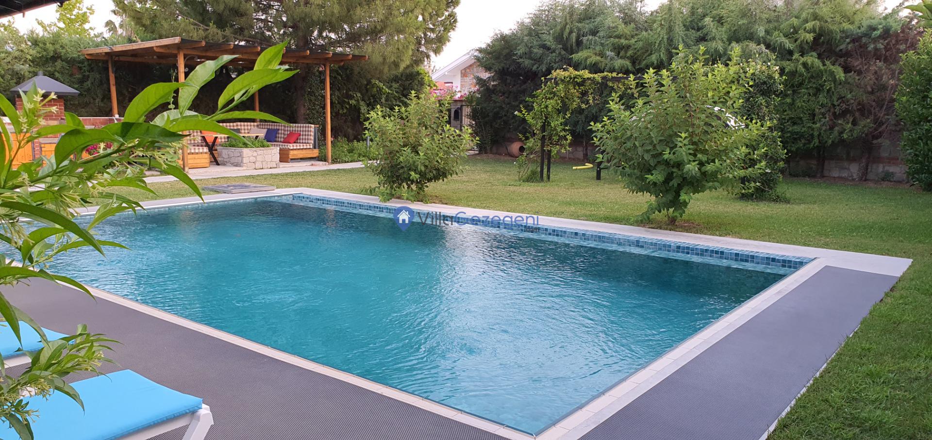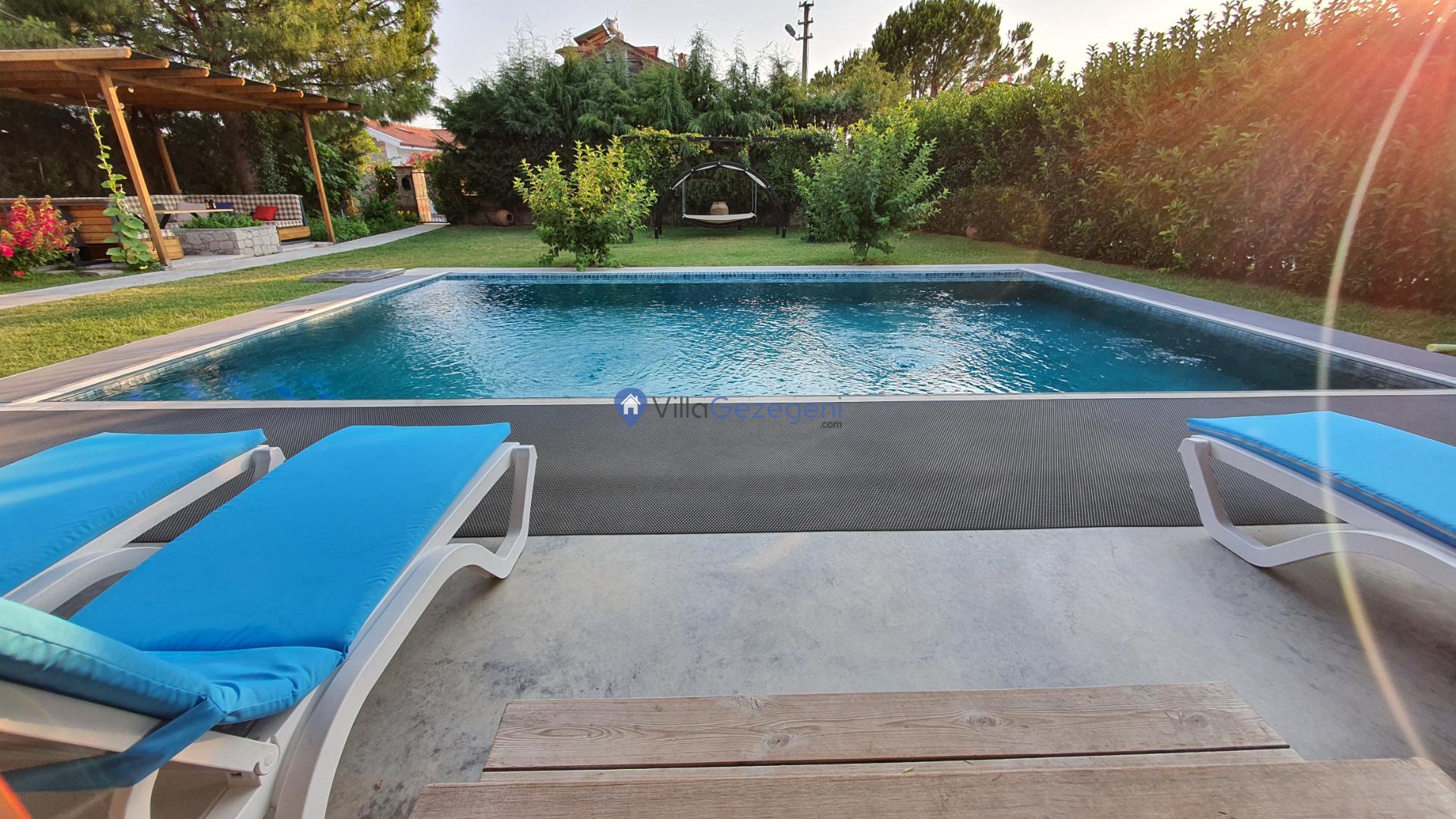Villamızın genel konsept ve özelliklerinden tekrar bahsedecek olursak; villamızın 1 adet müstakil özel havuzu bulunmaktadır. Ferah bir bahçeye sahip olan villamız rahatlığı ön planda tutan 4 adet yatak odası, 5 yatak, 2 banyo, büyük bir mutfak ve 8 kişinin rahatlıkla oturabileceği koltuklara sahip büyük salonu bulunmaktadır.