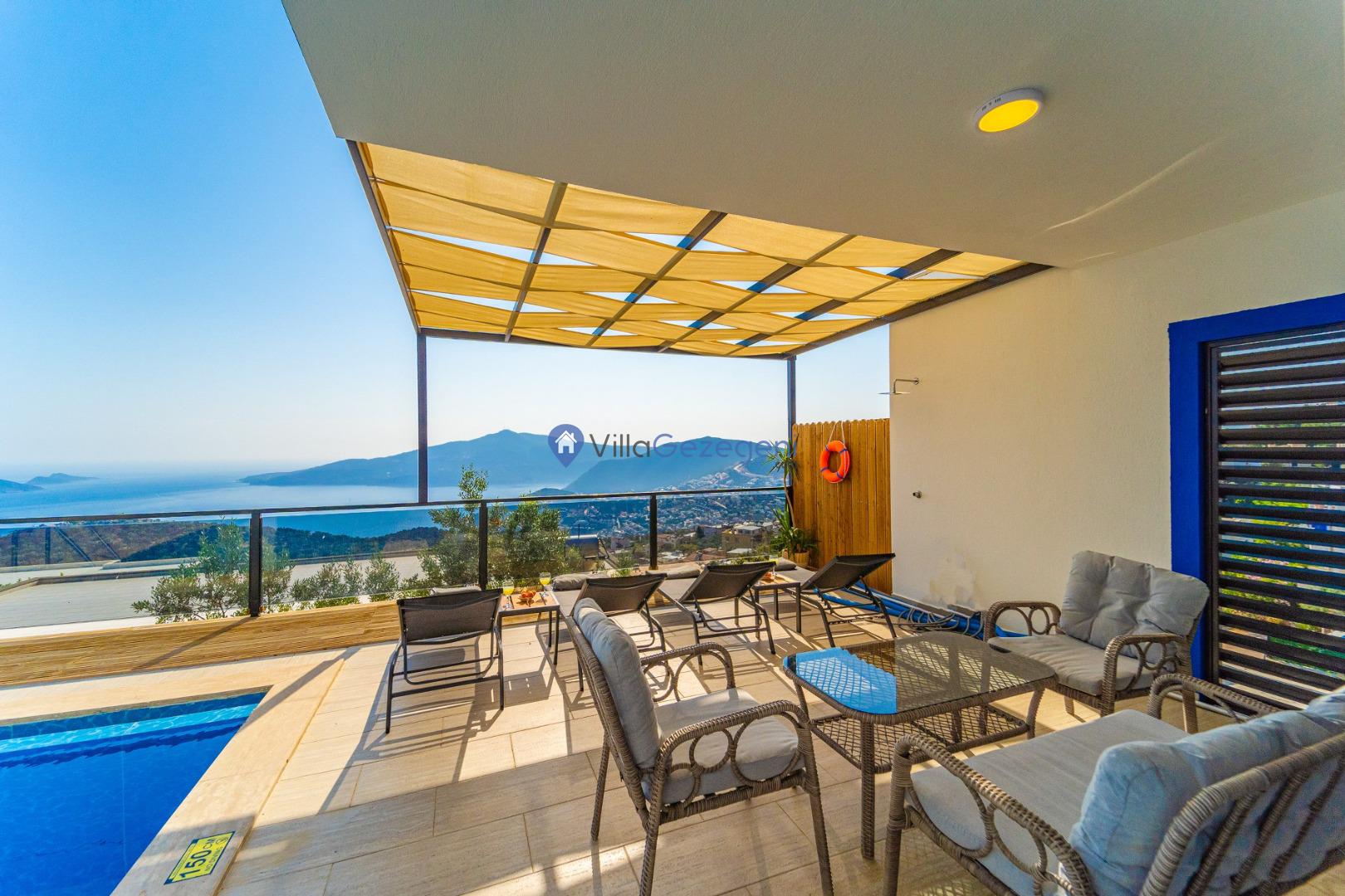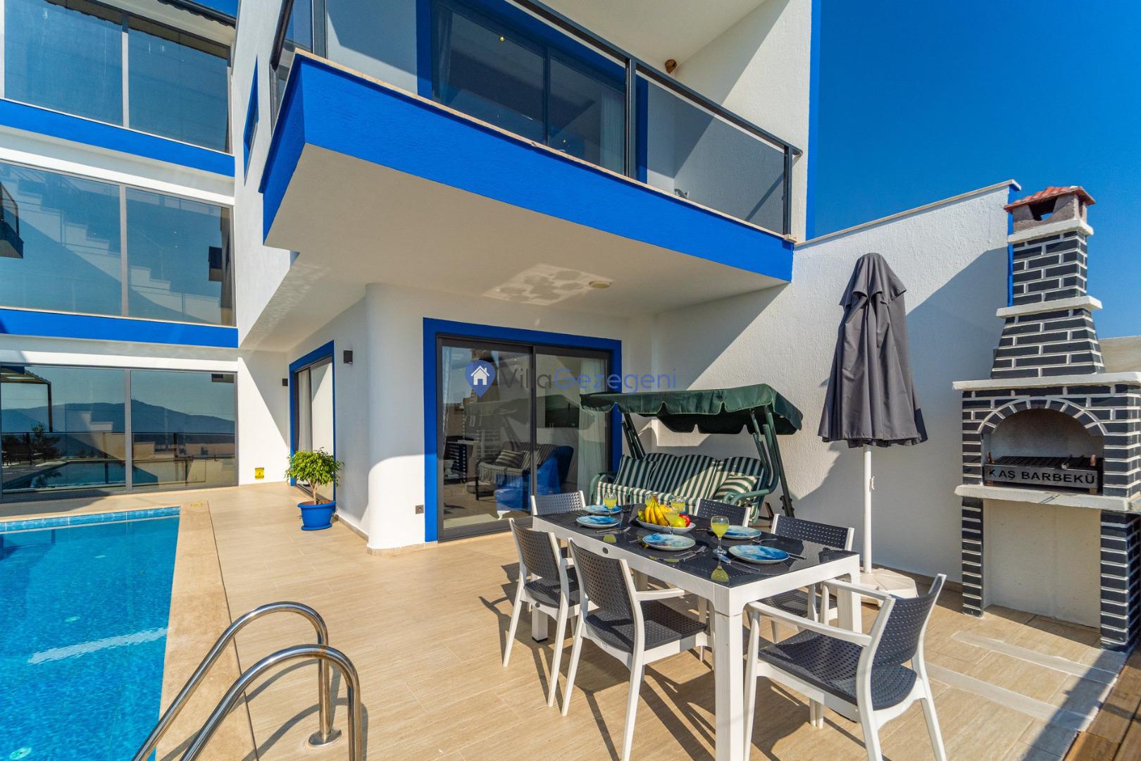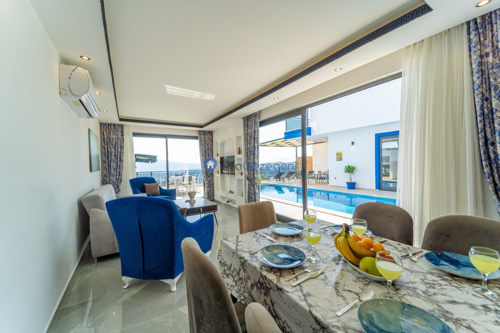 Kalkan Kördere bölgesinde bulunan 3 yatak odalı/6 kişilik kiralık özel havuzlu villa