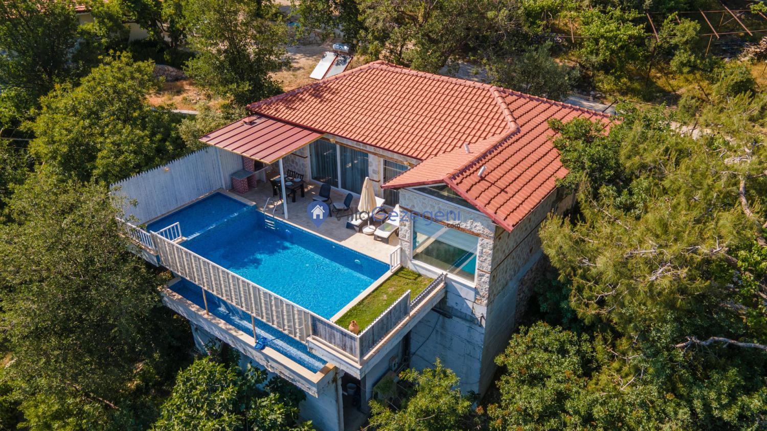Kalkan İslamlar Mevkiinde yer alan 2 yatak odalı 4 kişi kapasiteli havuzu korunaklı Kiralık Tatil Villası.