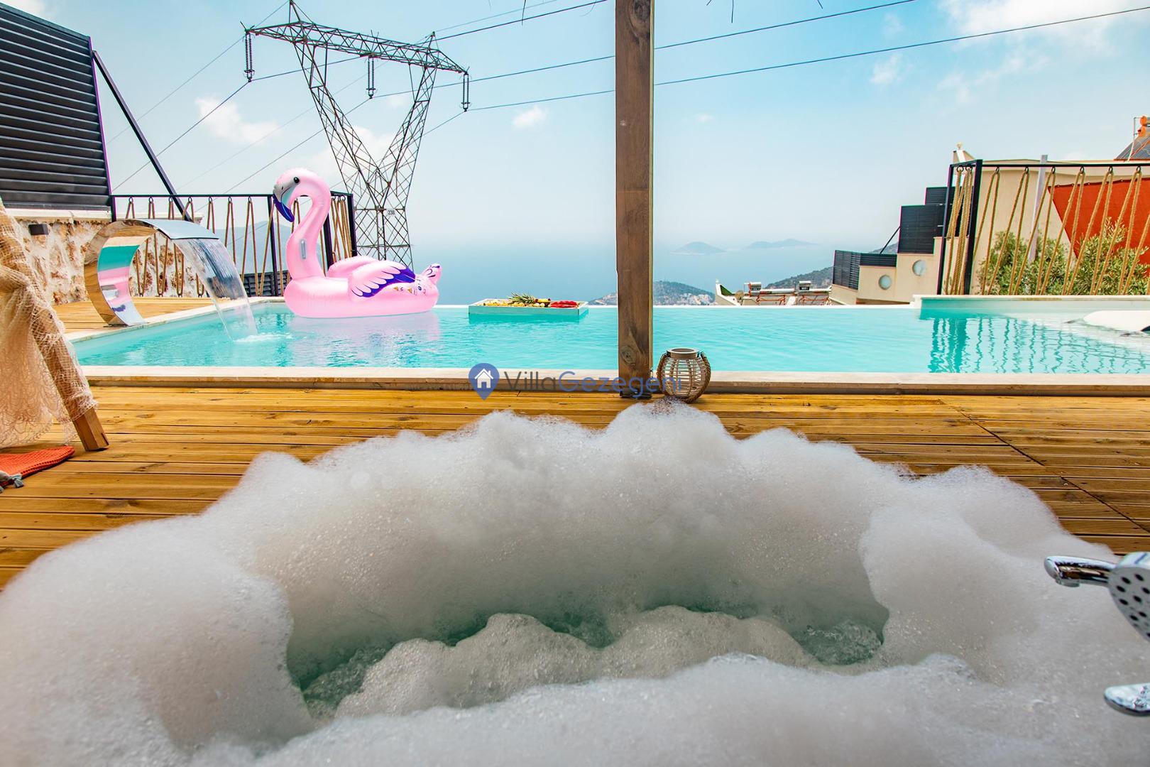 Villa Kapsül, Kalkan Akbel bölgesinde 2 kişilik, deniz manzaralı, jakuzili, salıncaklı, merkeze yakın, muhafazakar, balayı çiftlerine uygun kiralık villa.