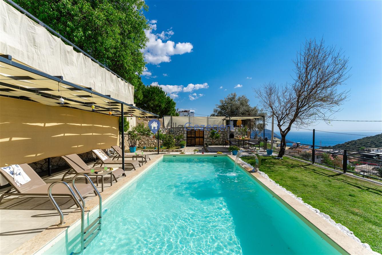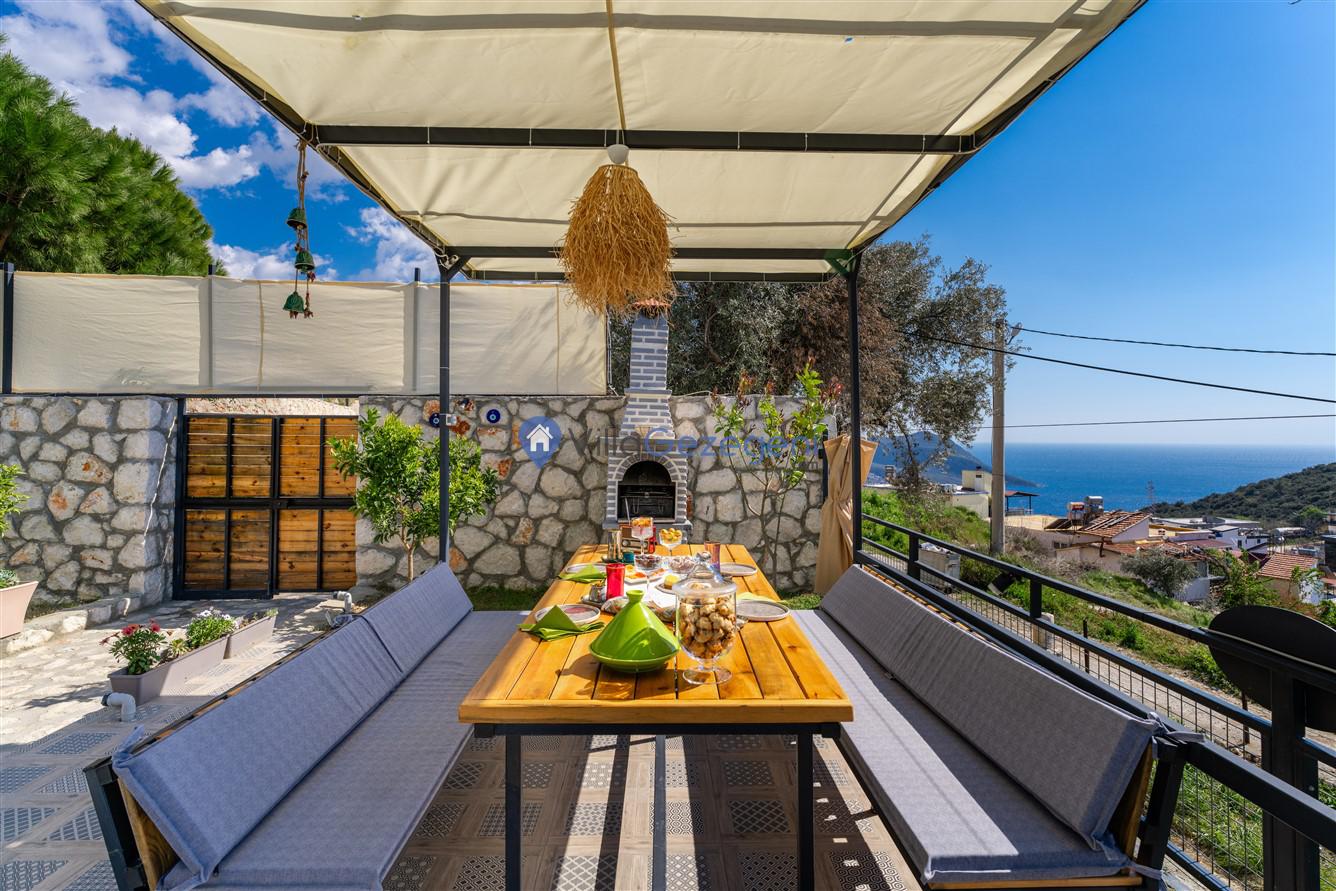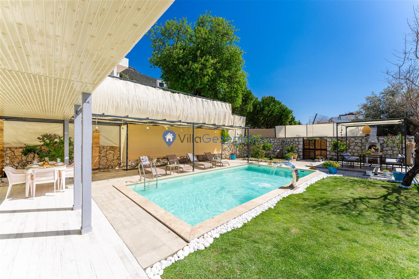 Villanın her köşesi, Kalkan'ın nefes kesen deniz manzarasıyla bütünleşirken, korunaklı yapısı sayesinde mahremiyet arayan misafirler için ideal bir ortam sağlar. Geniş ve rahat teraslar, güneşlenme alanları ve yemek bölümleri, dış mekanın keyfini çıkarmak için mükemmel mekanlar sunar. Mangal olanakları ise, akşamları dışarıda yemek pişirme ve yemeğin tadını çıkarma fırsatı sunar.