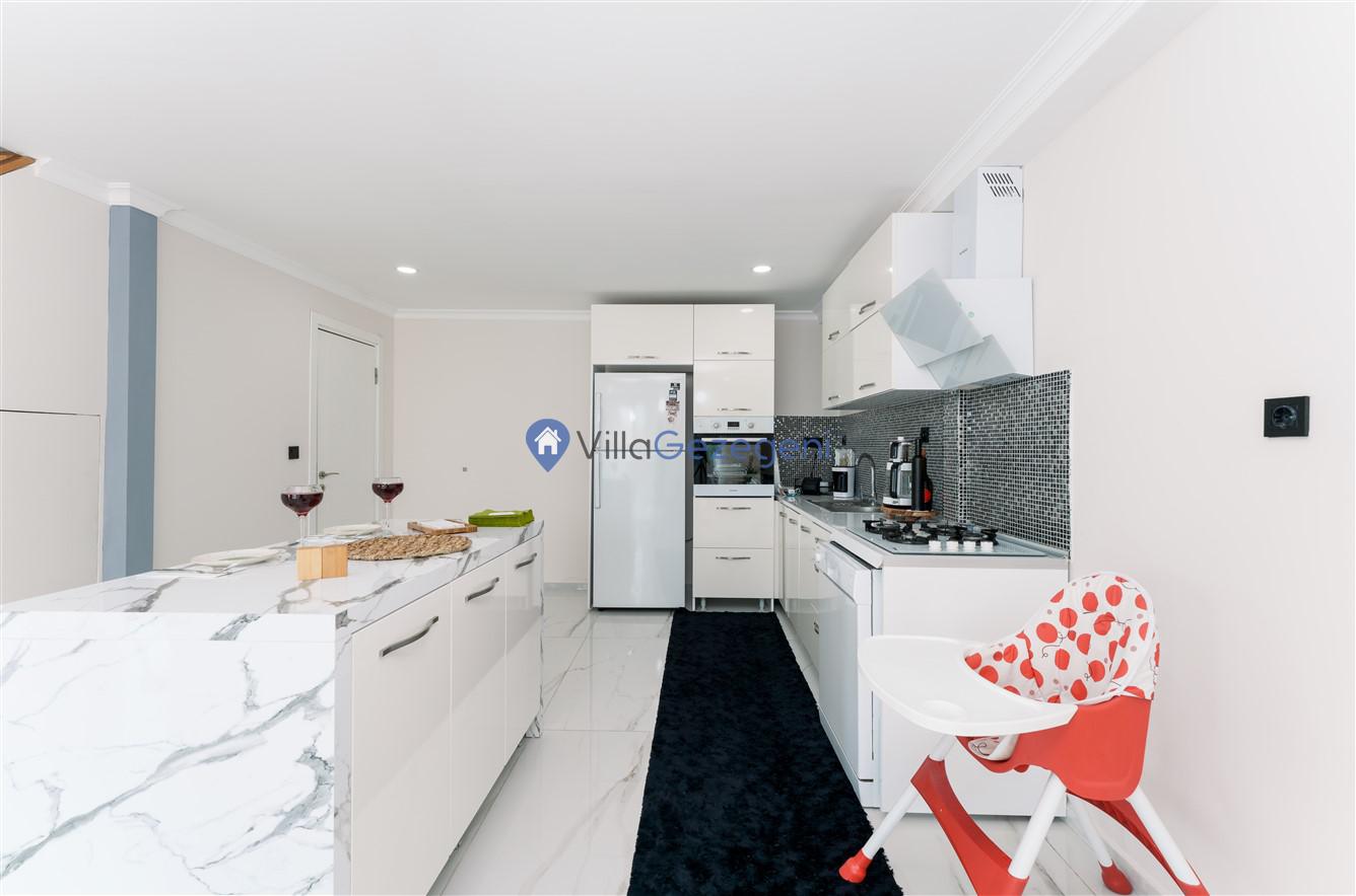 Villa içerisindeki yaşam alanları, modern ve şık bir dekorasyona sahiptir. Amerikan mutfak ve geniş salon alanı, bir arada vakit geçirmek için konforlu ve işlevsel alanlar sunar. Mutfak, tüm modern imkanlarla donatılmış olup, tatiliniz boyunca kendi yemeklerinizi hazırlayabilmeniz için gereken her şeye sahiptir. Her bir yatak odası, özel banyosu ve konforlu yatakları ile günün sonunda dinlenmek ve yenilenmek için ideal bir ortam sağlar.