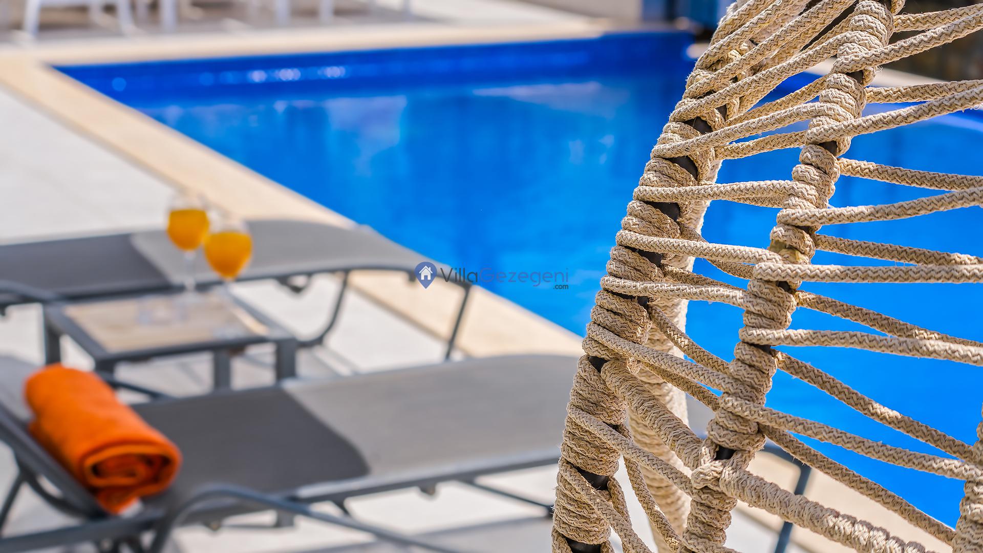 Villamızın genel konsept ve özelliklerinden tekrar bahsedecek olursak; villamızın 1 adet müstakil özel havuzu bulunmaktadır. Ferah bir bahçeye sahip olan villamız rahatlığı ön planda tutan 4 adet yatak odası, 5 yatak, 4 banyo, büyük bir mutfak ve 10 kişinin rahatlıkla oturabileceği koltuklara sahip büyük salonu bulunmaktadır.