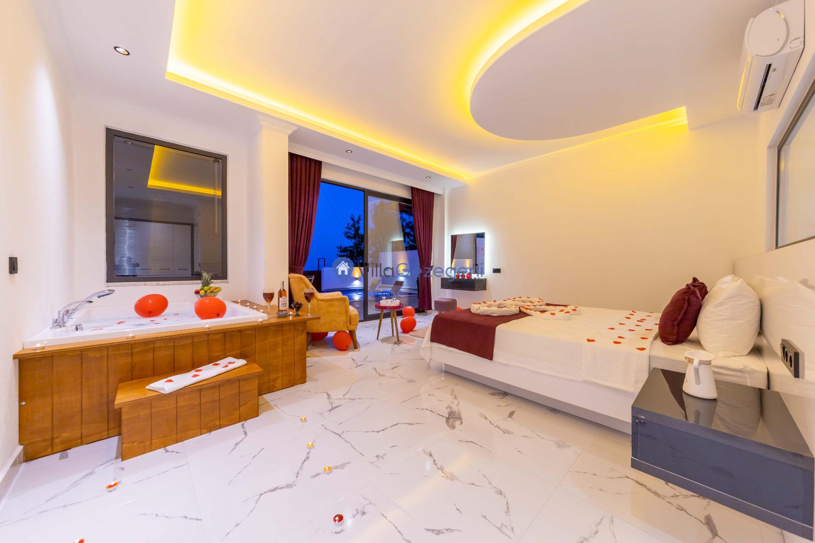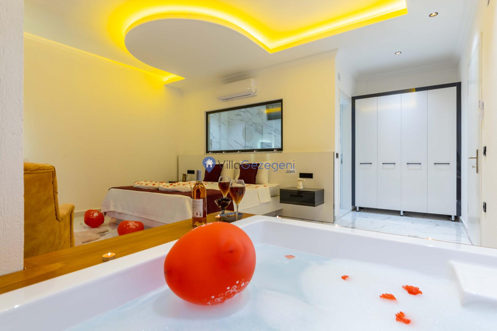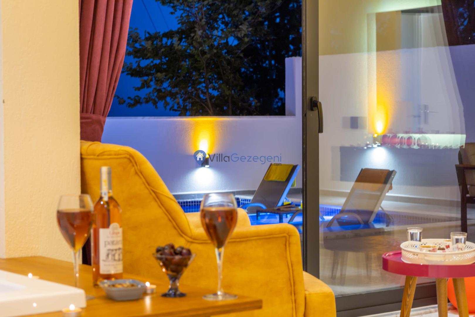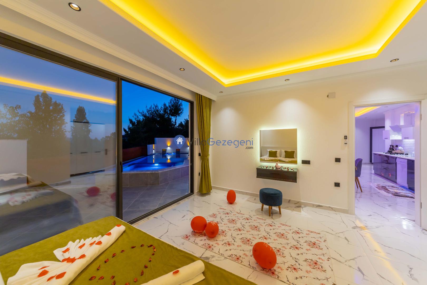 Kalkan İslamlar bölgesinde bulunan 2 yatak odalı, 5 kişilik kiralık balayı villası
