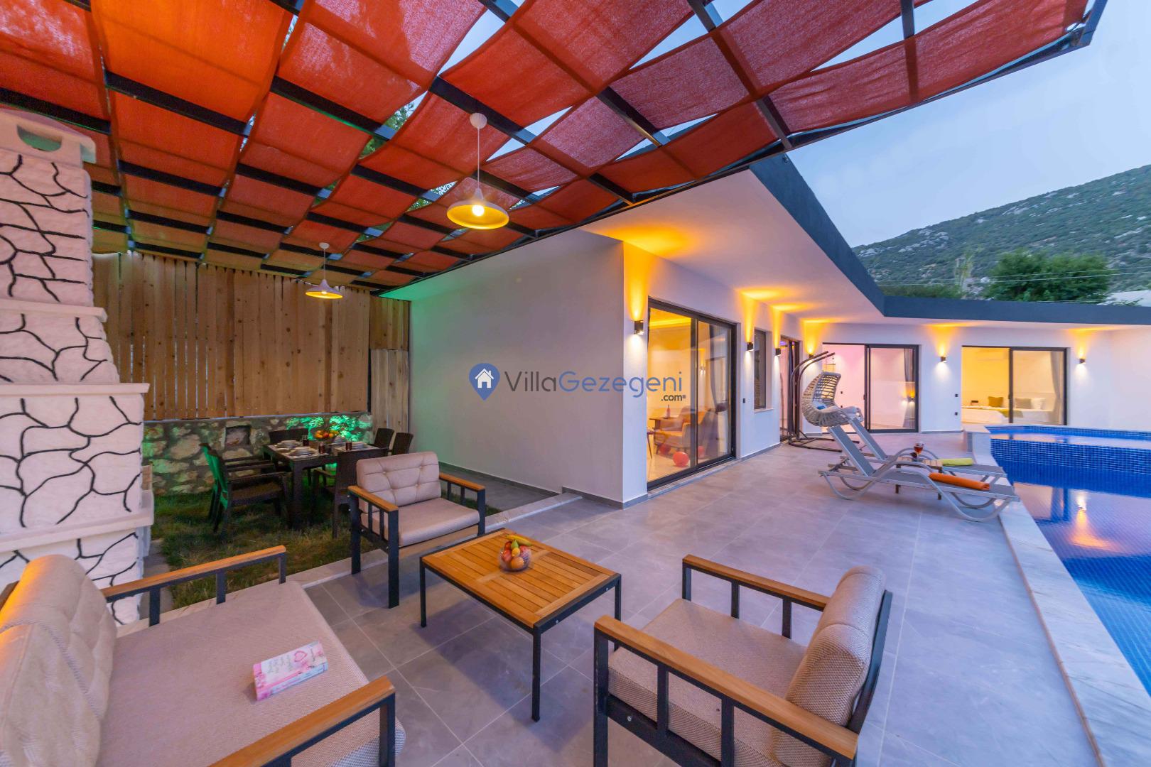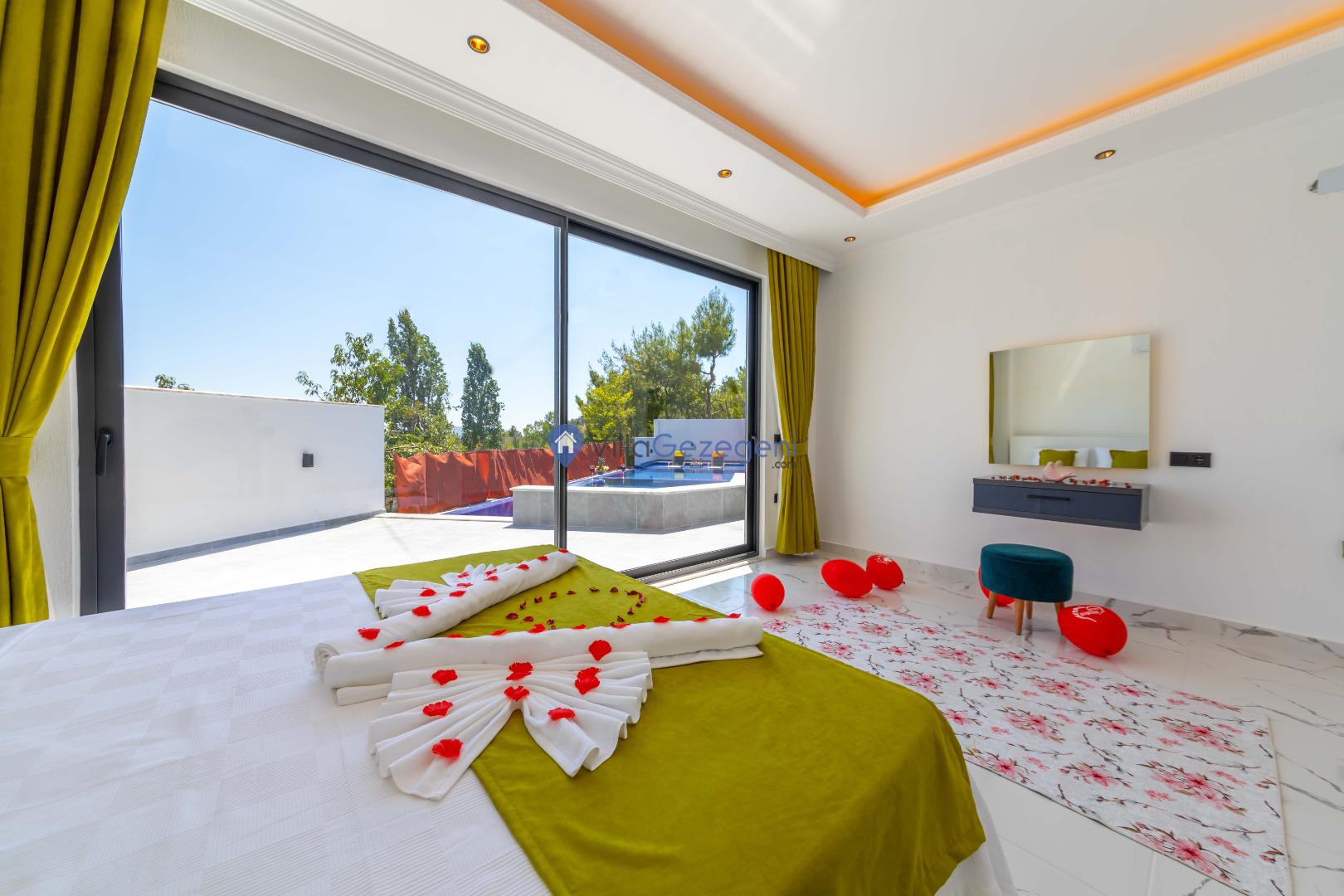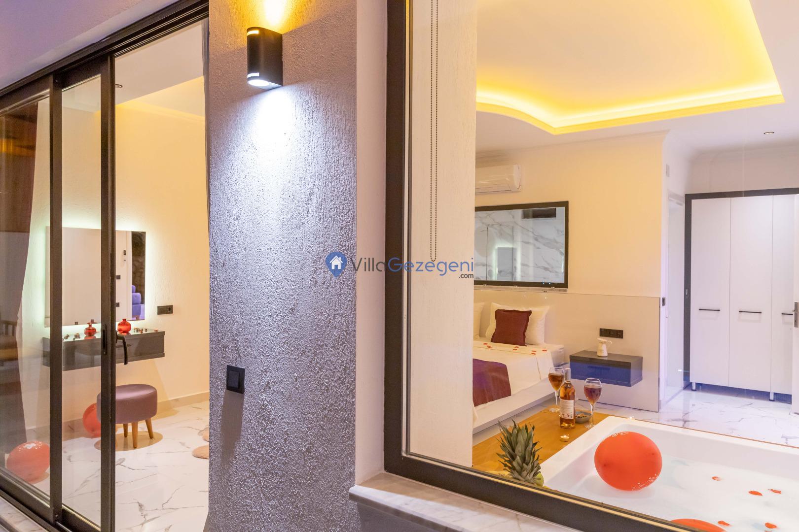 Kalkan İslamlar bölgesinde bulunan 2 yatak odalı, 5 kişilik kiralık balayı villası