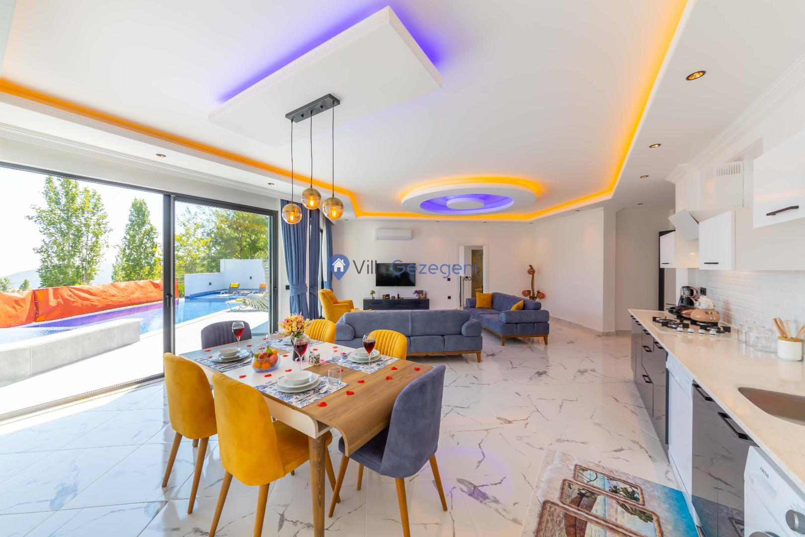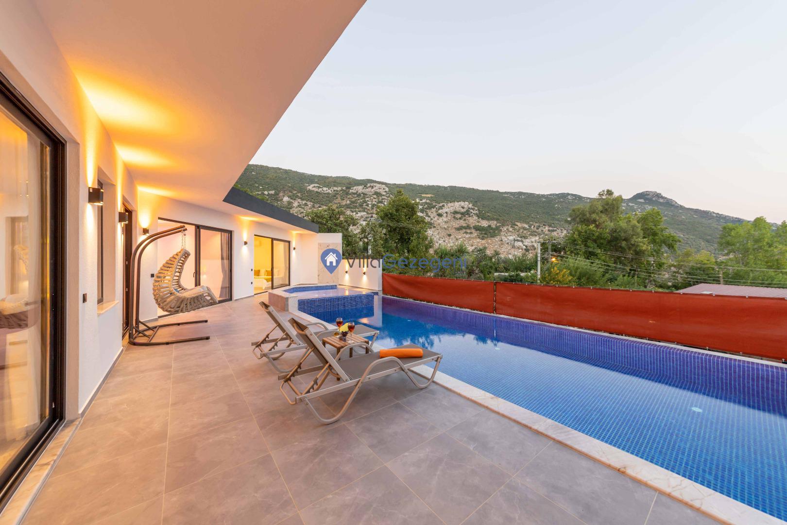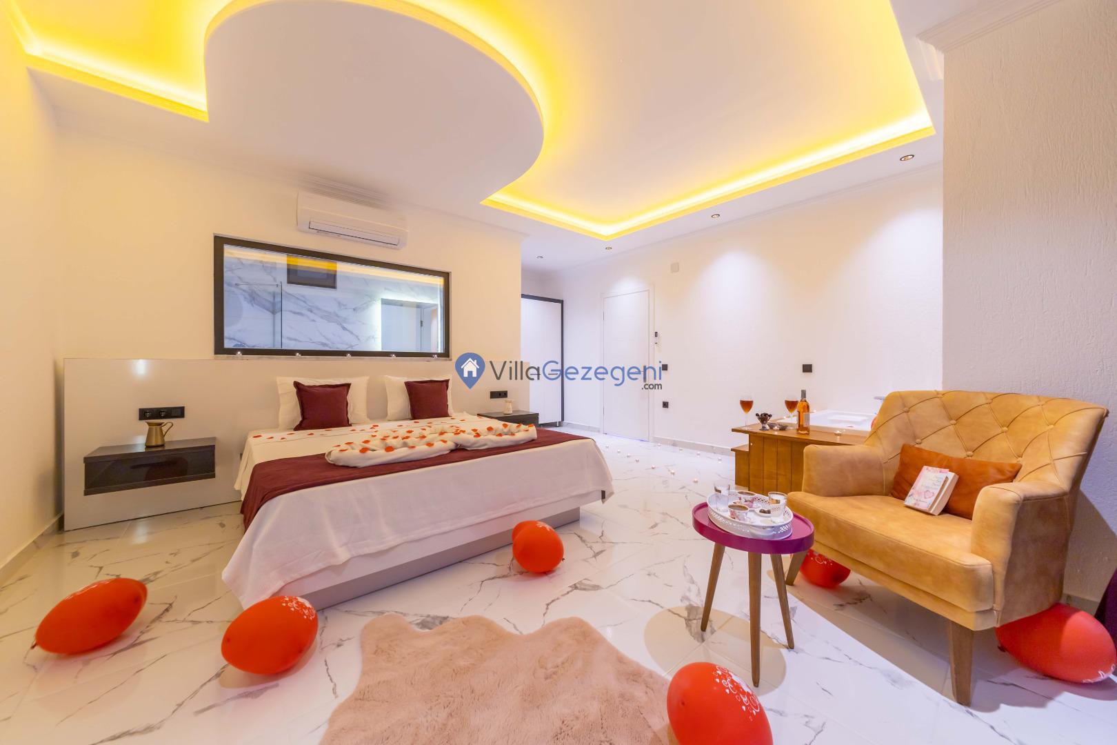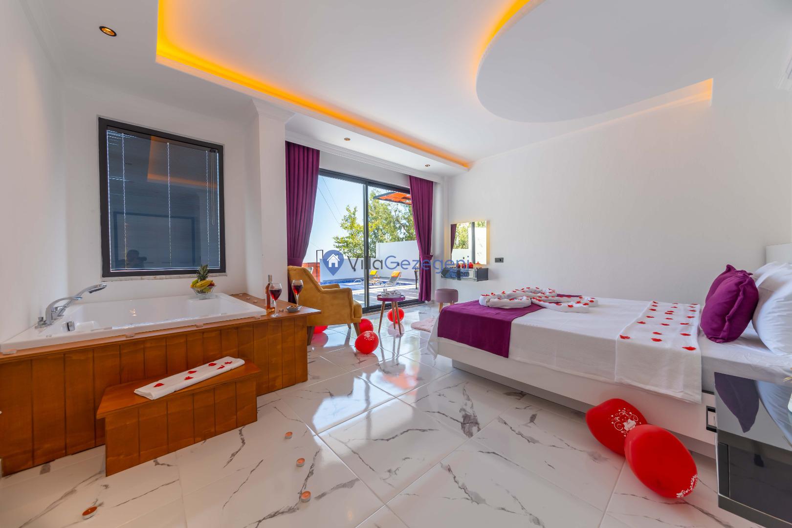 Kalkan İslamlar bölgesinde bulunan 2 yatak odalı, 5 kişilik kiralık balayı villası
