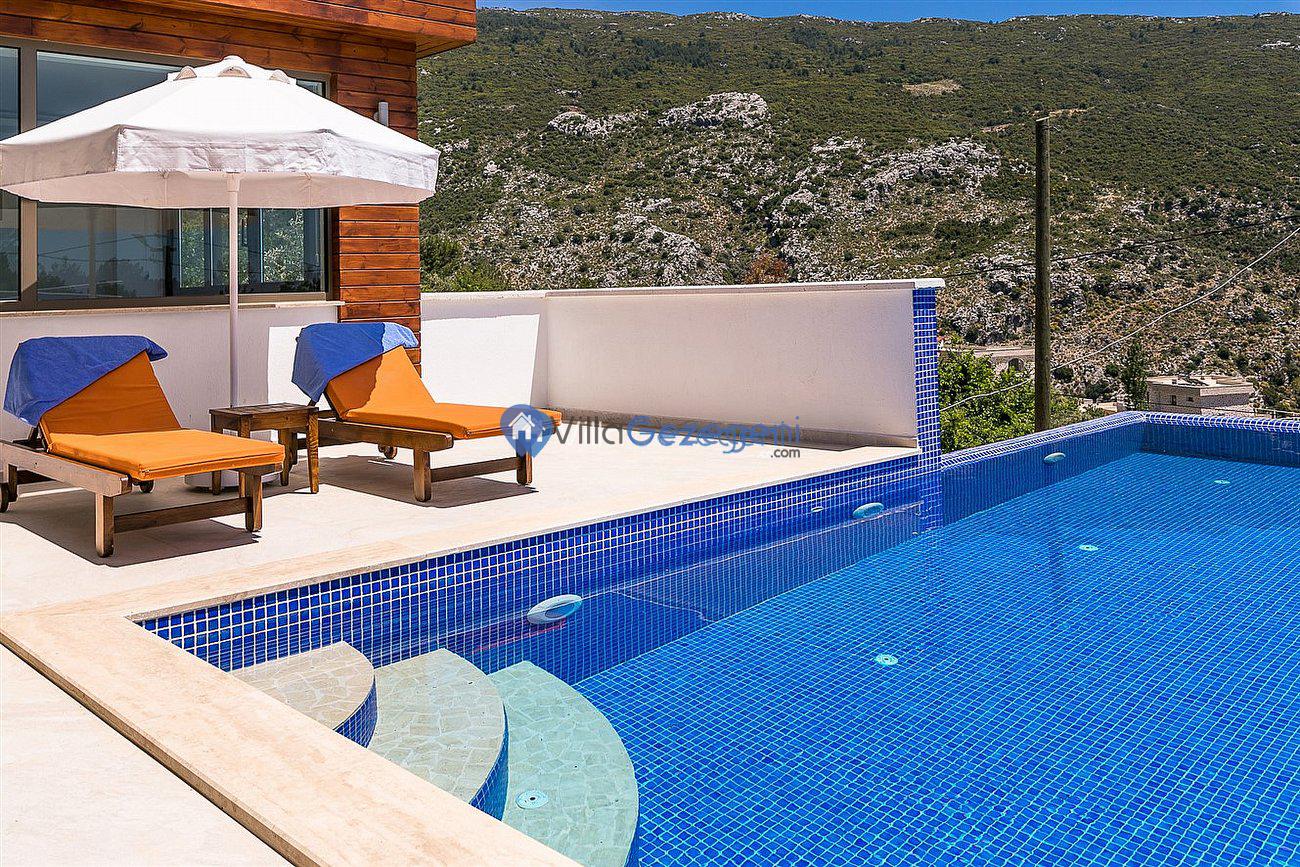Kalkan İslamlar bölgesinde yer alan 6 kişi kapasiteli, geniş aile ve arkadaş grupları için uygun doğa manzaralı villalarımız arasında yer almaktadır.