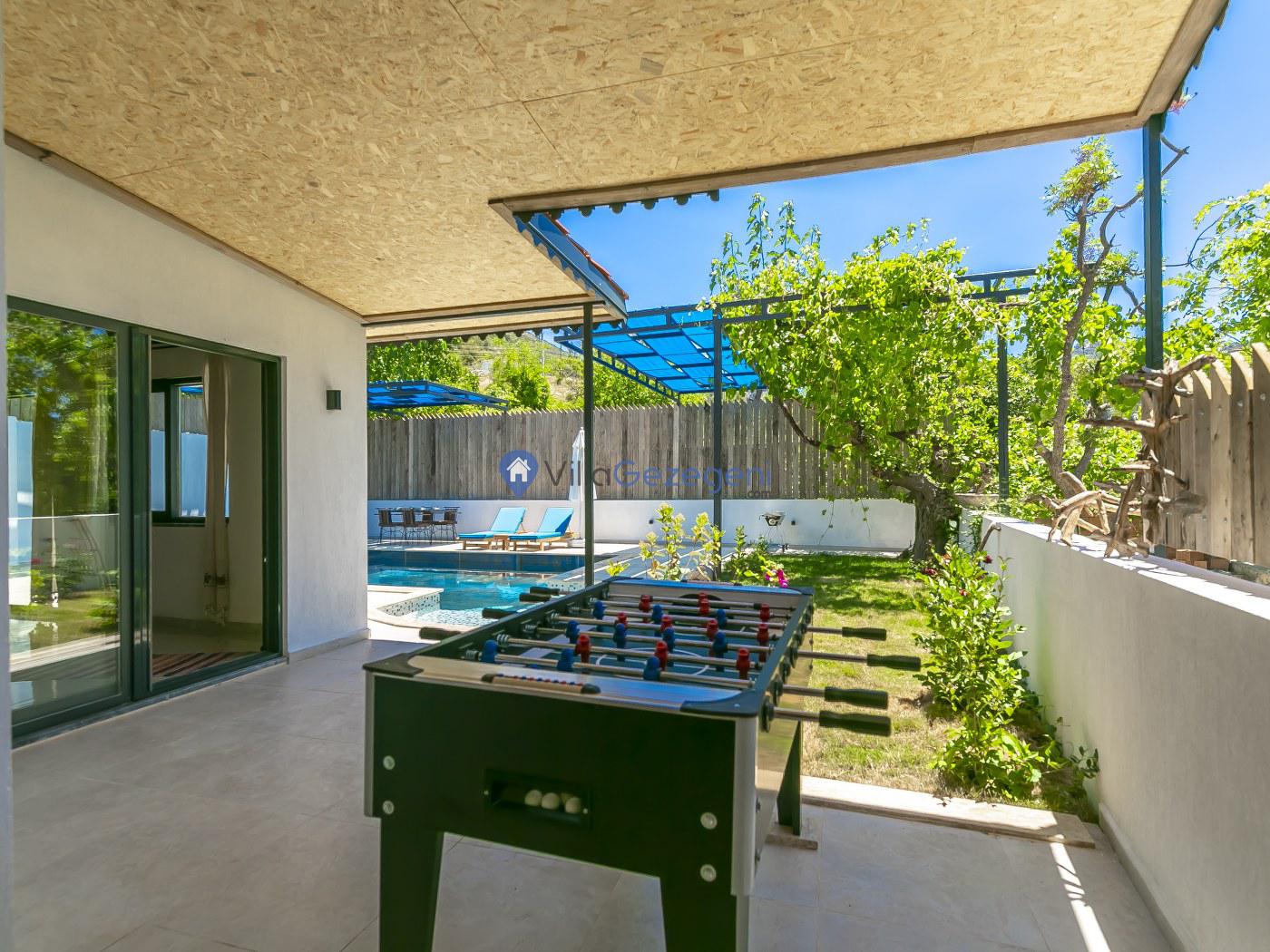 Villa Jüpiter 5'nin geniş bahçesi, çeşitli dinlenme ve eğlence imkanlarıyla doludur. Şezlonglarda güneşlenmek, yemek masasında açık havada yemekler yemek, bahçe mobilyalarında kitap okumak veya güneş şemsiyesi altında serinlemek, bu villada mümkün olan aktivitelerden sadece birkaçıdır. Ayrıca, bahçede bulunan mangal, akşamları barbekü partileri düzenlemek için idealdir. Villanın korunaklı havuzu, dışarıdan görünmeyen yapısıyla, mahremiyete önem veren misafirlerin rahatı düşünülerek tasarlanmıştır.