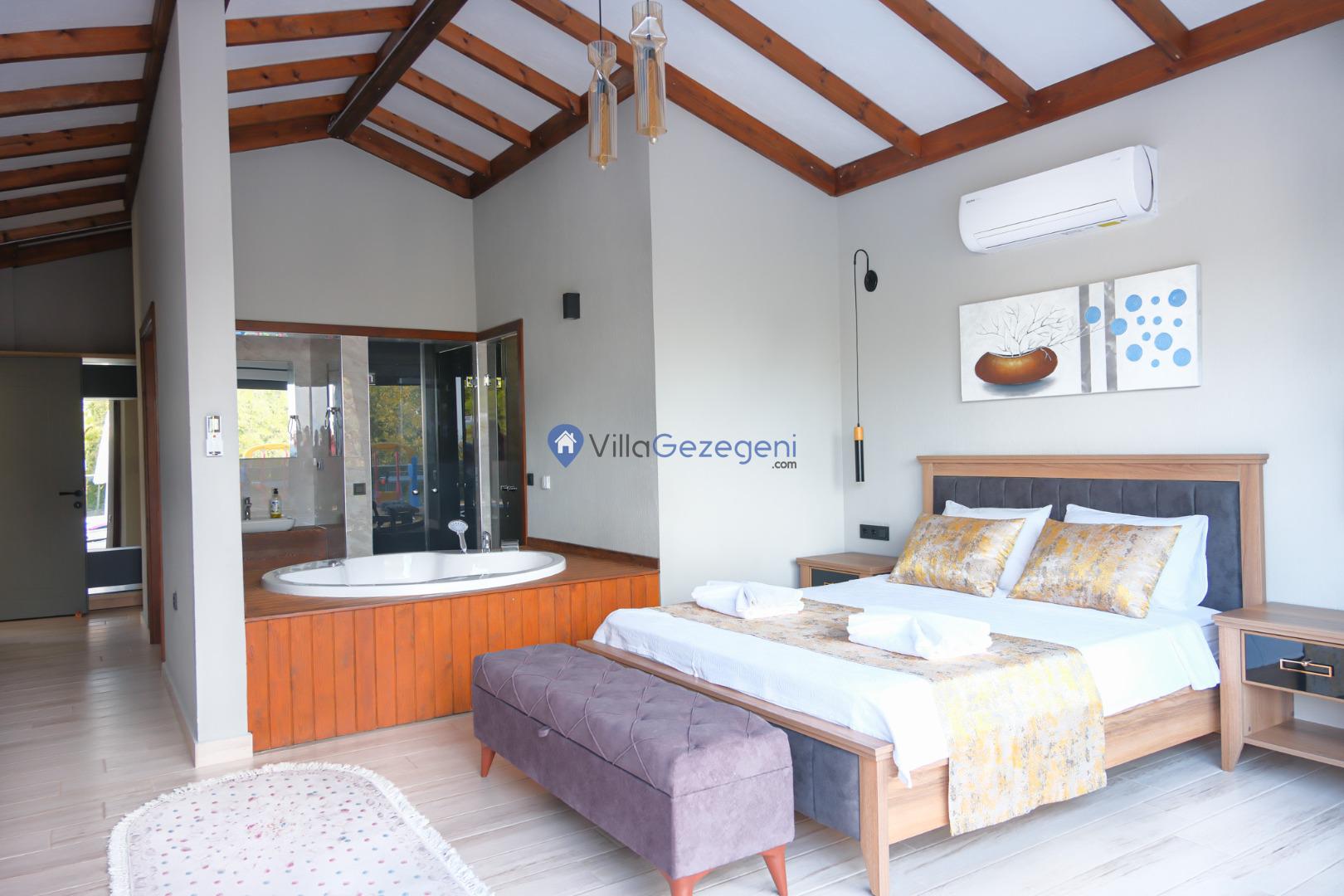Villamızın genel konsept ve özelliklerinden tekrar bahsedecek olursak; villamızın 1 adet müstakil özel havuzu bulunmaktadır. Ferah bir bahçeye sahip olan villamız rahatlığı ön planda tutan 2 adet yatak odası, 3 yatak, 2 banyo, büyük bir mutfak ve 4 kişinin rahatlıkla oturabileceği koltuklara sahip büyük salonu bulunmaktadır.