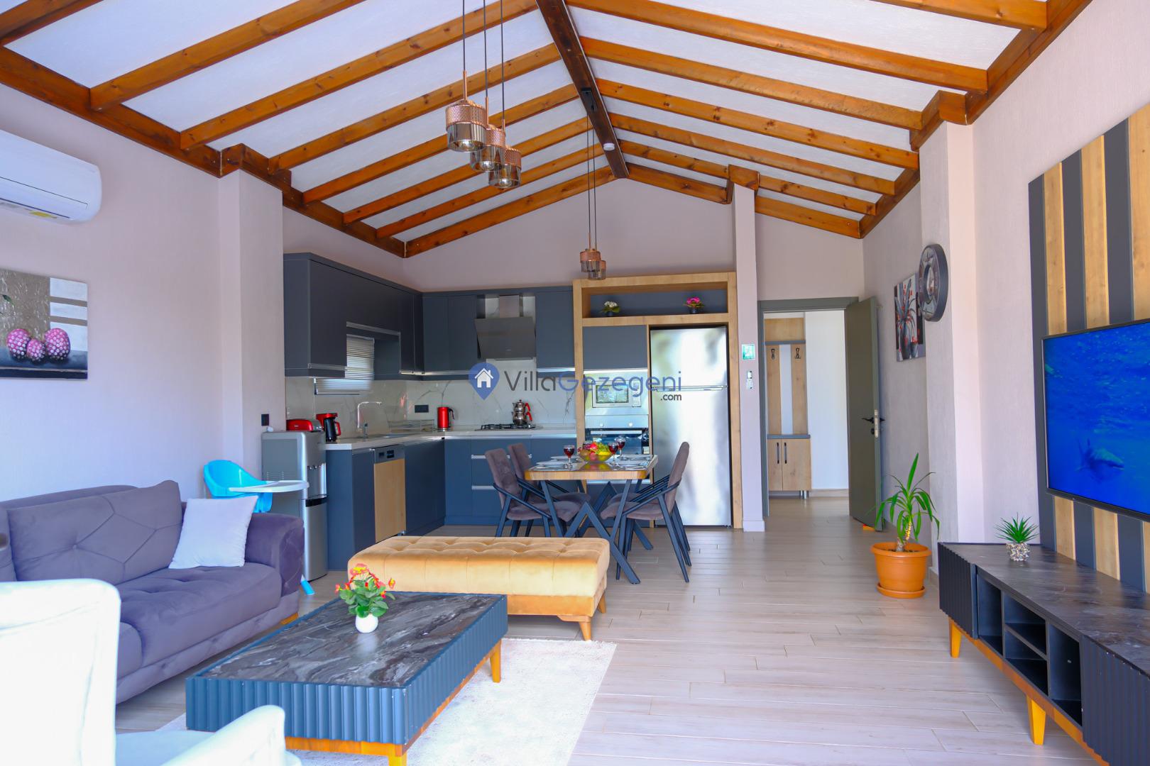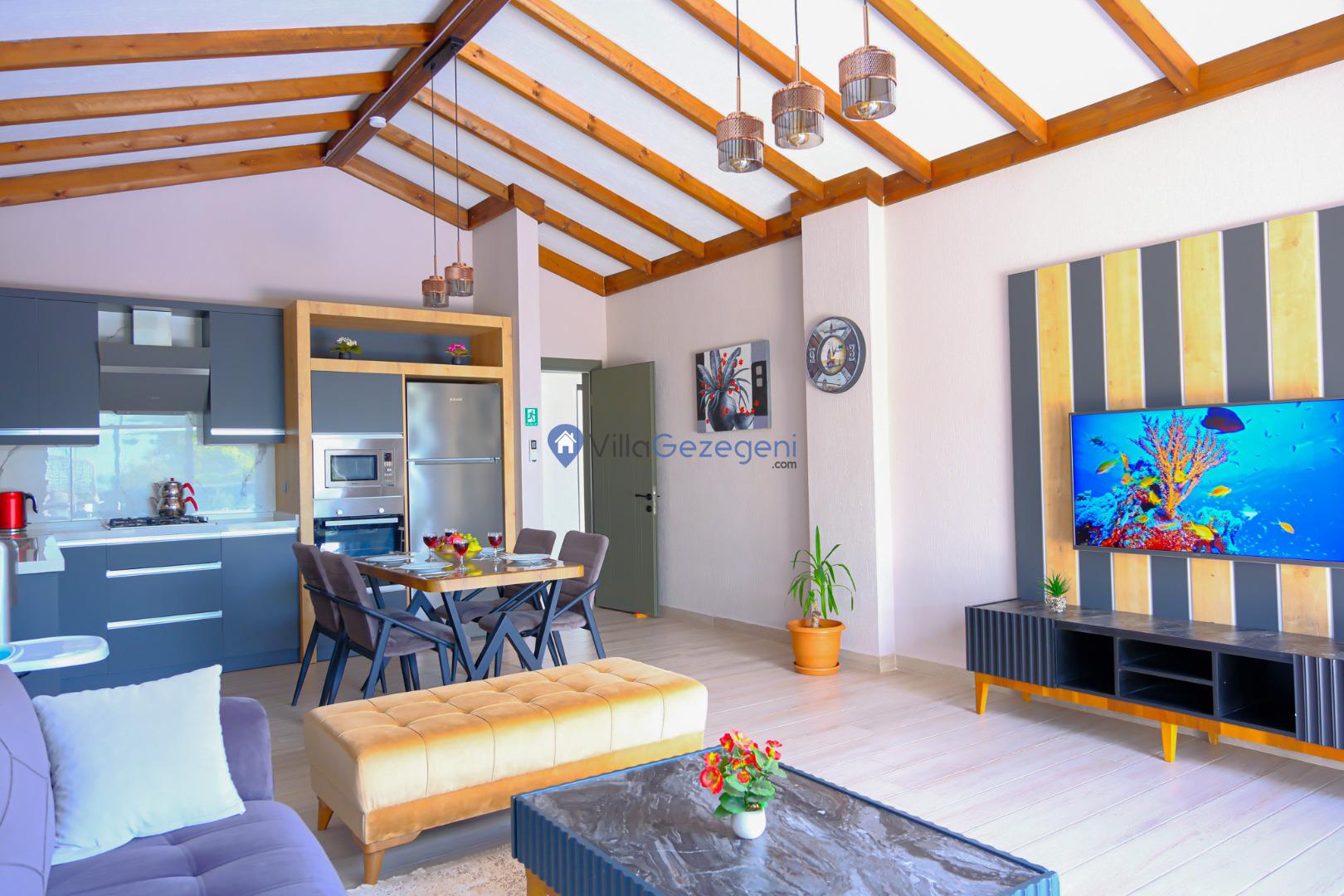Kaş/Kalkan/Üzümlü Bölgesinde yer alan 2 Yatak Odalı 4 Kişi Kapasiteli Muhafazakar Doğa İçerisinde Balayı Villası.