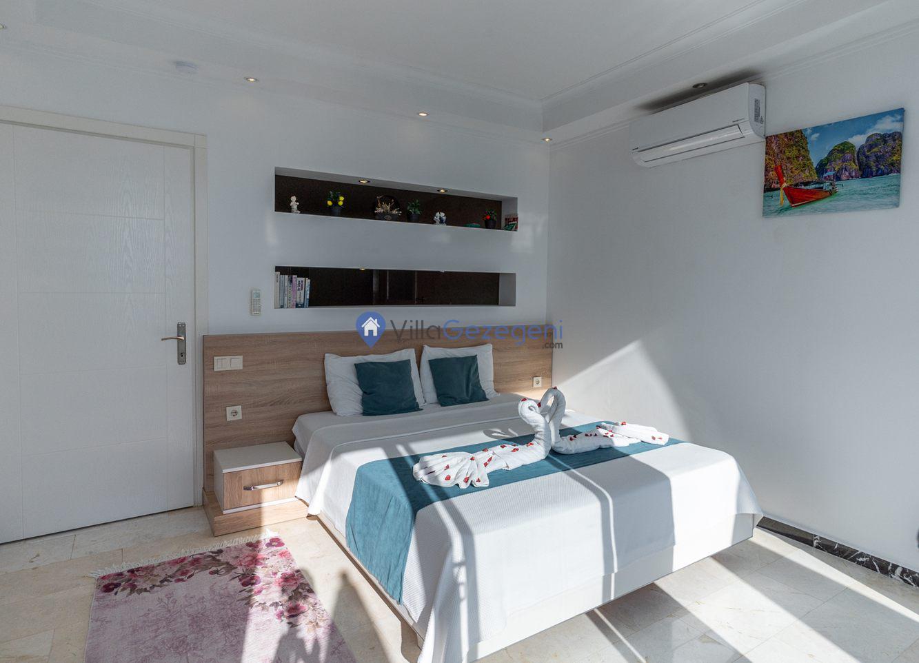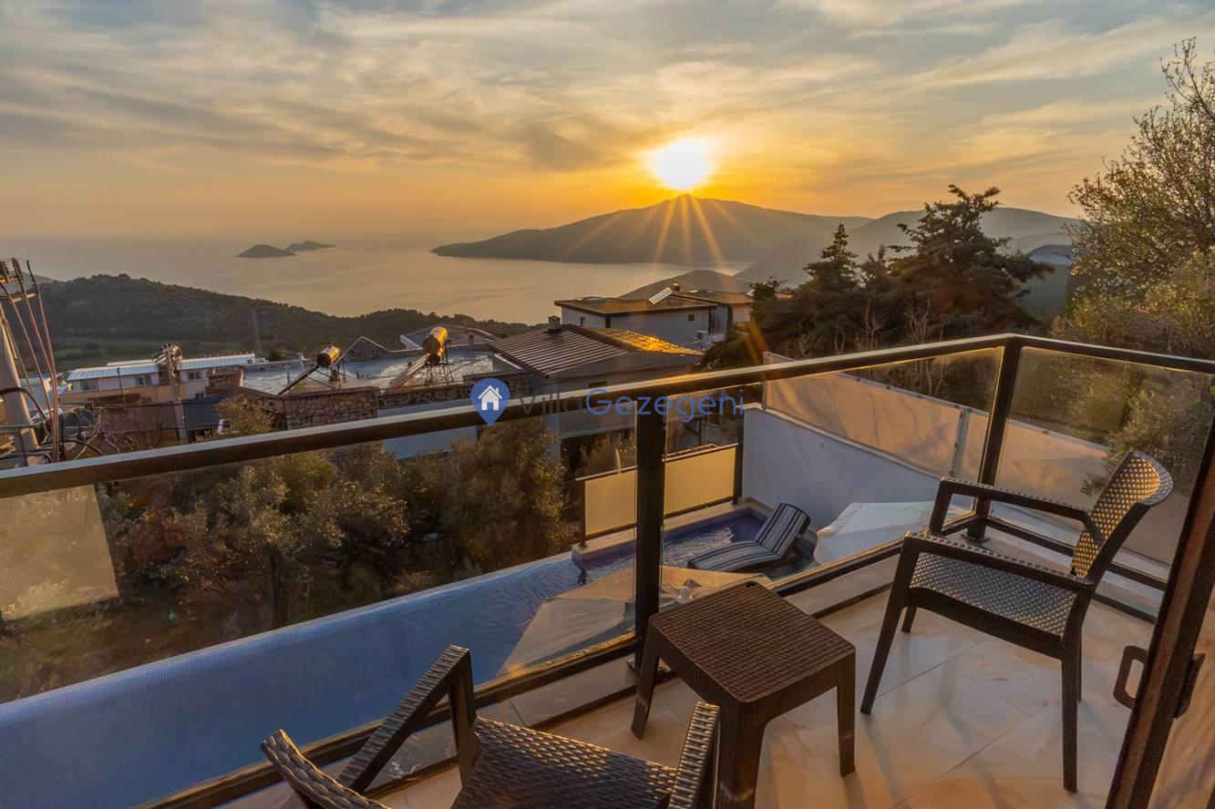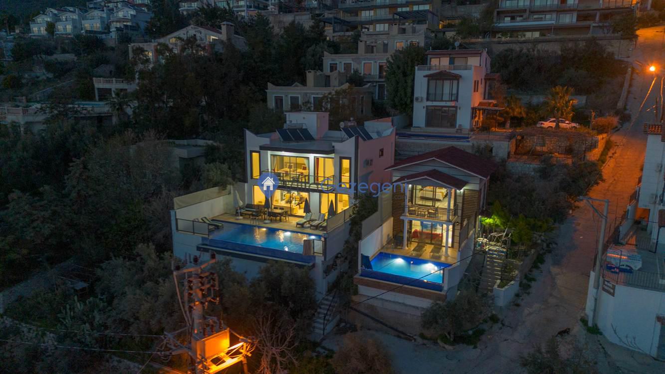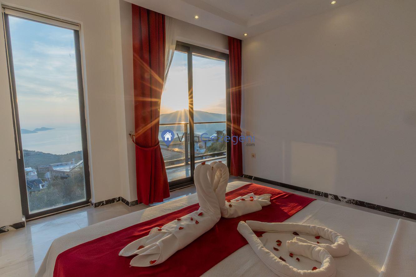 Kaş/Kalkan/Kördere Bölgesinde yer alan 3 yatak odalı 6 kişi kapasiteli havuzu korunaklı deniz manzaralı kiralık tatil villası.