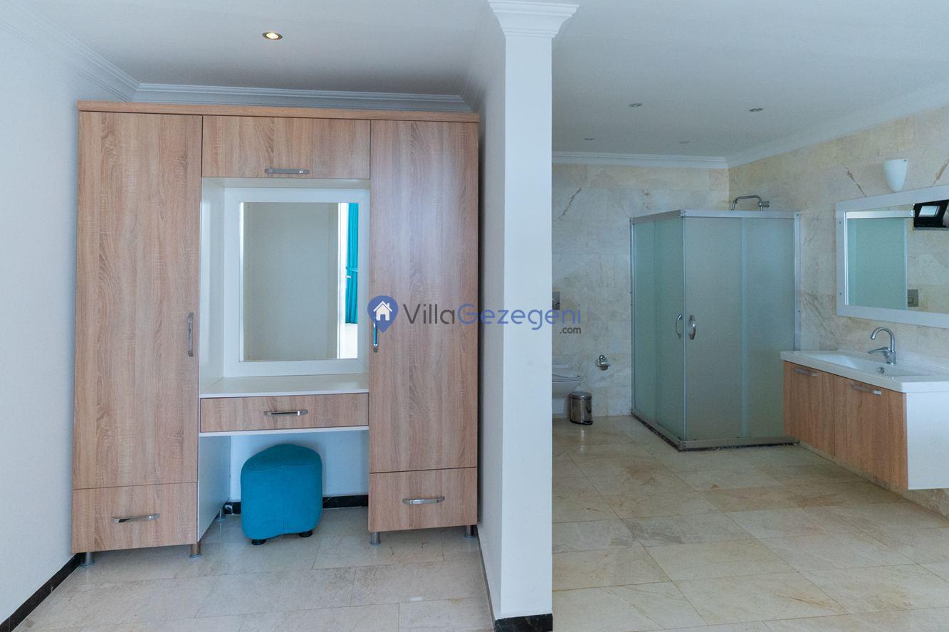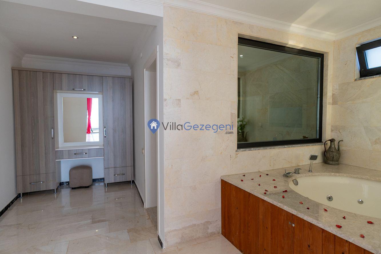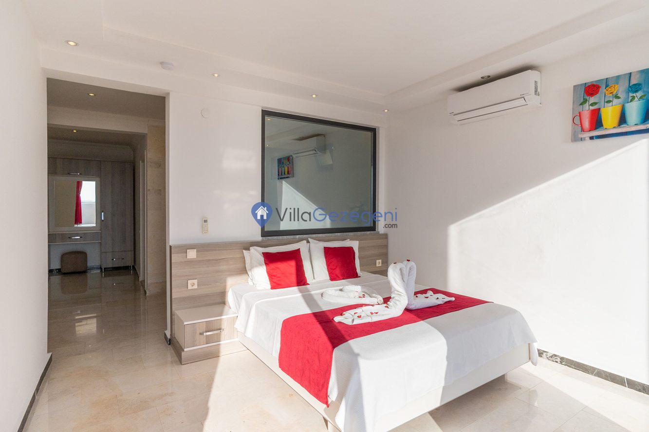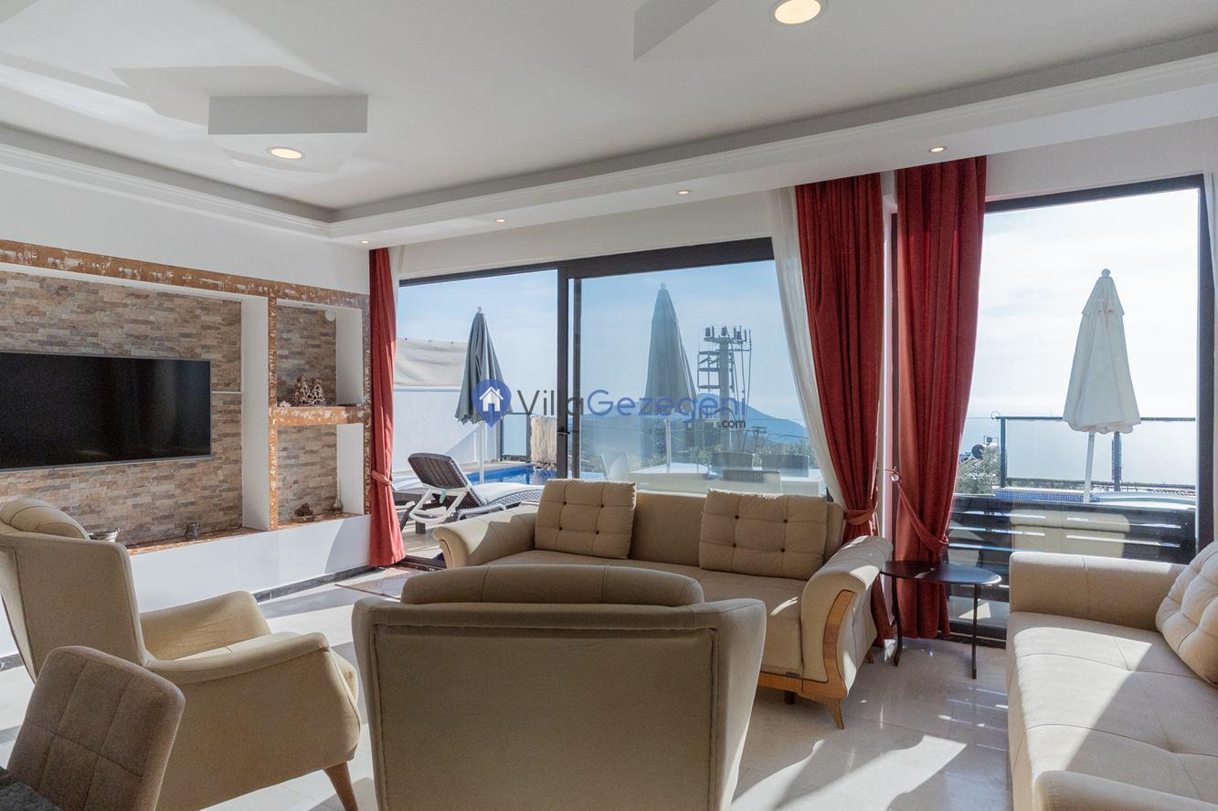 Kaş/Kalkan/Kördere Bölgesinde yer alan 3 yatak odalı 6 kişi kapasiteli havuzu korunaklı deniz manzaralı kiralık tatil villası.