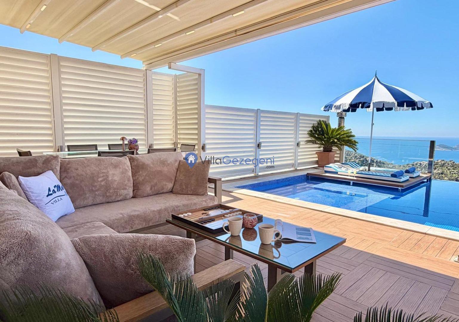 Kalkan Kördere Bölgesinde Bulunan 4 Yatak Odalı, 8 Kişilik Kapalı havuzlu ve Deniz Manzaralı Kiralık Villa