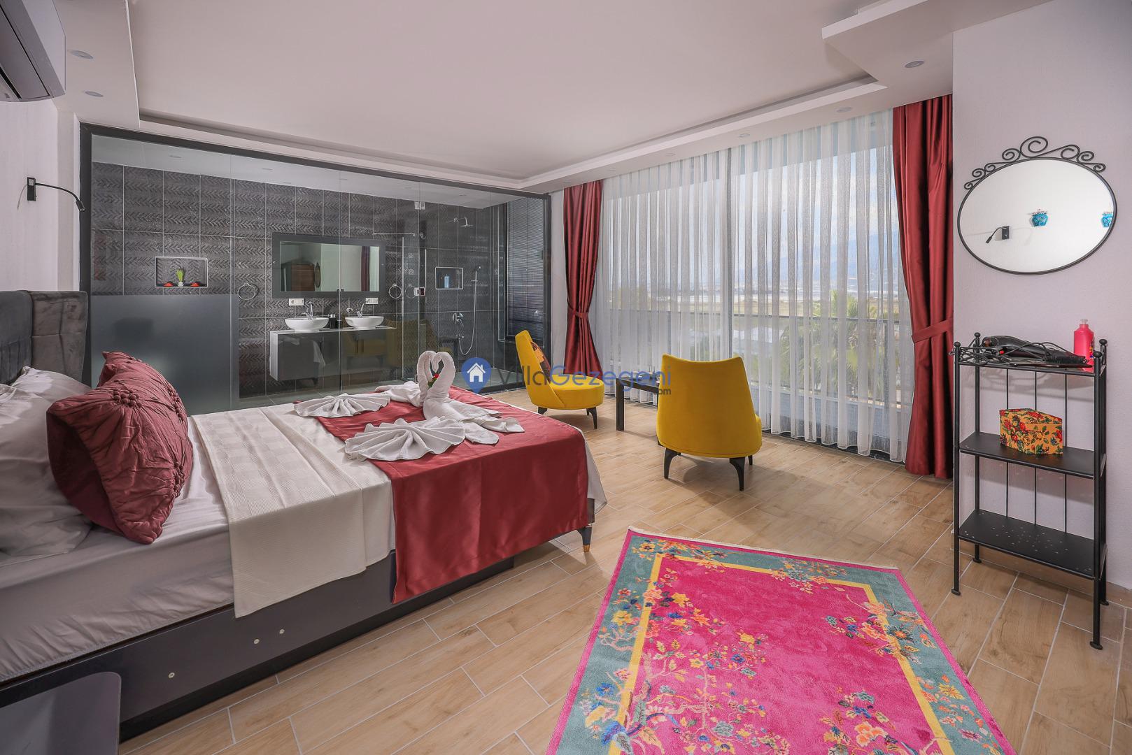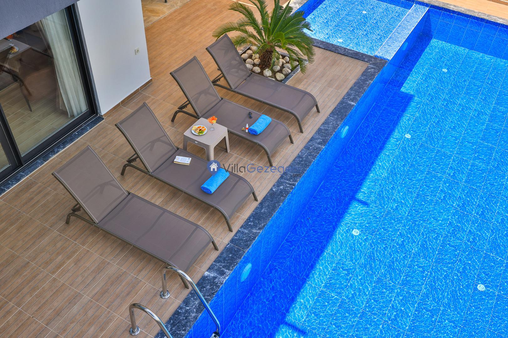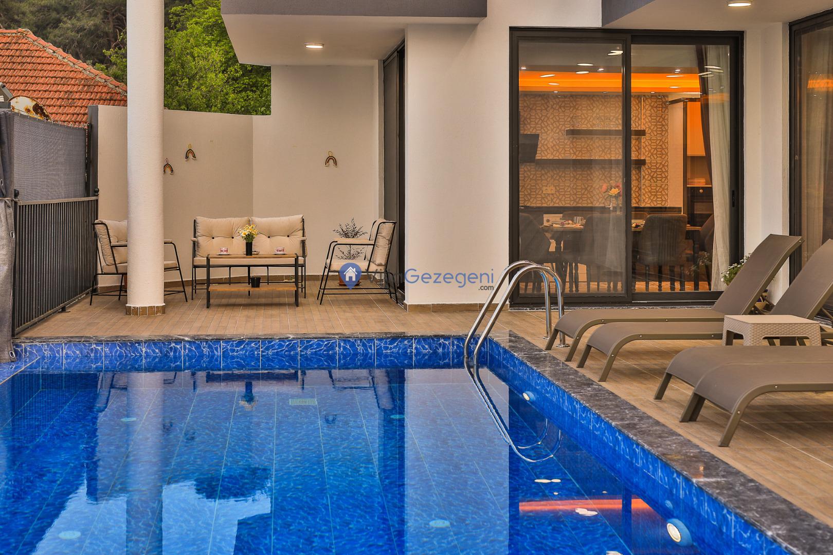 Villamızın genel konsept ve özelliklerinden tekrar bahsedecek olursak; villamızın 1 adet müstakil özel havuzu bulunmaktadır. Ortalama bir bahçeye sahip olan villamız rahatlığı ön planda tutan 2 adet yatak odası,3 yatak,2 banyo, hareket alanı geniş bir mutfak ve 4 kişinin geniş aralıklarla rahatlıkla oturabileceği koltuklara sahip salonu bulunmaktadır.