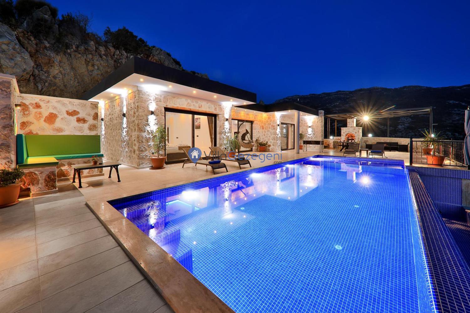 Kalkan İslamlar bölgesinde yer alan bu villa, balayı çiftlerine ve ailelere mükemmel bir tatil deneyimi sunmak için tasarlanmış. Hem doğayla iç içe bir atmosferde huzur arayanlar hem de eğlenceli aktivitelerle dolu bir tatil isteyenler için ideal bir seçenektir.Villanın geniş bahçesi, hem doğal güzellikleriyle hem de sunduğu çeşitli eğlenceli aktivitelerle dikkat çekiyor. Bahçede yer alan masa tenisi, salıncak ve langırt gibi eğlenceli oyun alanları, tatilinize renk katacak. Özellikle aileler ve arkadaş grupları için keyifli anlar geçirebileceğiniz bir ortam sunar.Bahçede yer alan masa tenisi, spor yapmak isteyen veya eğlenceli bir aktivite arayan misafirler için mükemmel bir seçenek.Doğanın içinde huzur içinde sallanarak dinlenebilir, keyifli vakit geçirebilirsiniz.Arkadaşlarınızla ya da ailenizle eğlenceli langırt oyunları oynayabilirsiniz.Villanın iç ve dış tasarımı, muhafazakar aileler ve balayı çiftleri için özel olarak düşünülmüştür. Hem romantik bir balayı geçirmek isteyen çiftler hem de özel alanlarında rahatça vakit geçirmek isteyen aileler için idealdir.Villa, geniş dış havuzu ve jakuzisi ile de dikkat çekiyor. Gizlilik sağlanmış havuz etrafında rahatça yüzebilir ve doğa ile iç içe bir tatil deneyimi yaşayabilirsiniz. Havuz alanı, sadece sizin ve sevdiklerinizin kullanacağı şekilde düzenlenmiştir.