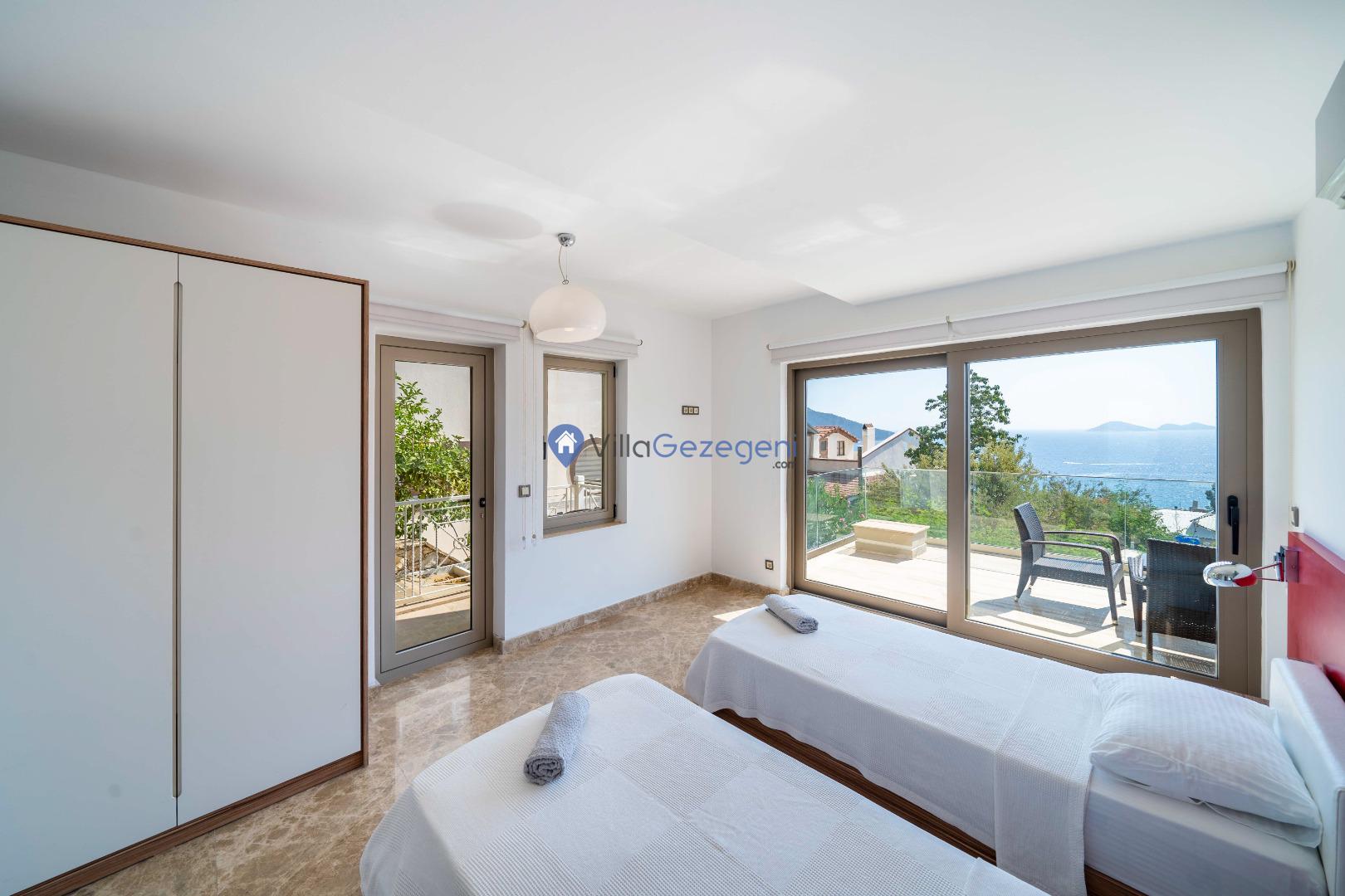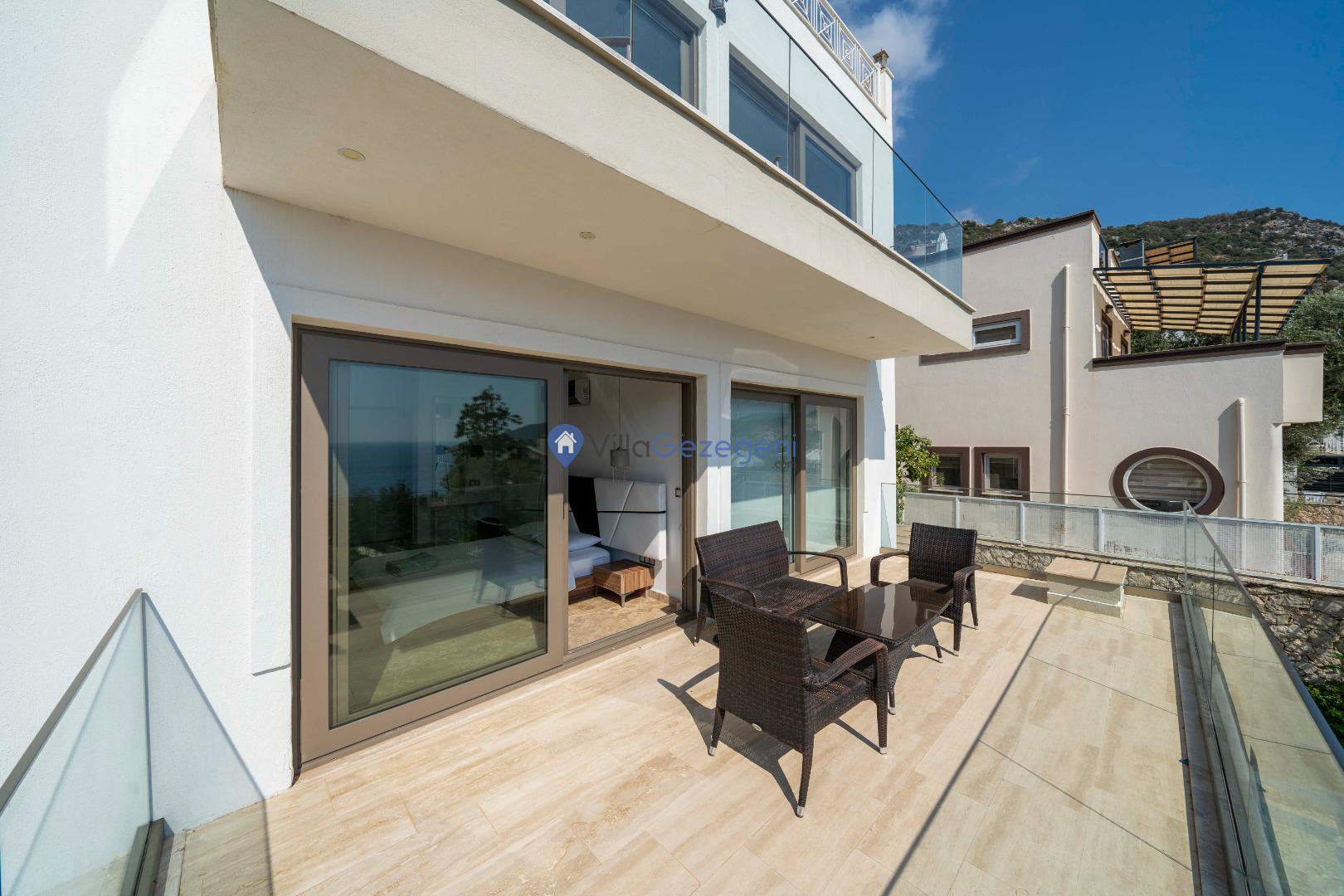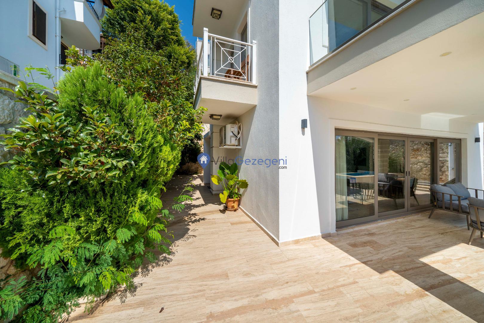 Kalkan Merkez mevkiinde yer alan 2 yatak odalı 4 kişi kapasiteli balayı villası.
