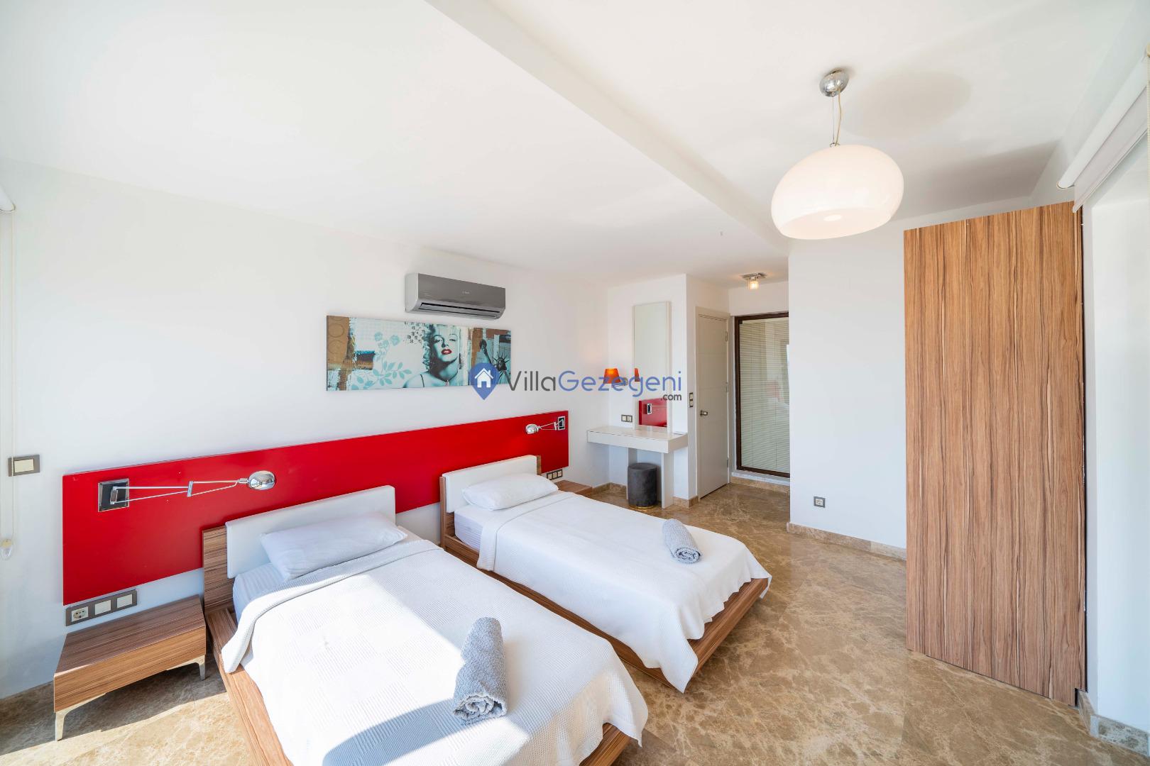 Villamızın genel konsept ve özelliklerinden tekrar bahsedecek olursak; villamızın 1 adet müstakil özel havuzu bulunmaktadır. Ortalama bir bahçeye sahip olan villamız rahatlığı ön planda tutan 5 adet yatak odası,6 yatak,3 banyo, hareket alanı geniş bir mutfak ve 10 kişinin geniş aralıklarla rahatlıkla oturabileceği koltuklara sahip salonu bulunmaktadır.