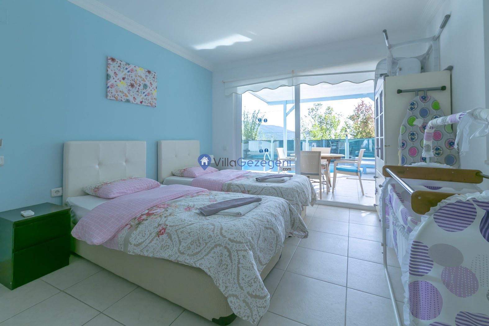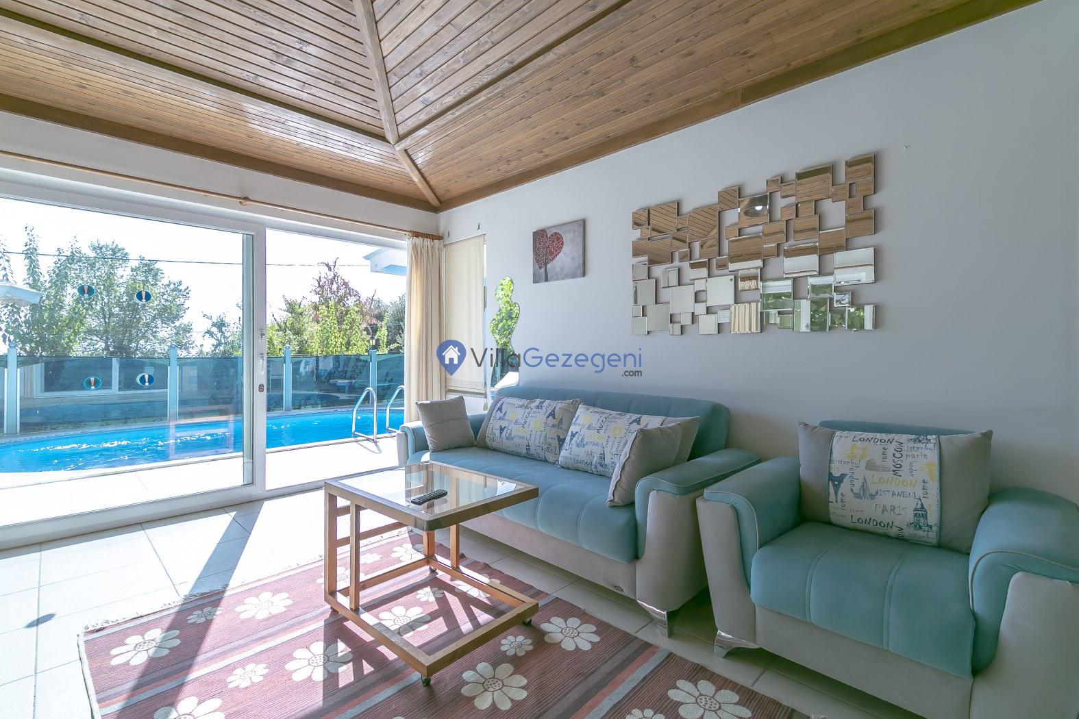 Villamızın genel konsept ve özelliklerinden tekrar bahsedecek olursak; villamızın 1 adet müstakil özel havuzu bulunmaktadır. Ortalama bir bahçeye sahip olan villamız rahatlığı ön planda tutan 2 adet yatak odası,3 yatak,2 banyo, hareket alanı geniş bir mutfak ve 5 kişinin geniş aralıklarla rahatlıkla oturabileceği koltuklara sahip salonu bulunmaktadır.