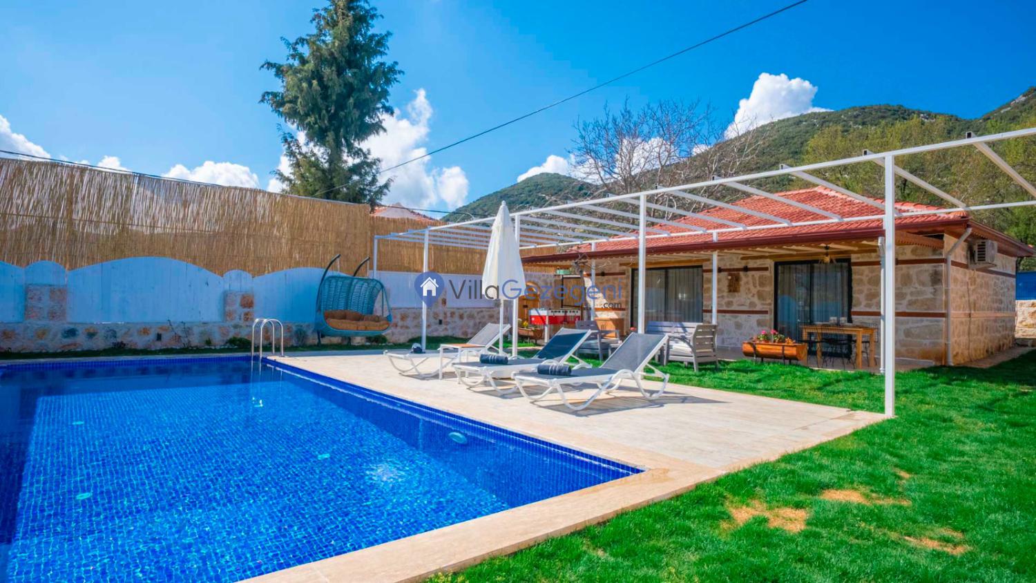 Kalkan/Sarıbelen mevkiinde, havuz terası korunaklı, jakuzili, doğa içerisinde 6 kişilik villa.