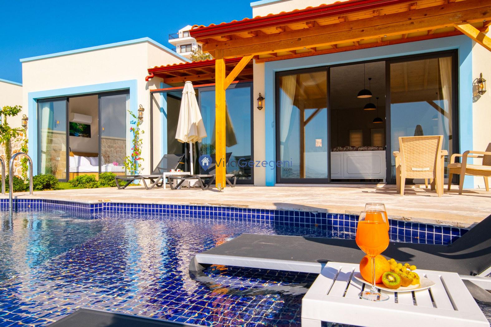 Villamızın genel konsept ve özelliklerinden tekrar bahsedecek olursak; villamızın 1 adet müstakil özel havuzu bulunmaktadır. Ortalama bir bahçeye sahip olan villamız rahatlığı ön planda tutan 1 adet yatak odası, 1 yatak, 1 banyo, hareket alanı geniş bir mutfak ve 2 kişinin geniş aralıklarla rahatlıkla oturabileceği koltuklara sahip salonu bulunmaktadır.