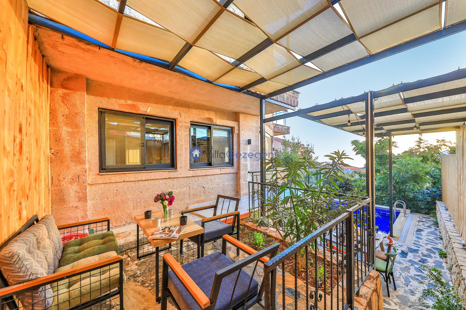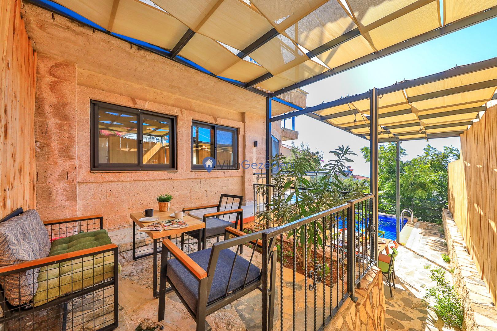 Villa Maidan B, Kalkan Kızıltaş bölgesinde bulunan 6 kişi kapasiteli, deniz manzaralı, denize 1 kilometre uzaklıkta kiralık tatil villası