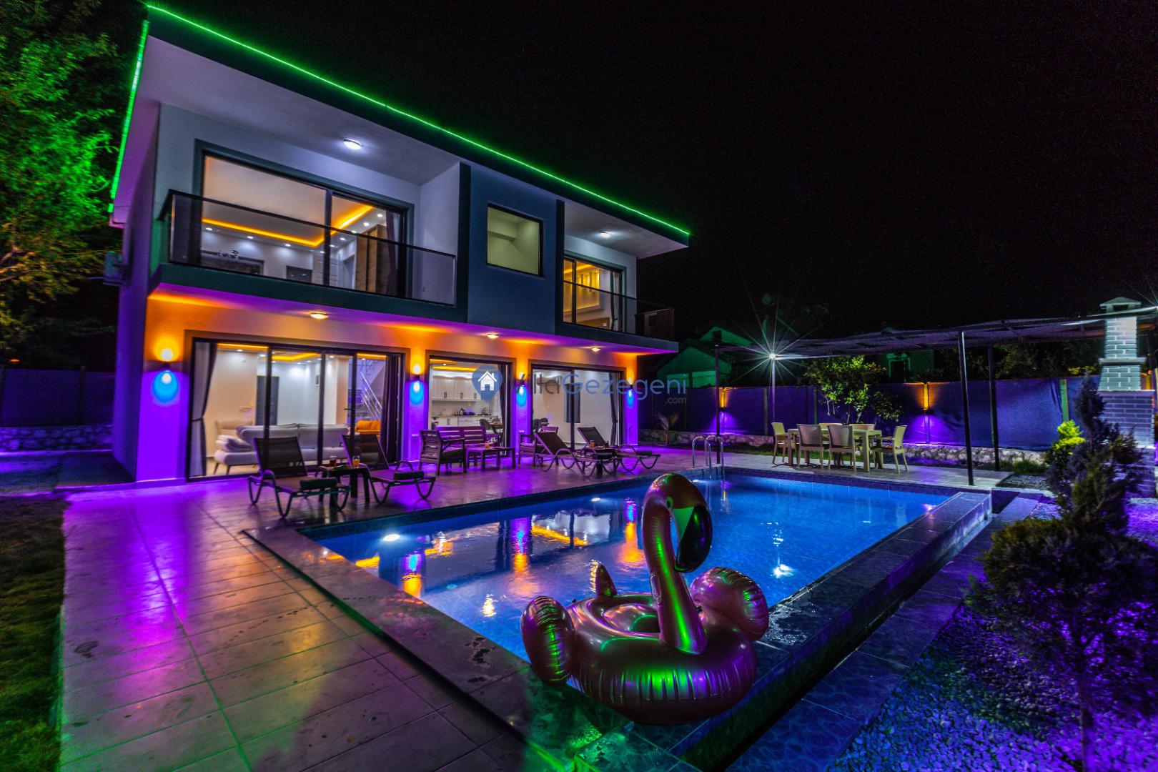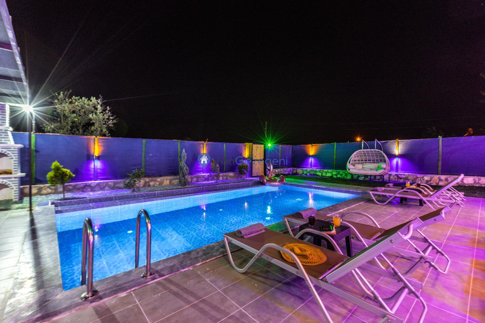 Kalkan Kınık bölgesinde yer alan 2 yatak odalı 4 kişilik havuzu korunaklı, jakuzili, doğa içerisinde muhafazakar kiralık aile ve balayı villası.