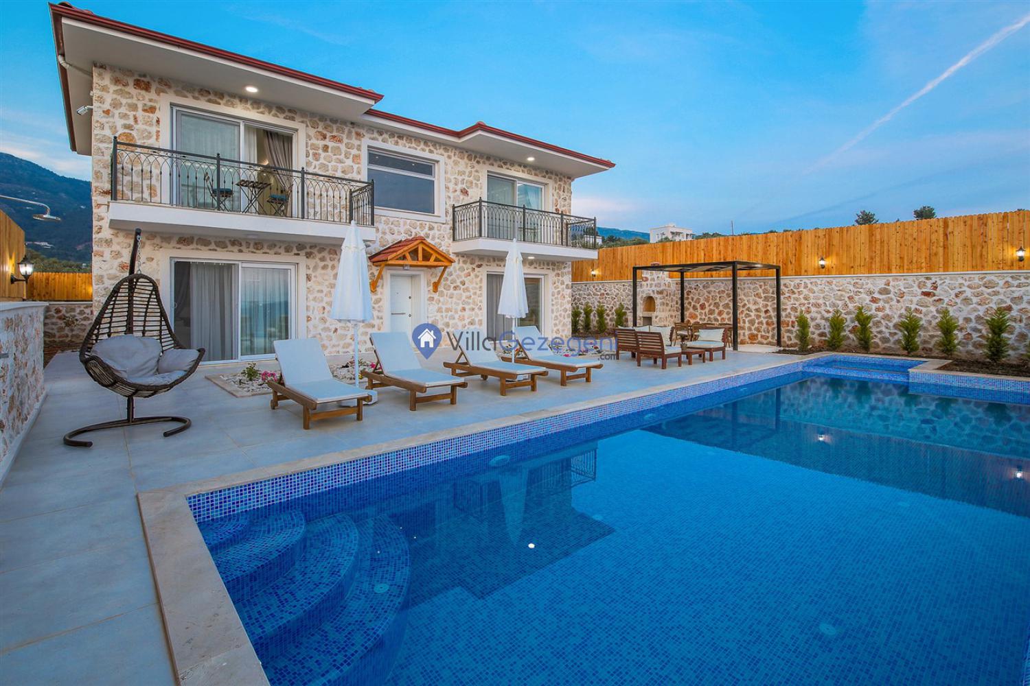Kalkan/Üzümlü Bölgesinde yer alan 3 Yatak Odalı 6 Kişi Kapasiteli Doğa İçerisinde özel havuzlu,bahçeli kiralık geniş aile ve arkadaş grubu villası.