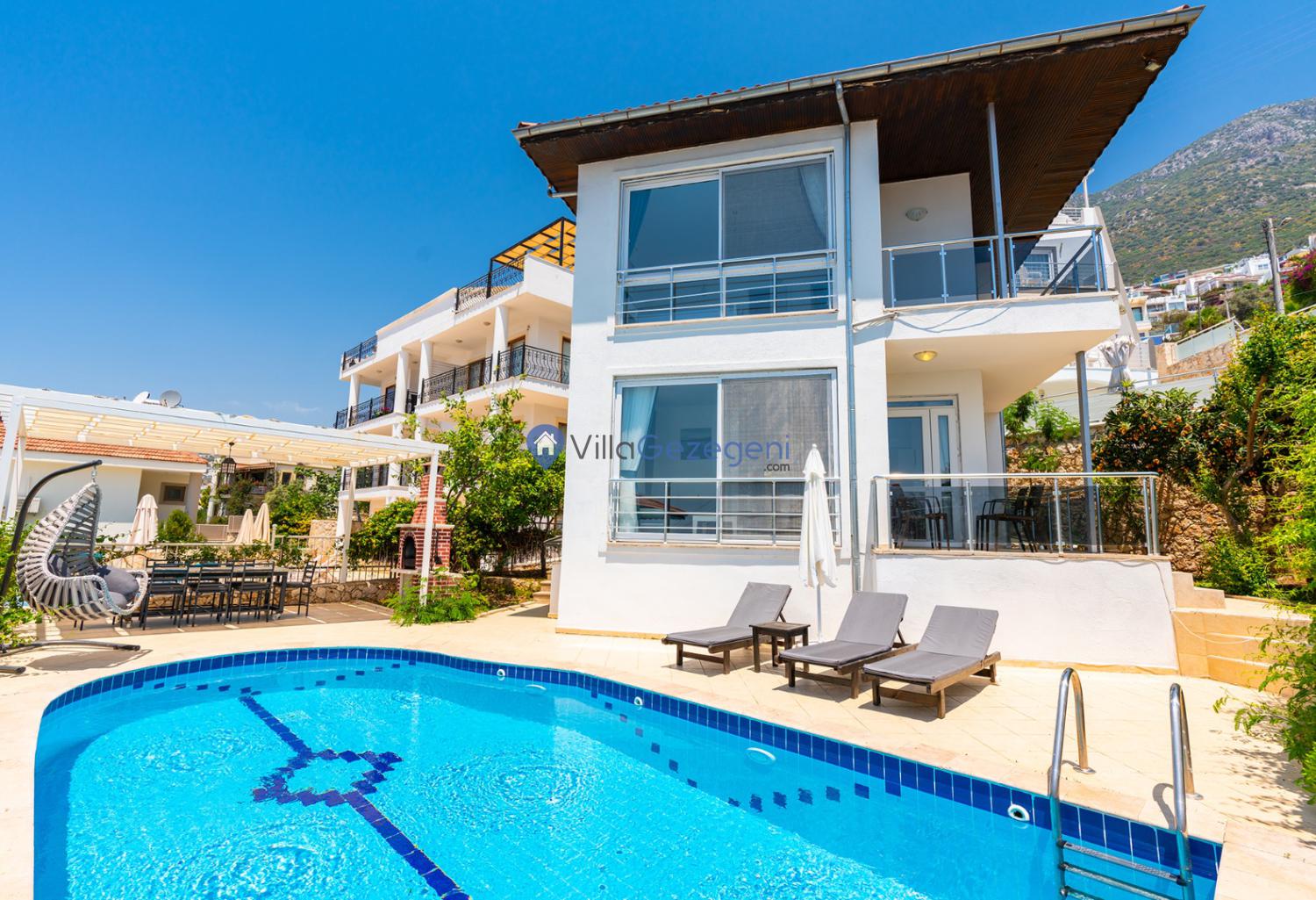 Kalkan Kızıltaş bölgesinde bulunan 11 kişilik deniz manzaralı kiralık tatil villası