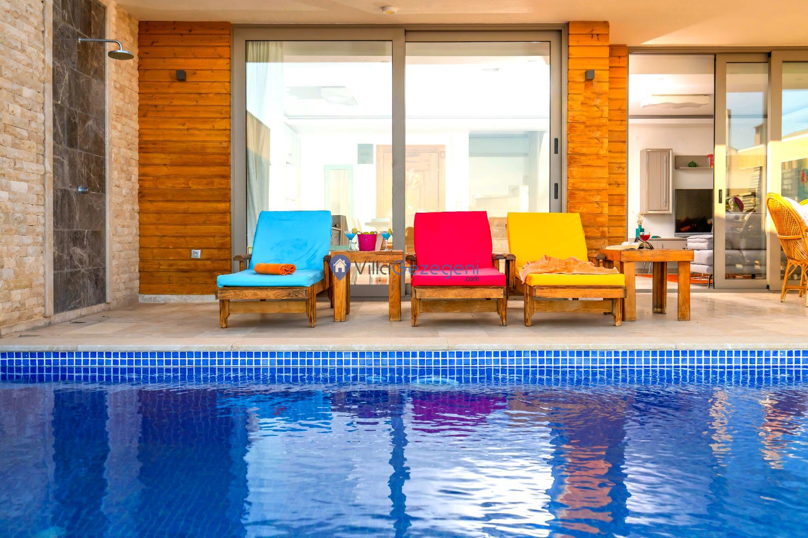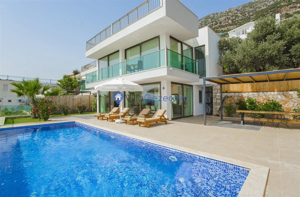 Kaş/Kalkan/Kördere Bölgesinde yer alan 3 yatak odalı 7 Kişi Kapasiteli Deniz Manzaralı Lüks Merkeze Yakın Tatil Villası.