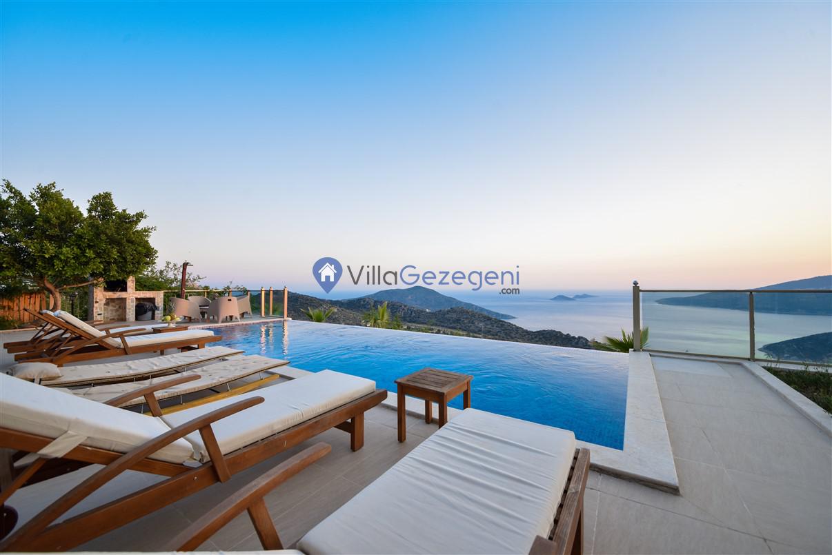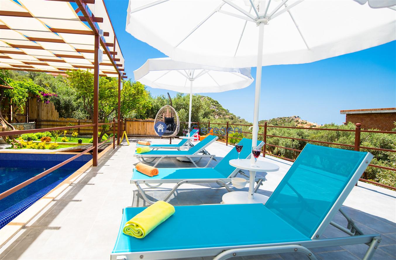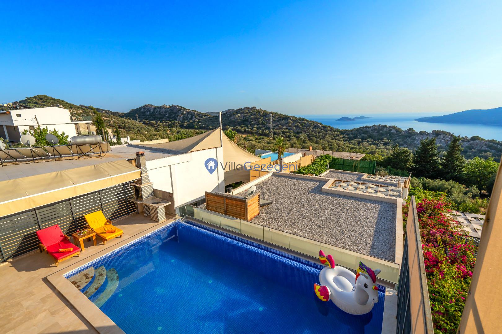 Kalkan Kördere mevkiinde bulunan 3 yatak odalı, muhteşem manzaralı kiralık villa