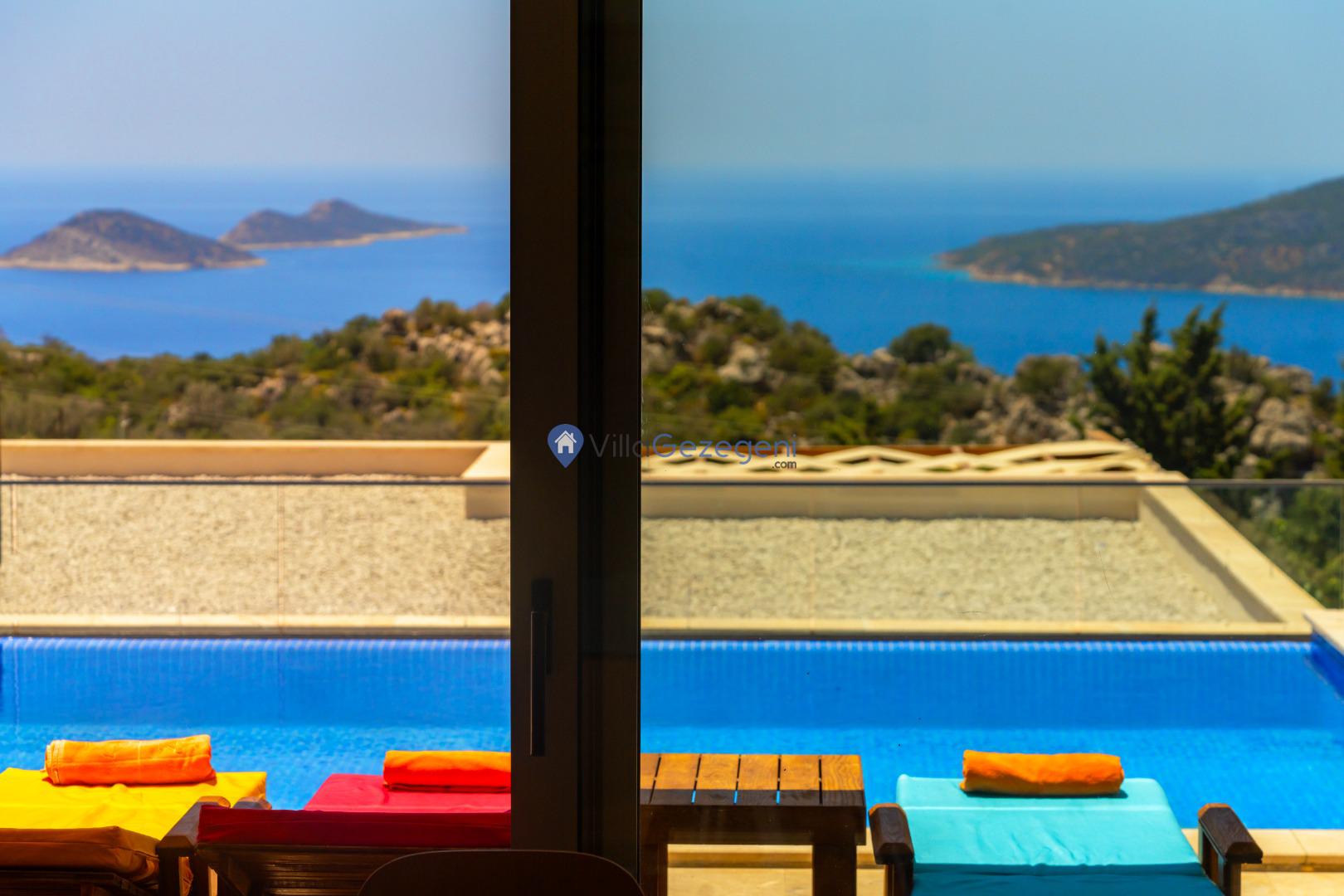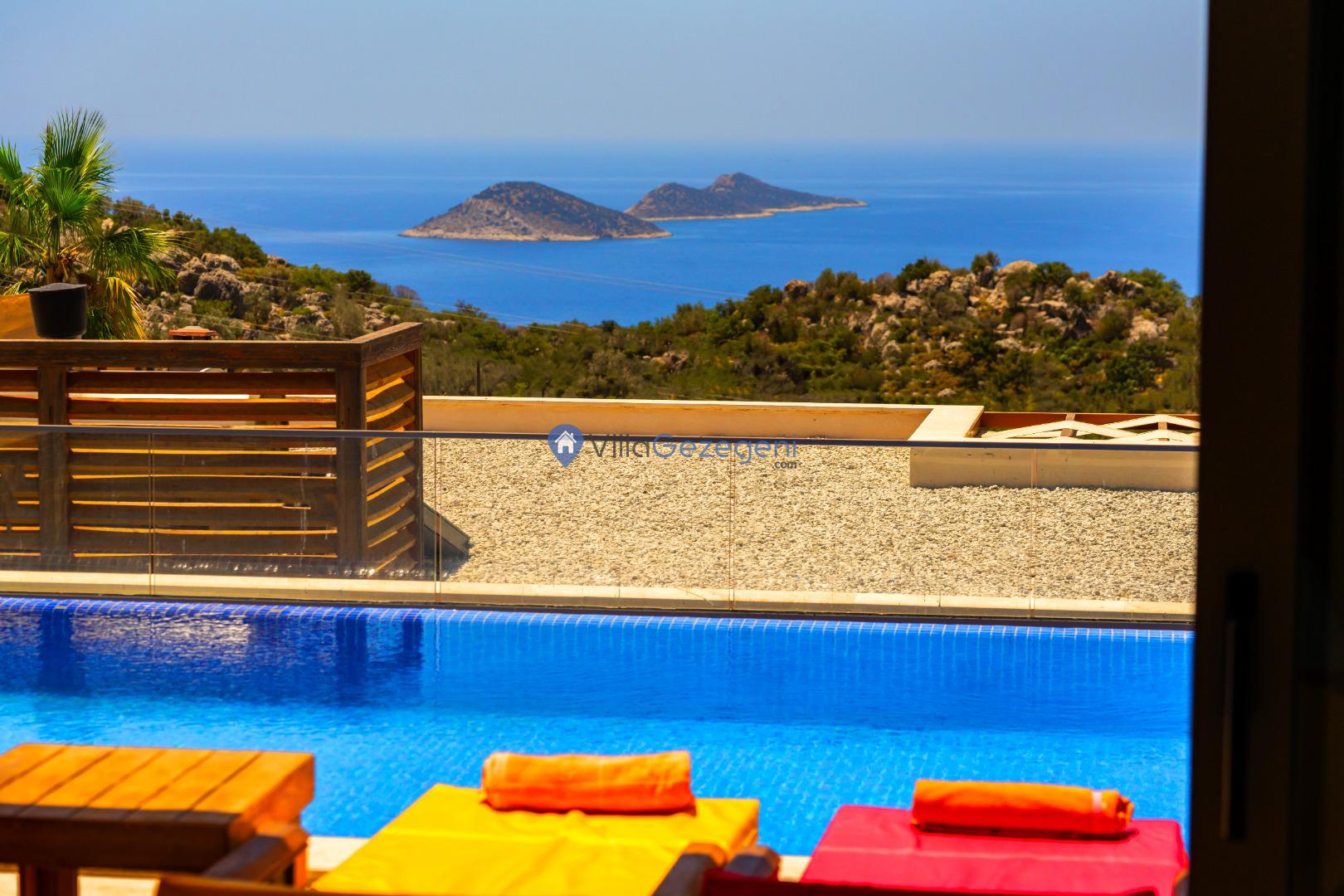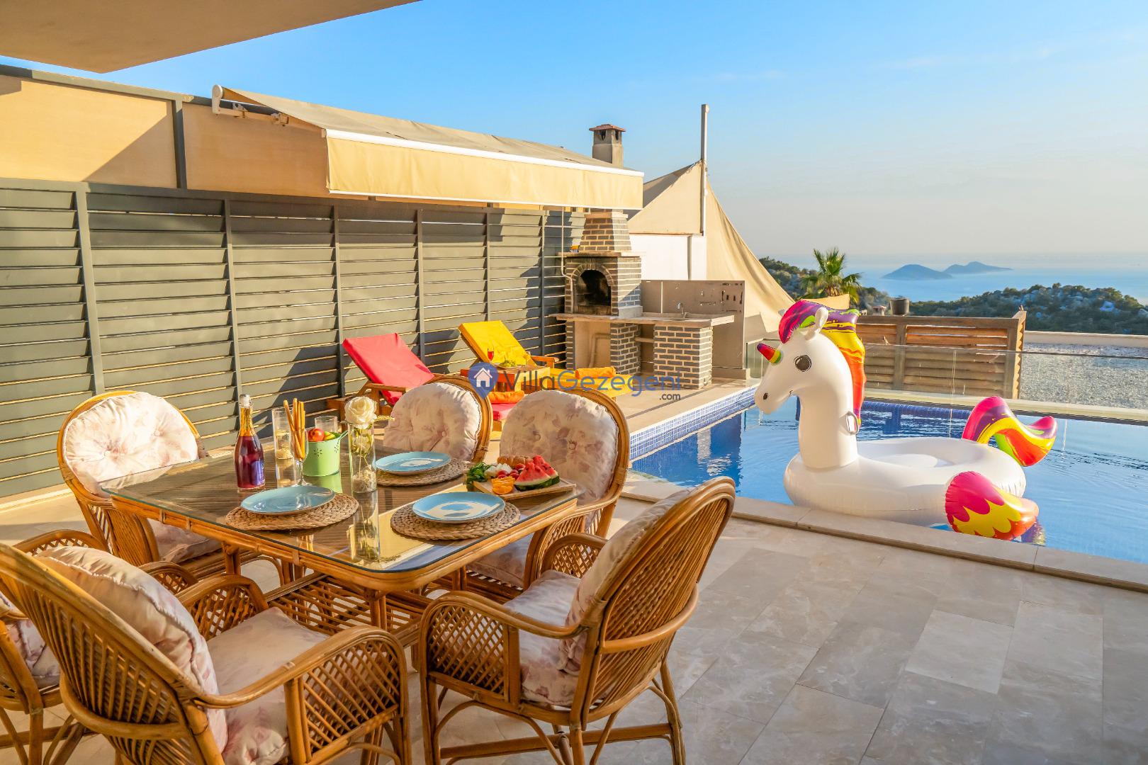 Kalkan Kördere mevkiinde bulunan 3 yatak odalı, muhteşem manzaralı kiralık villa