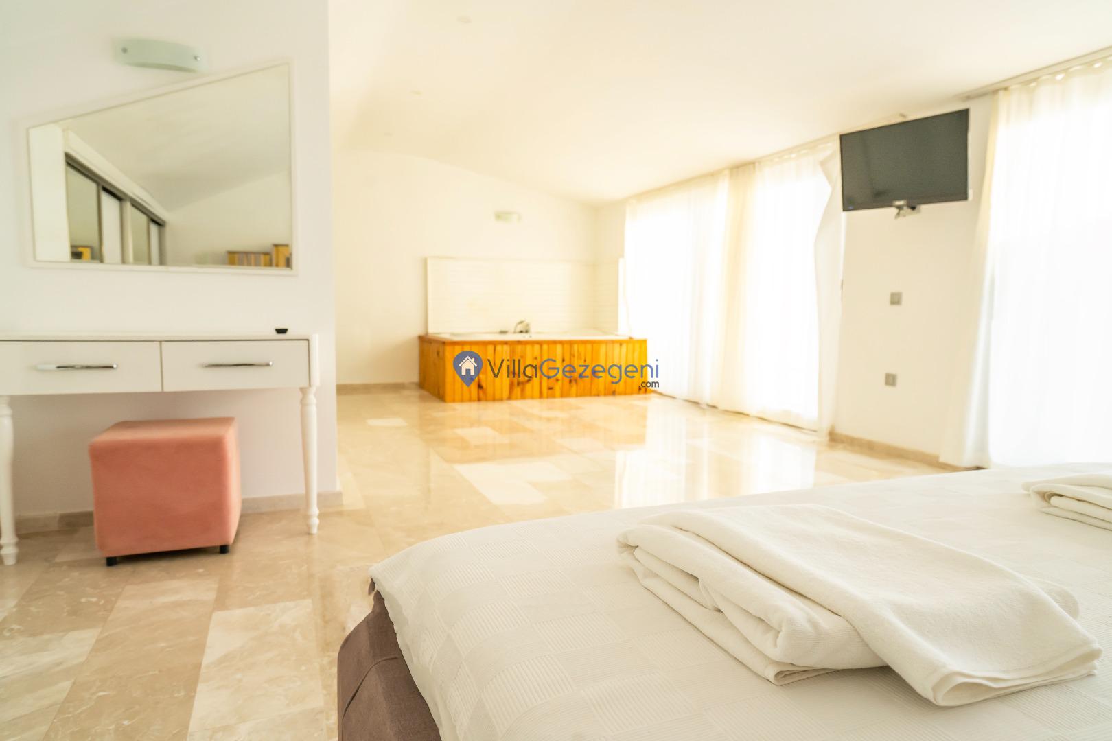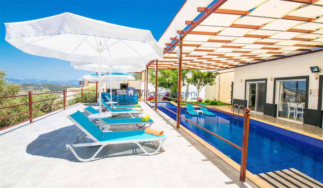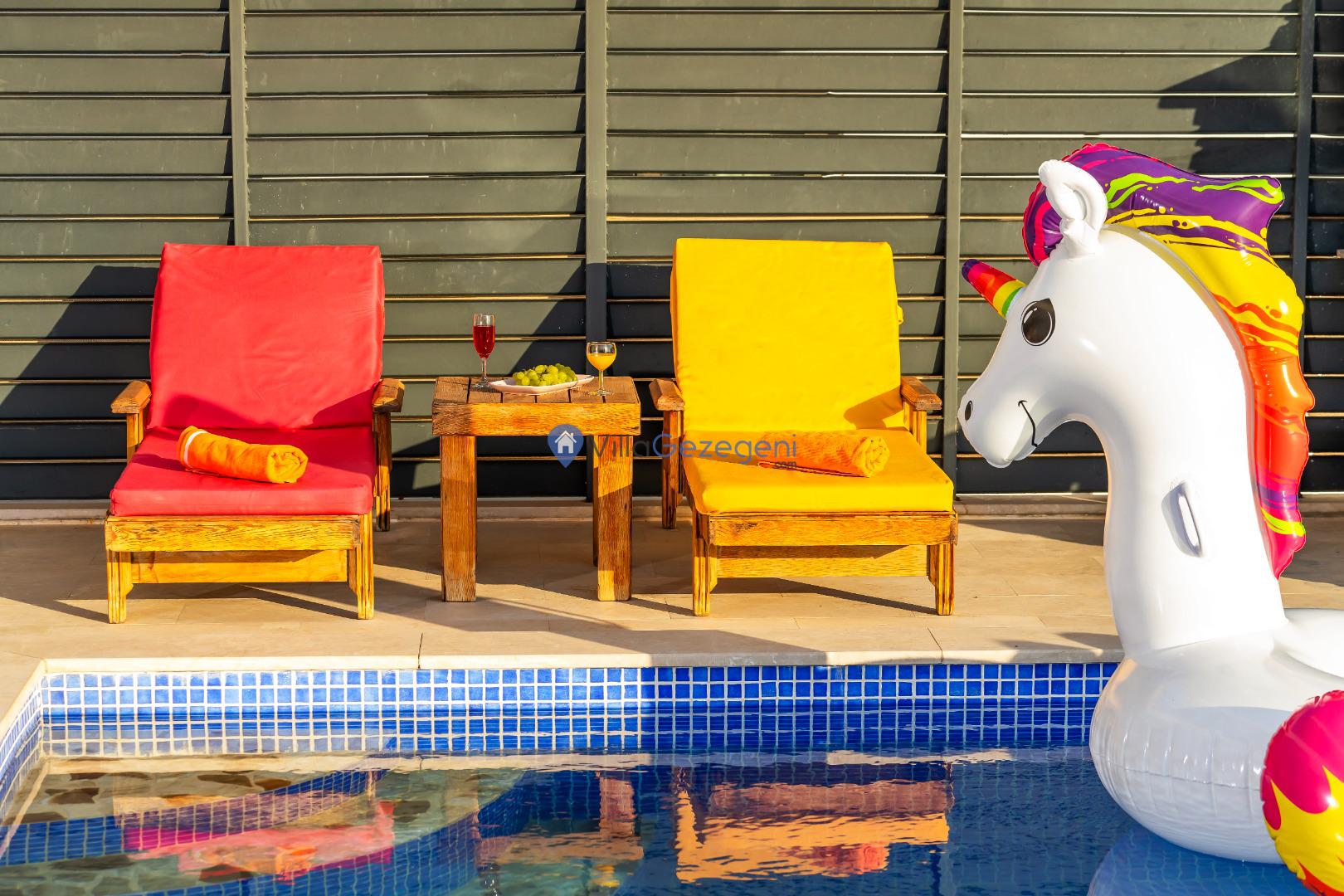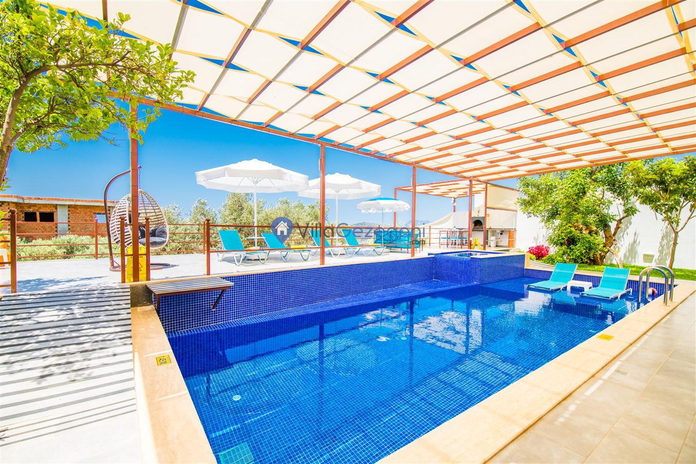 Villamızın genel konsept ve özelliklerinden tekrar bahsedecek olursak; villamızın 1 adet müstakil özel havuzu bulunmaktadır. Ferah bir bahçeye sahip olan villamız rahatlığı ön planda tutan 3 adet yatak odası, 3 yatak, 3 banyo, 1 jakuzi, 1 mutfak ve 7 kişinin geniş aralıklarla rahatlıkla oturabileceği koltuklara sahip büyük bir salonu bulunmaktadır.