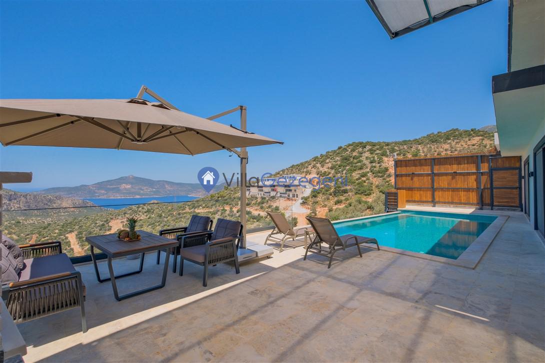 Kalkan Kördere Ordu bölgesinde bulunan deniz manzaralı kiralık tatil villası