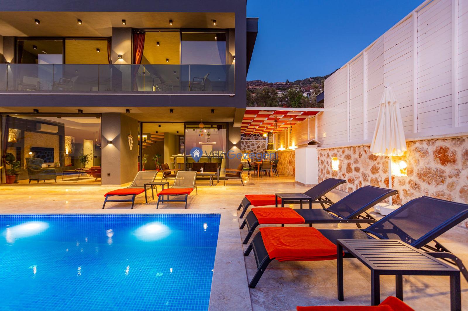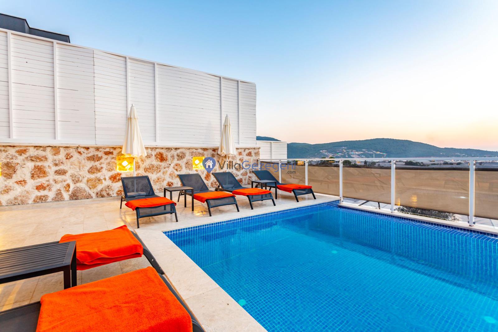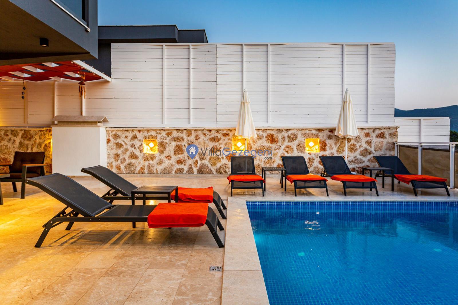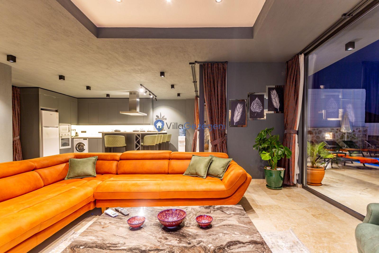 Kalkan Yeşilköy bölgesinde bulunan 5 kişi kapasiteli kiralık balayı villası.