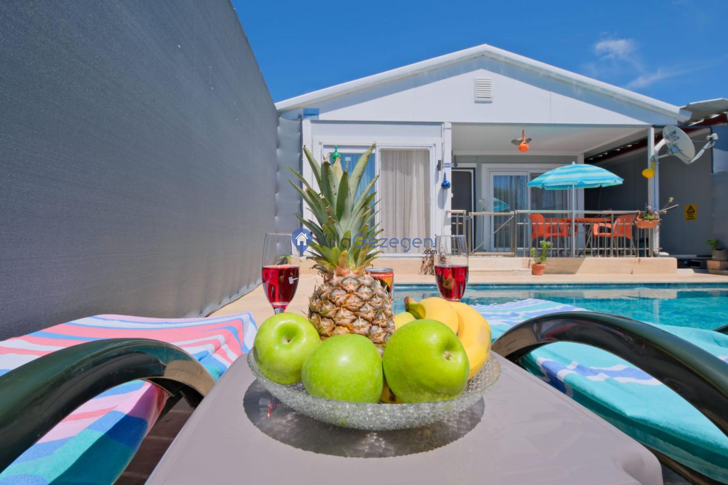 Villamızın genel konsept ve özelliklerinden tekrar bahsedecek olursak; villamızın 1 adet müstakil özel havuzu bulunmaktadır. Ortalama bir bahçeye sahip olan villamız rahatlığı ön planda tutan 2 adet yatak odası,3 yatak,1 banyo, hareket alanı geniş bir mutfak ve 4 kişinin geniş aralıklarla rahatlıkla oturabileceği koltuklara sahip salonu bulunmaktadır.