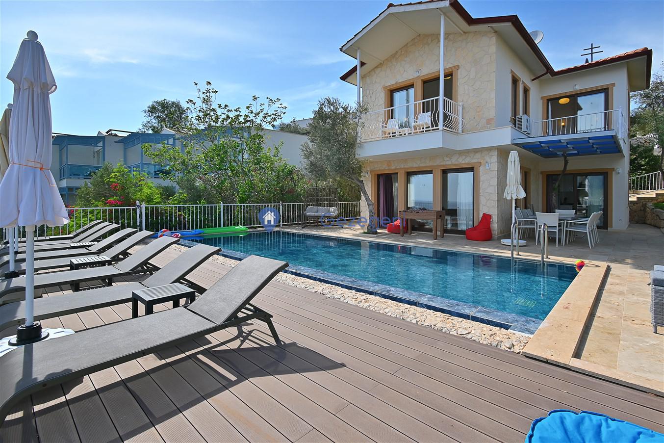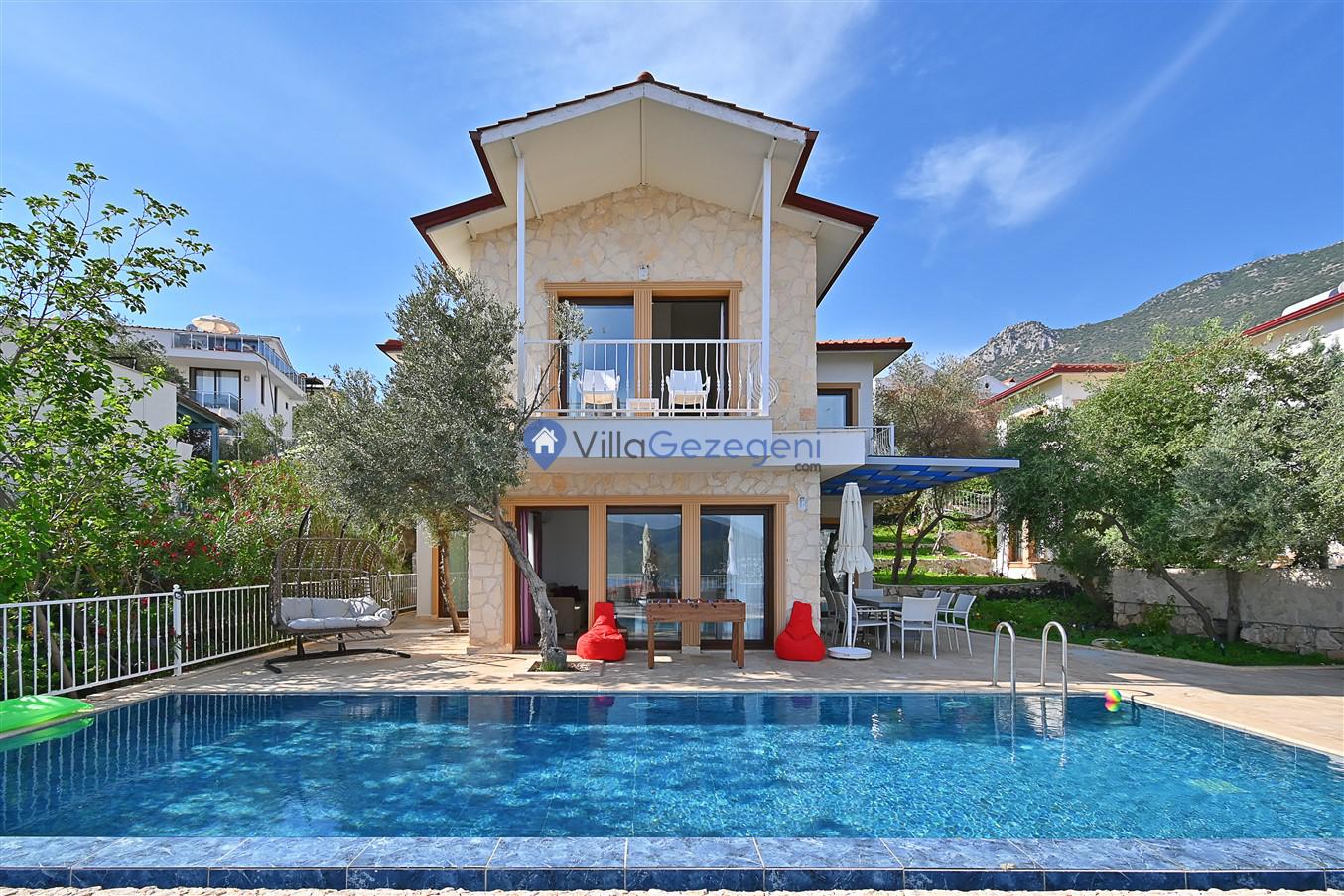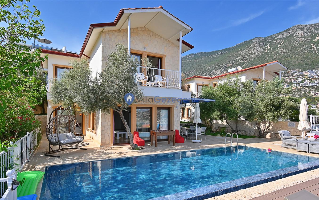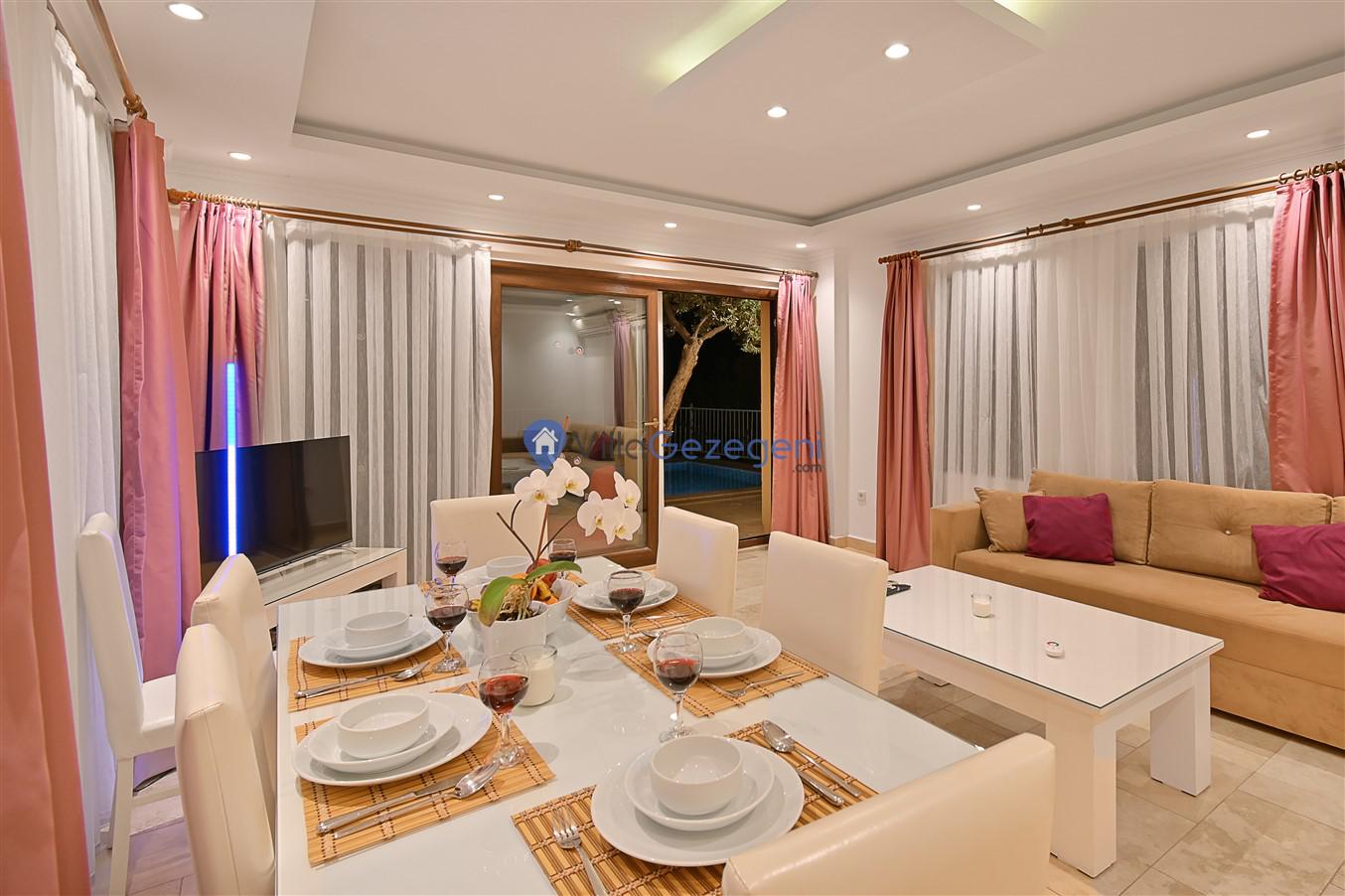 Kaş/Kalkan/Ortaalan Bölgesinde yer alan 3 yatak odalı 6 kişi kapasiteli şehir merkezine yakın deniz manzaralı tatil villasıdır.
