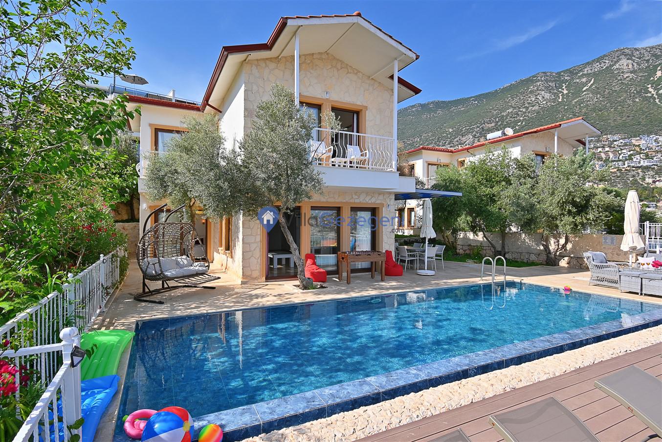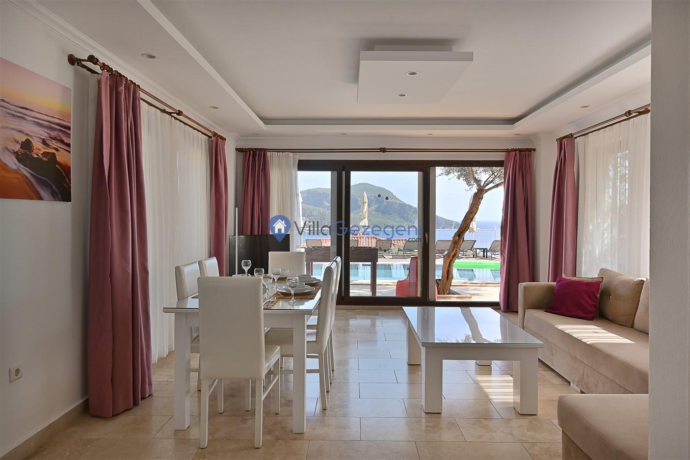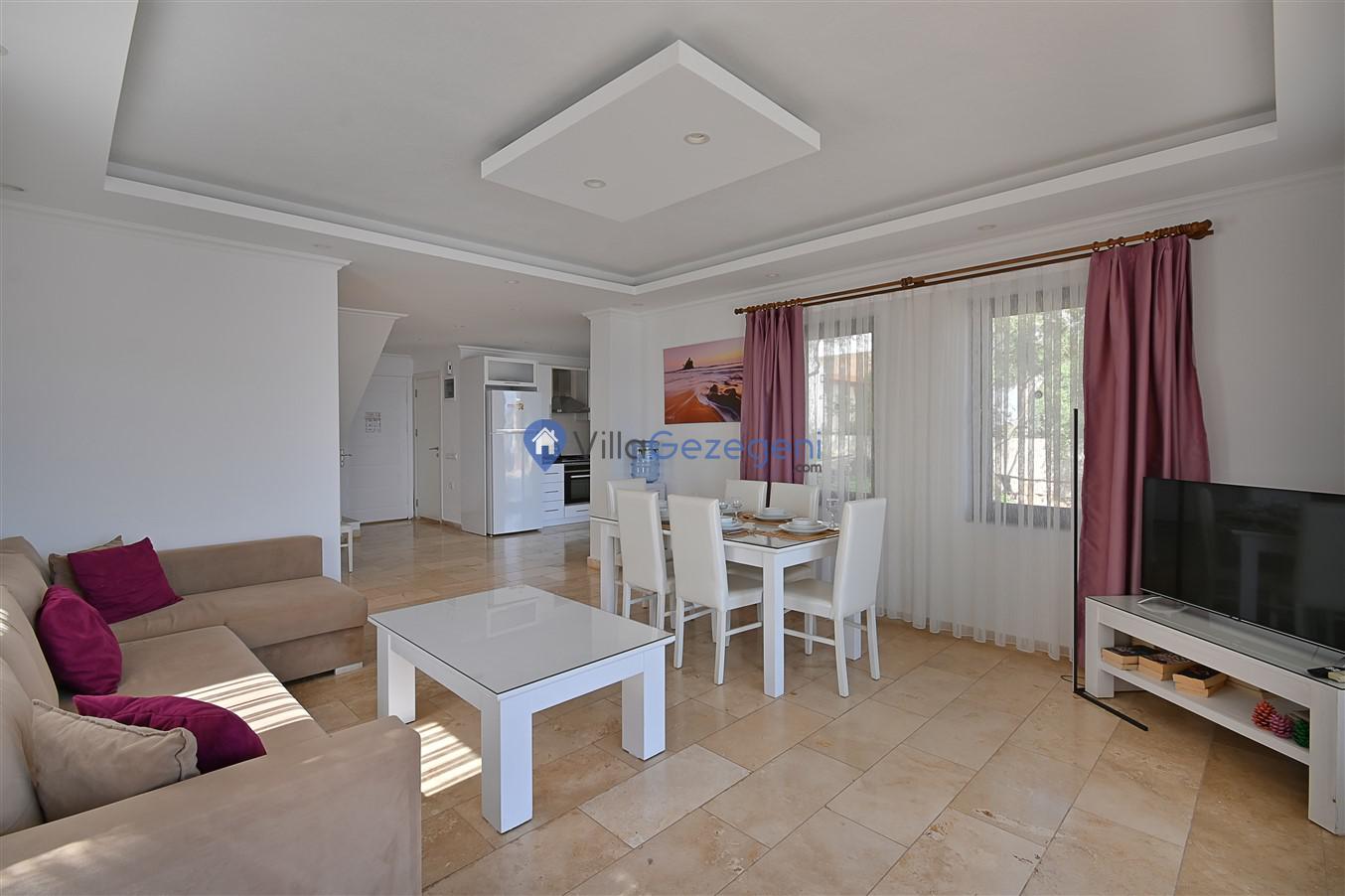 Kaş/Kalkan/Ortaalan Bölgesinde yer alan 3 yatak odalı 6 kişi kapasiteli şehir merkezine yakın deniz manzaralı tatil villasıdır.