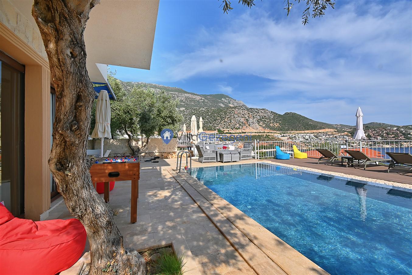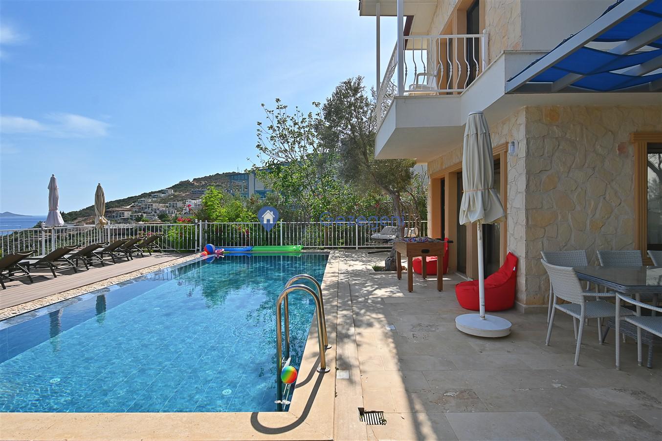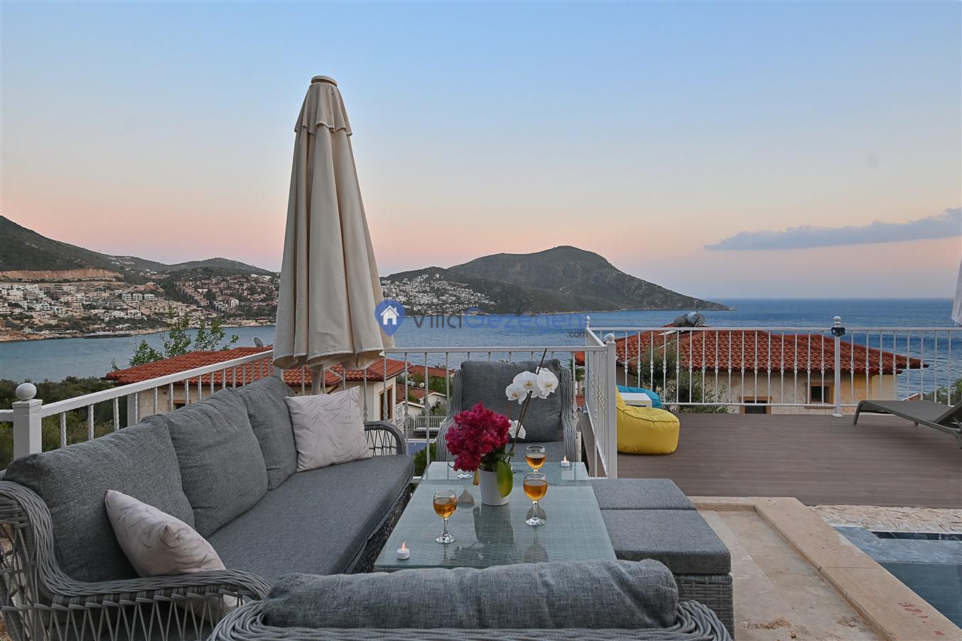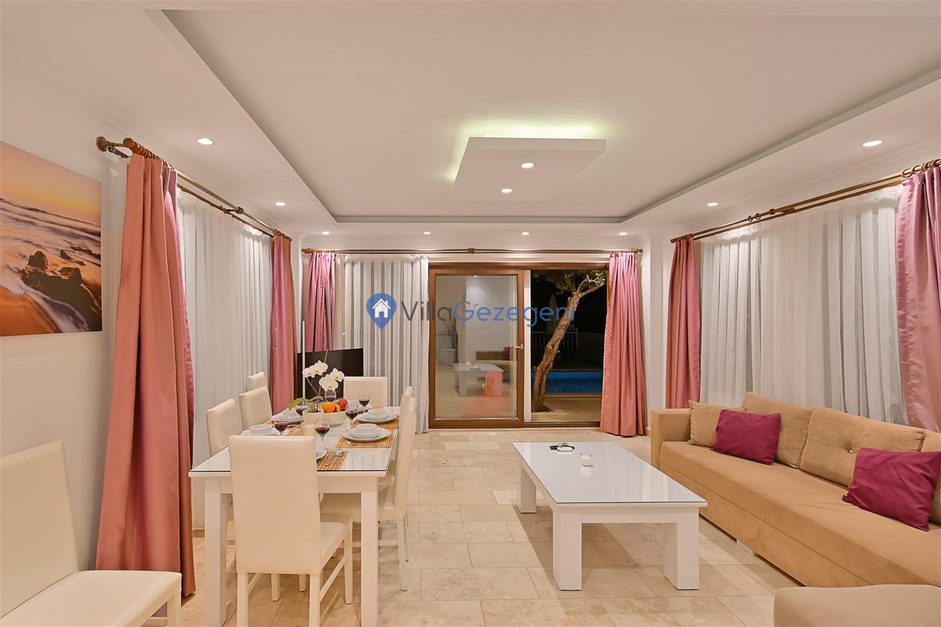 Kaş/Kalkan/Ortaalan Bölgesinde yer alan 3 yatak odalı 6 kişi kapasiteli şehir merkezine yakın deniz manzaralı tatil villasıdır.