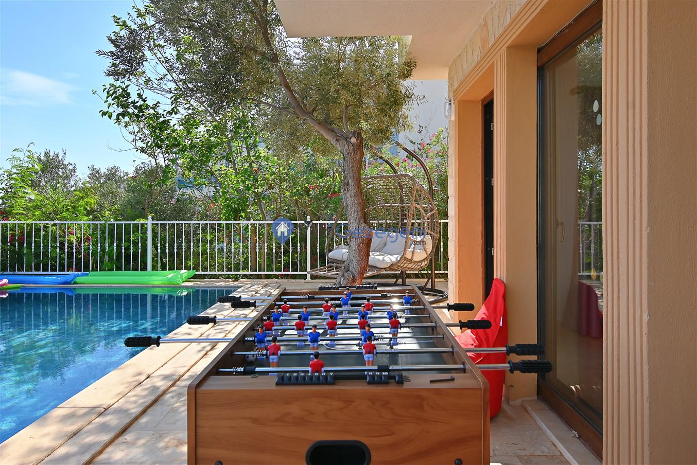 Yemek Masası ve bahçe mobilyaları kullanımınız için hazır bulunmaktadır sevdikleriniz ile beraber yemekler yiyip sohbetin dibine vurabilirsiniz. Villanın bahçesindeki salıncak ile keyifli vakitler geçirebilirsiniz.