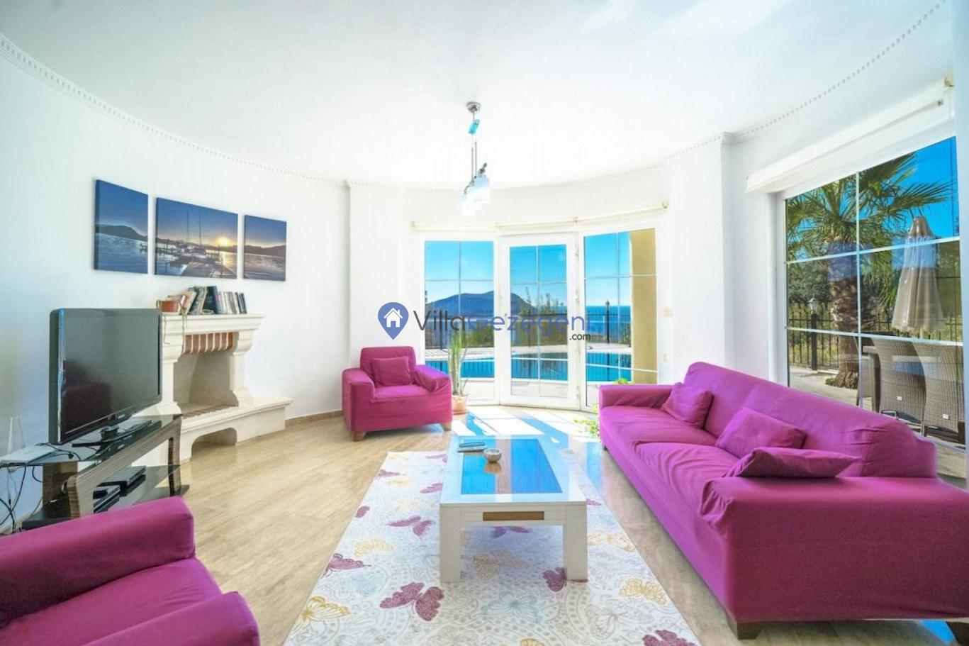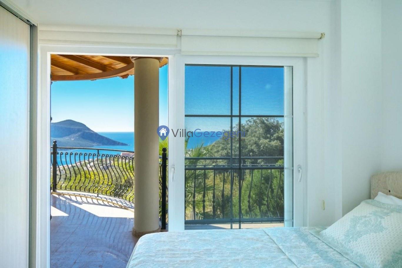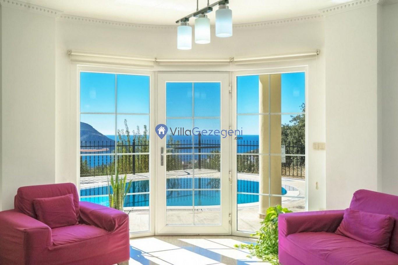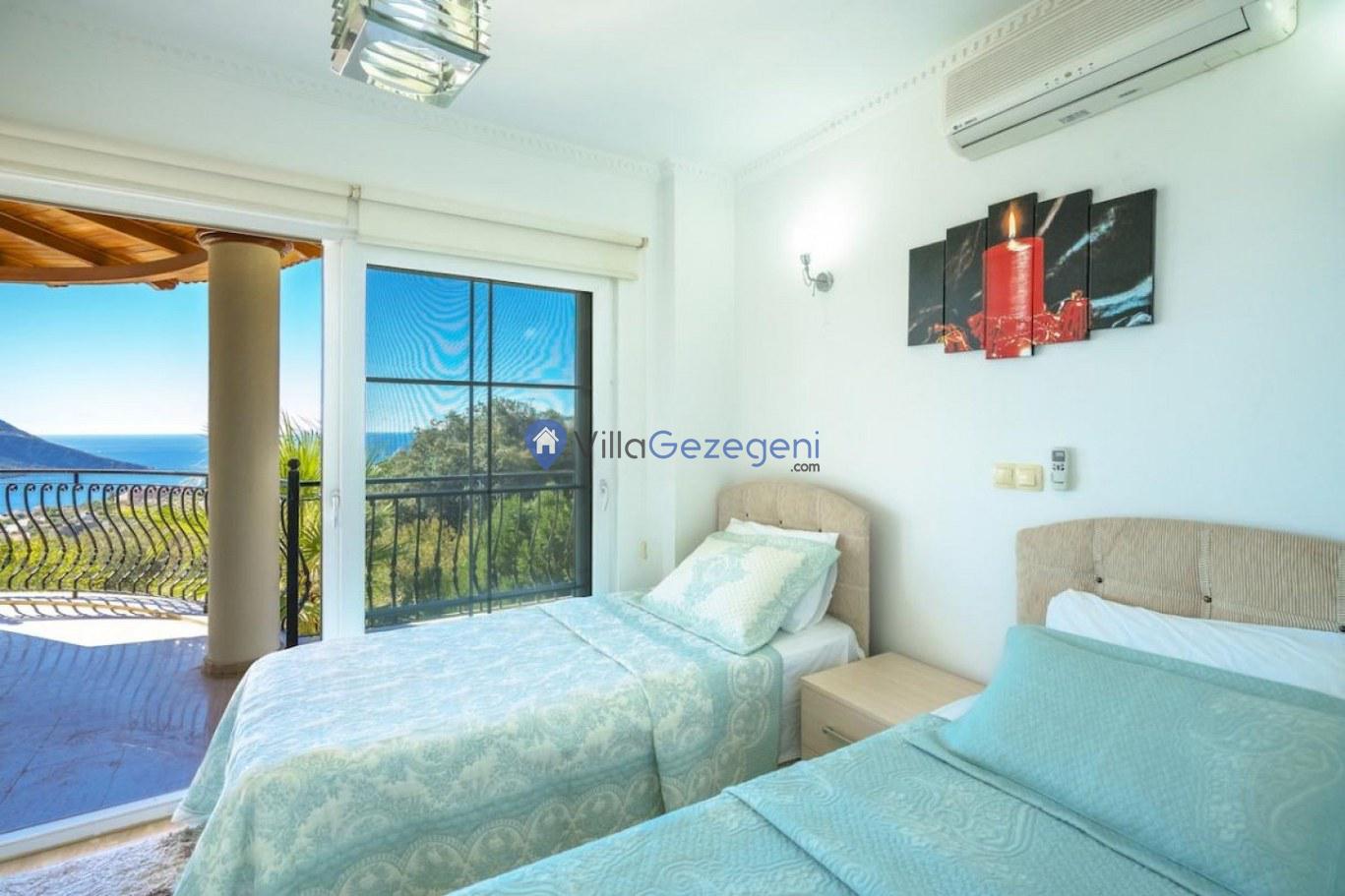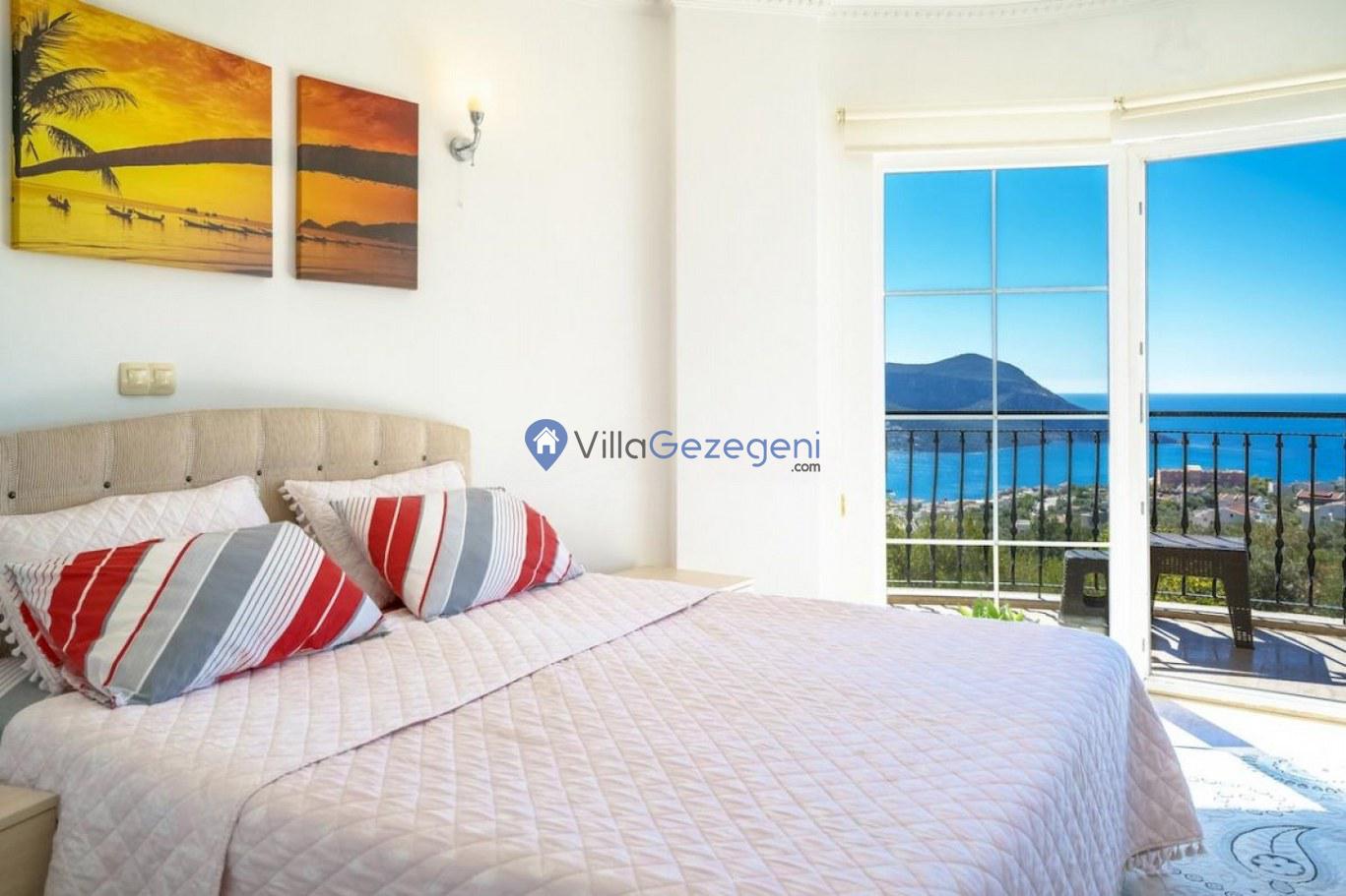 Kalkan Kızıltaş bölgesinde yer alan 3 yatak odalı 6 kişilik deniz manzaralı Geniş Aile kiralık villası.