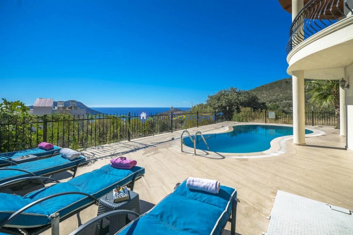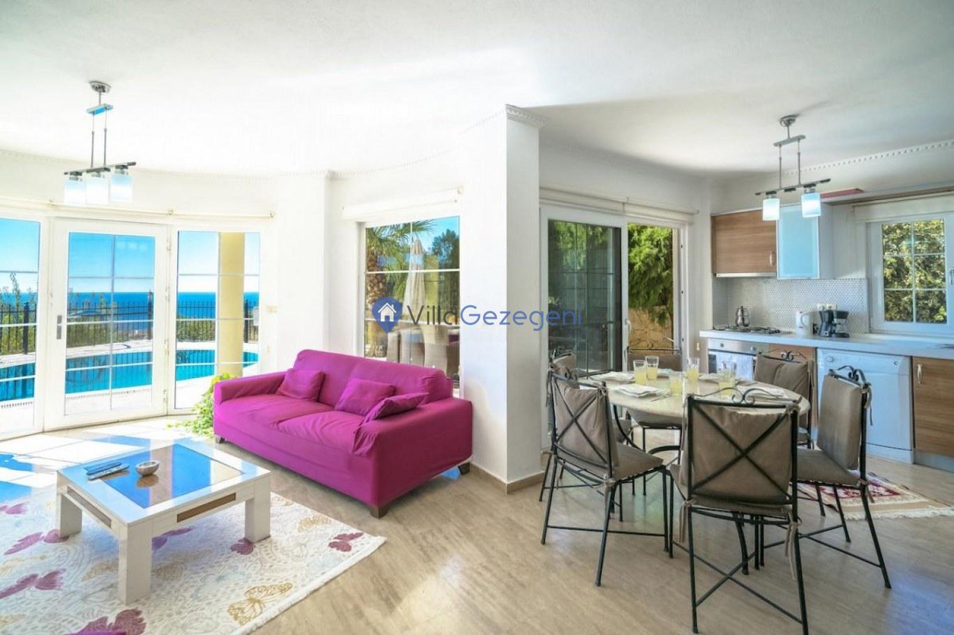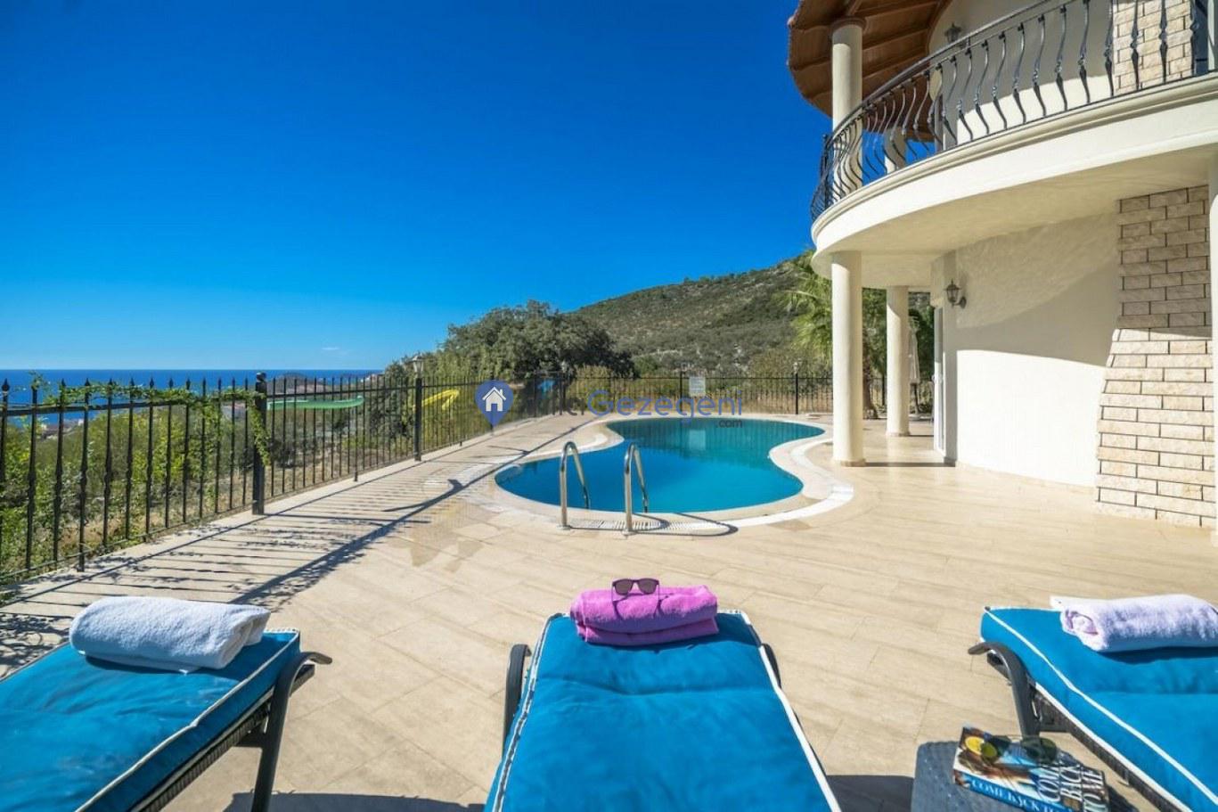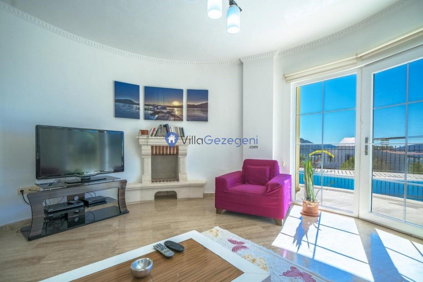 Kalkan Kızıltaş bölgesinde yer alan 3 yatak odalı 6 kişilik deniz manzaralı Geniş Aile kiralık villası.