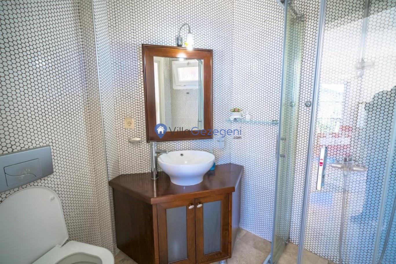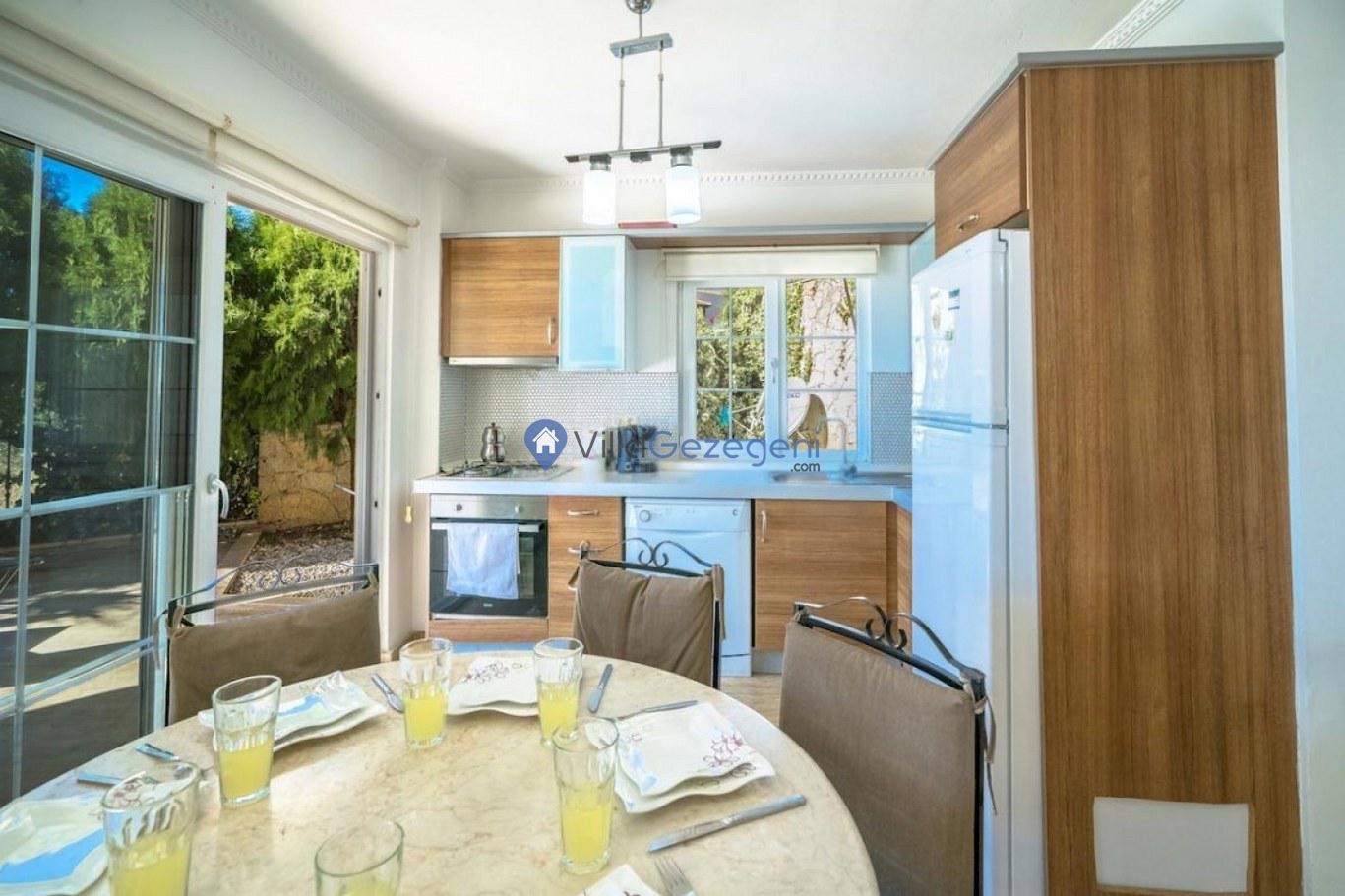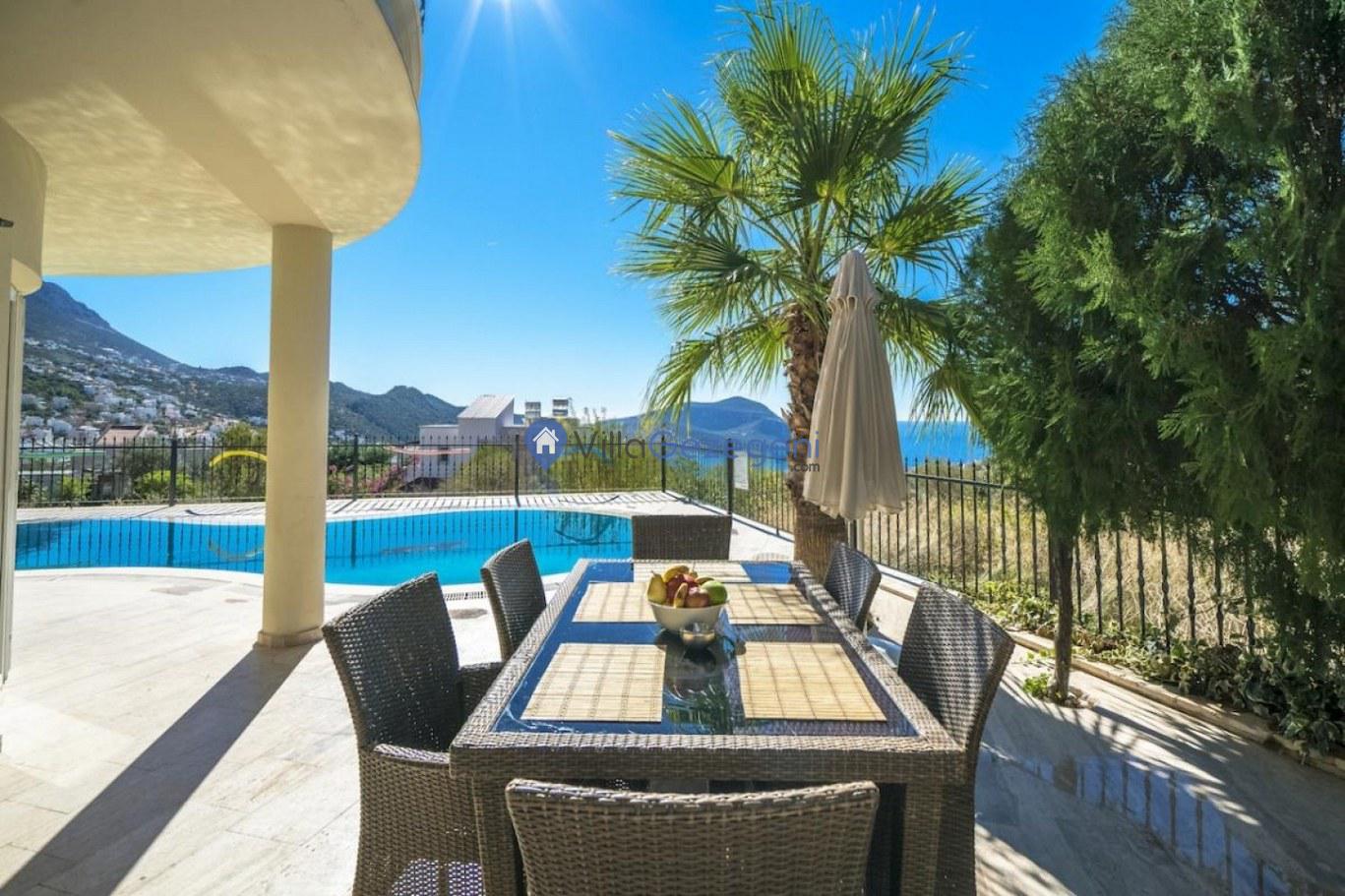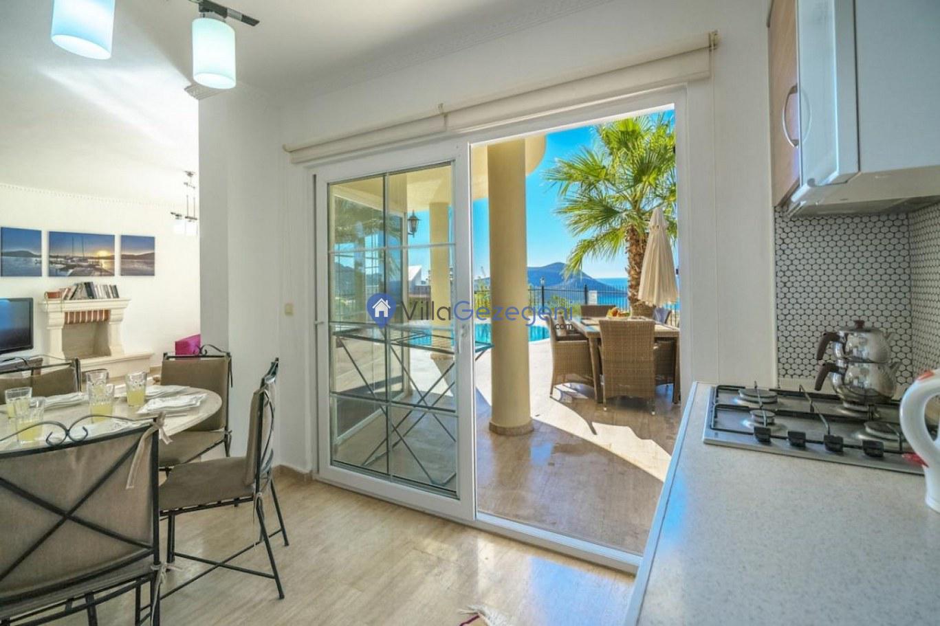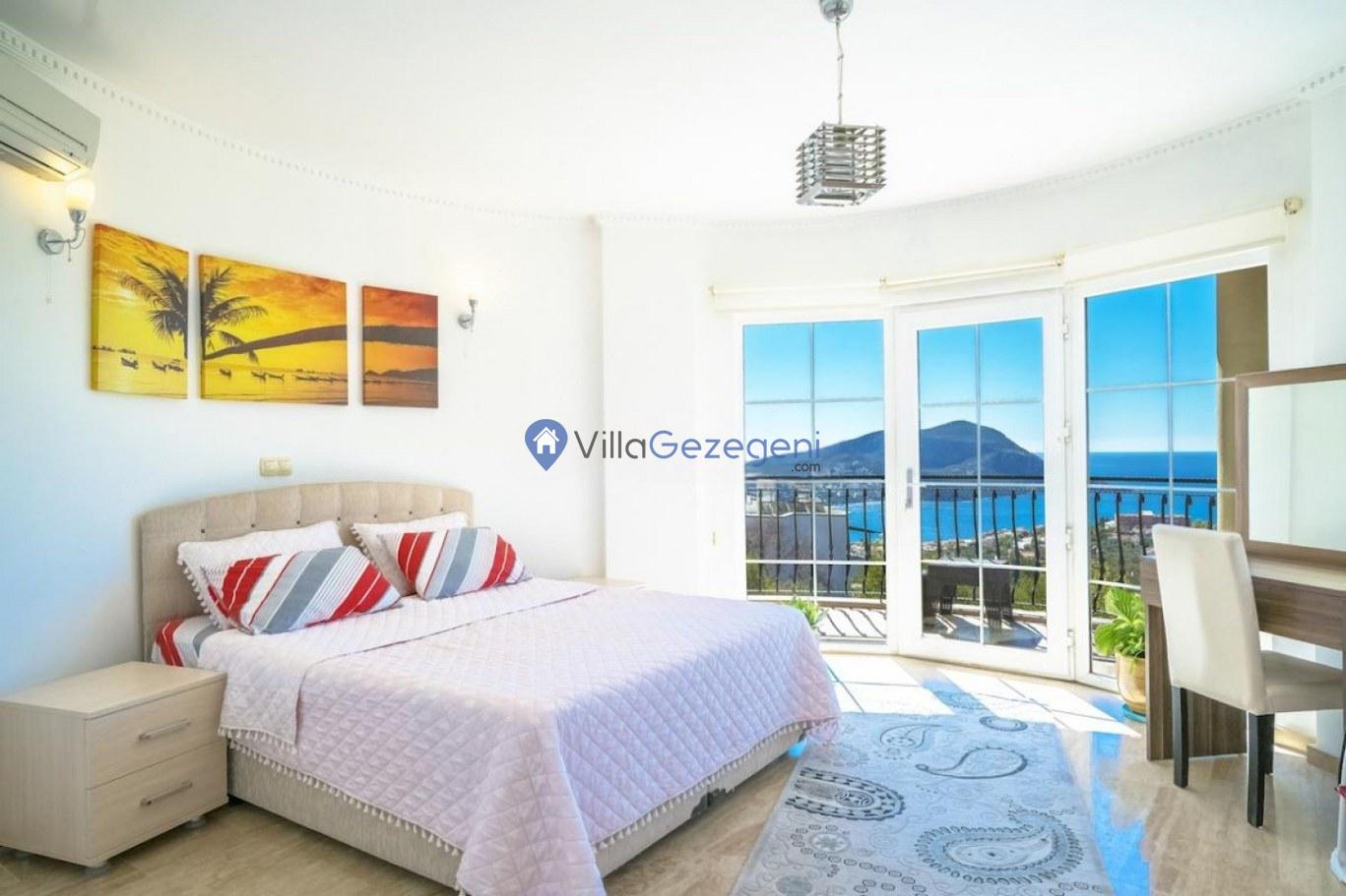 Kalkan Kızıltaş bölgesinde yer alan 3 yatak odalı 6 kişilik deniz manzaralı Geniş Aile kiralık villası.