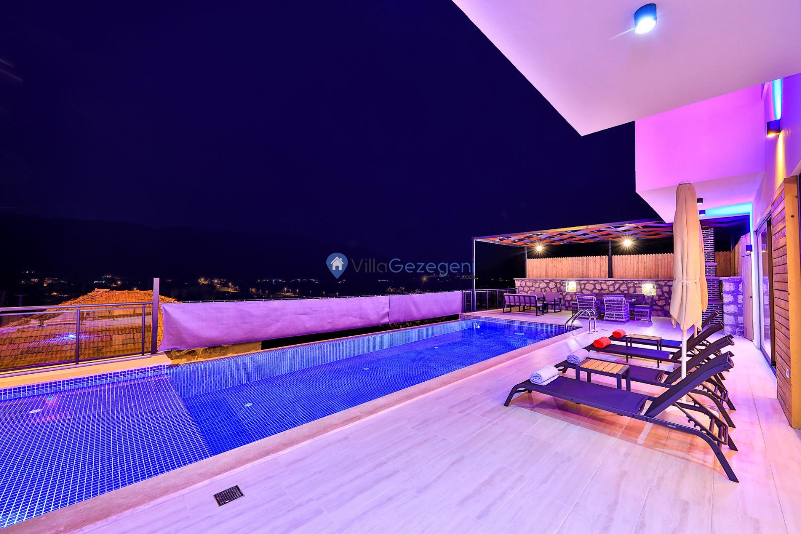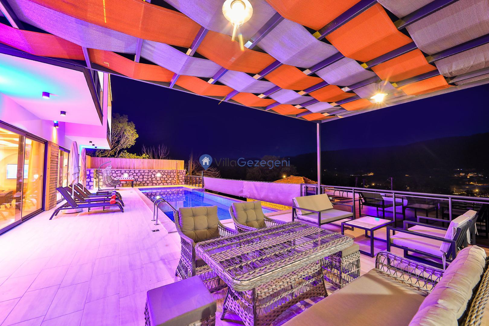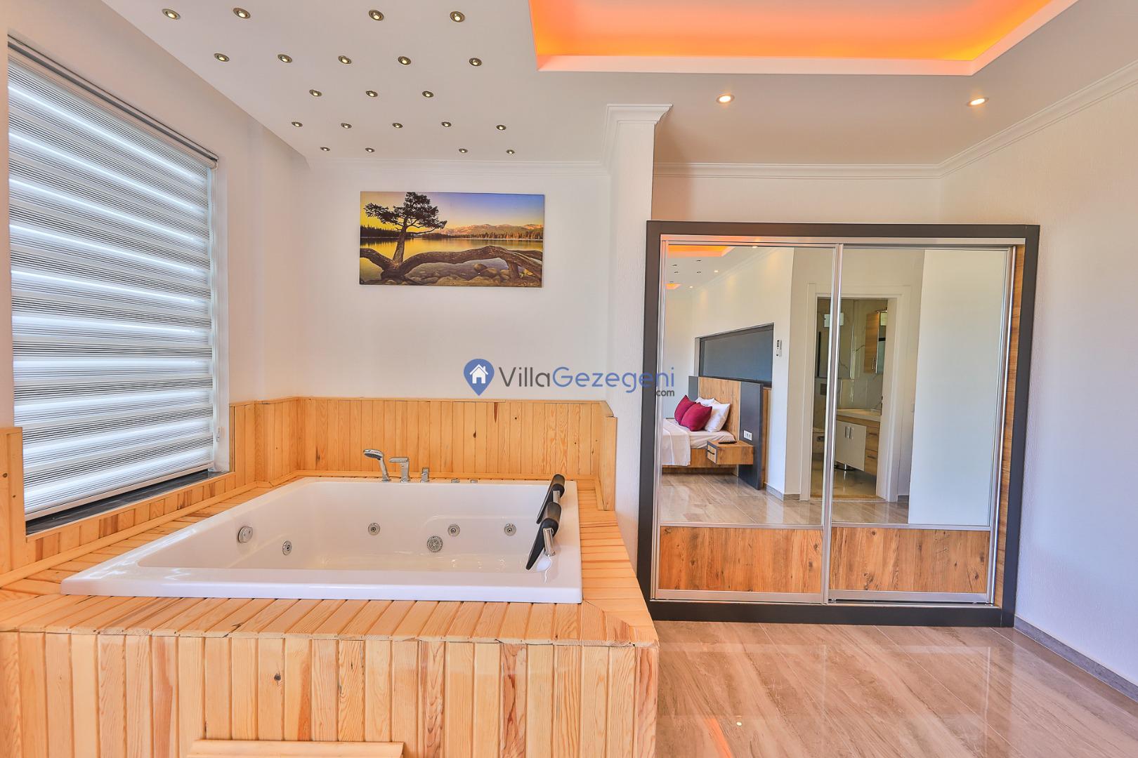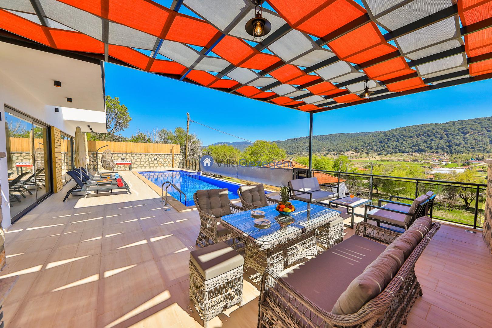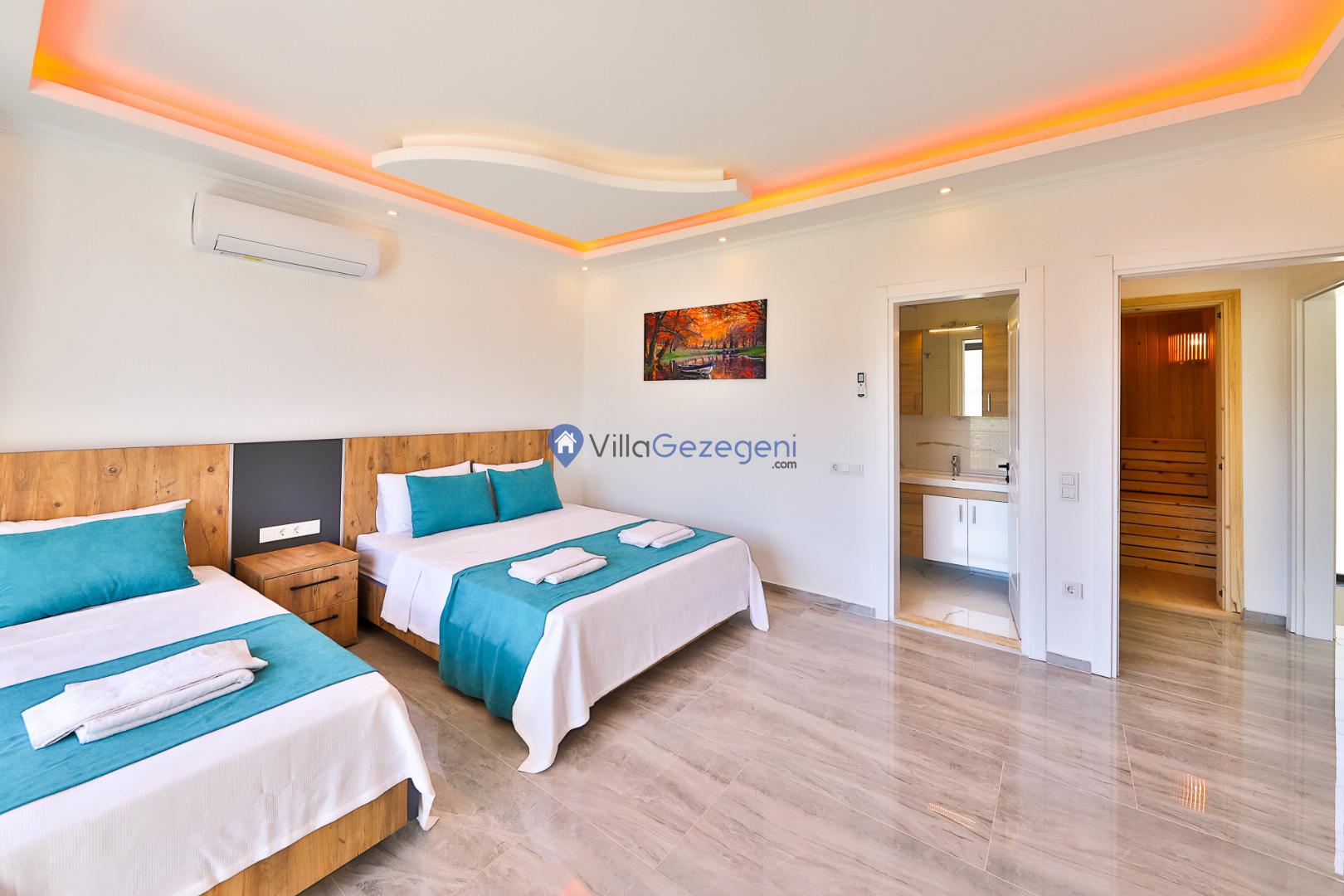 Sarıbelen'de bulunan 2 odalı lüks, saunalı ve bahçeli kiralık özel havuzlu balayı villası