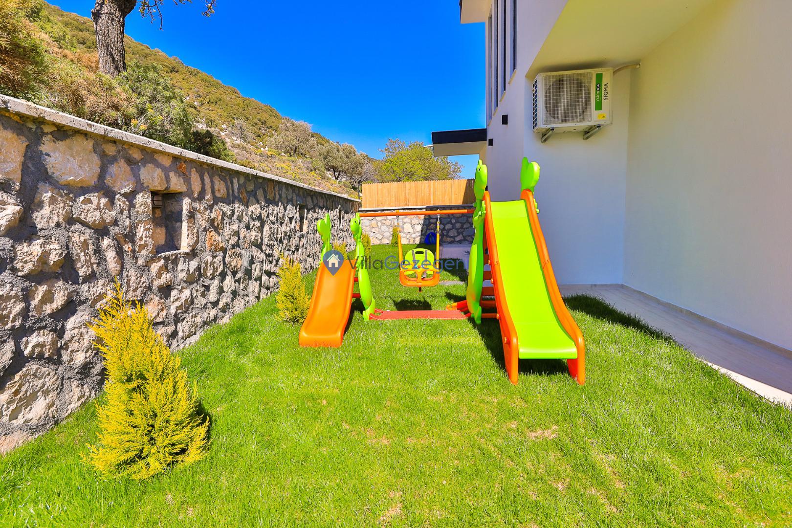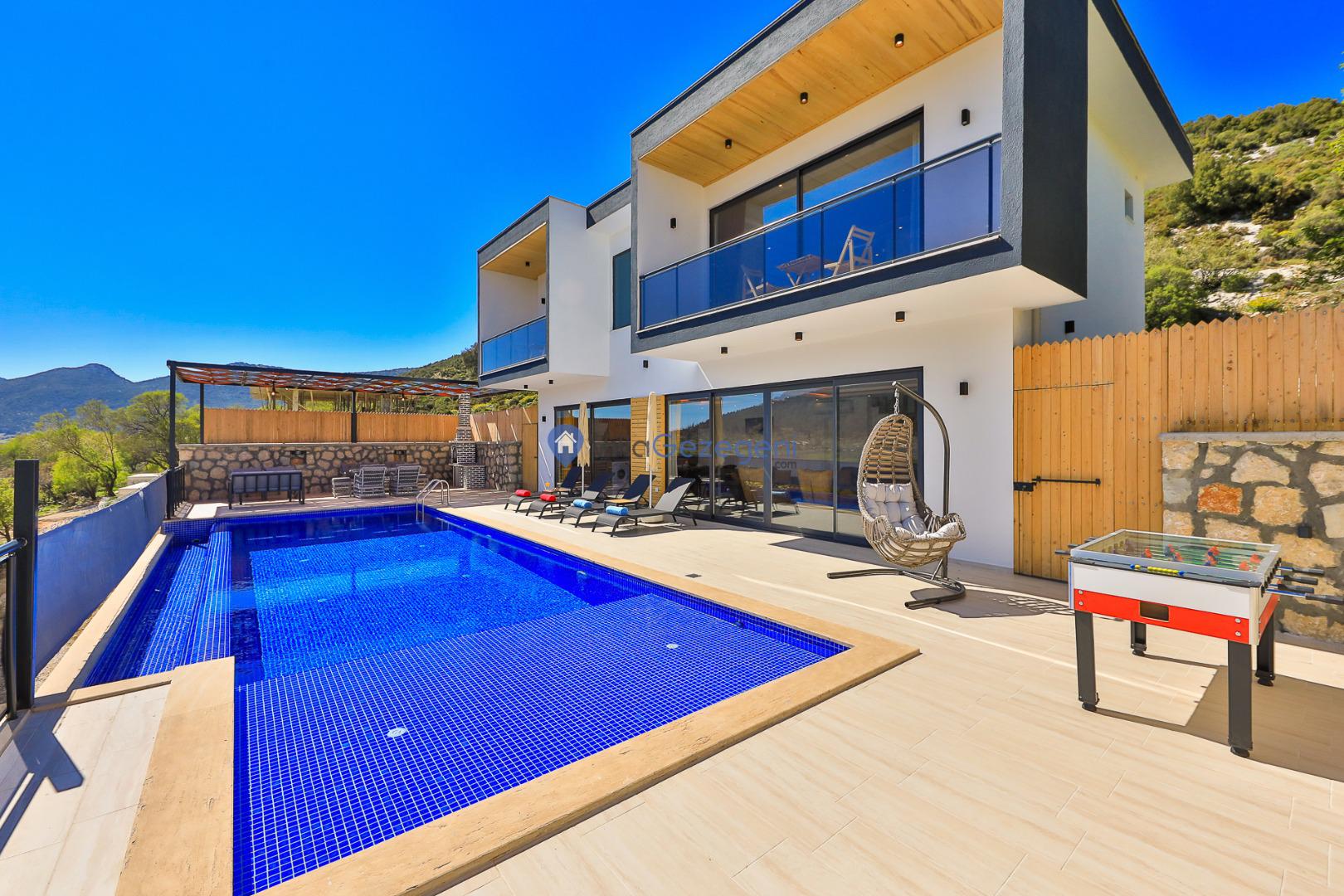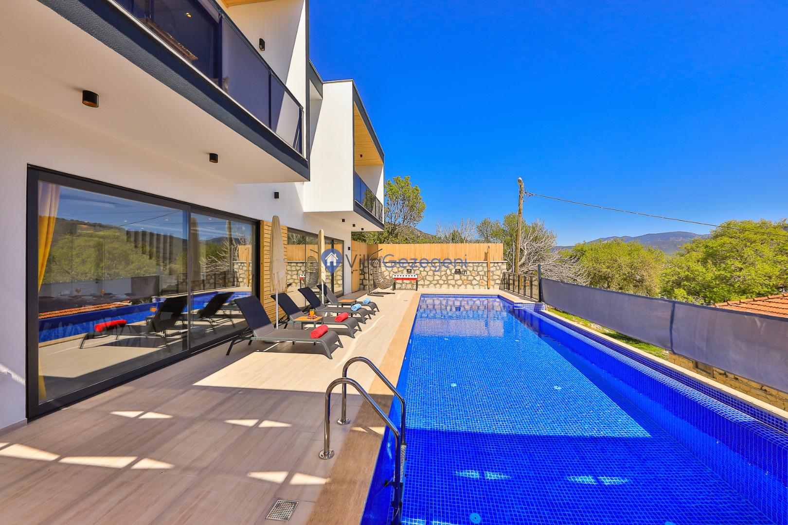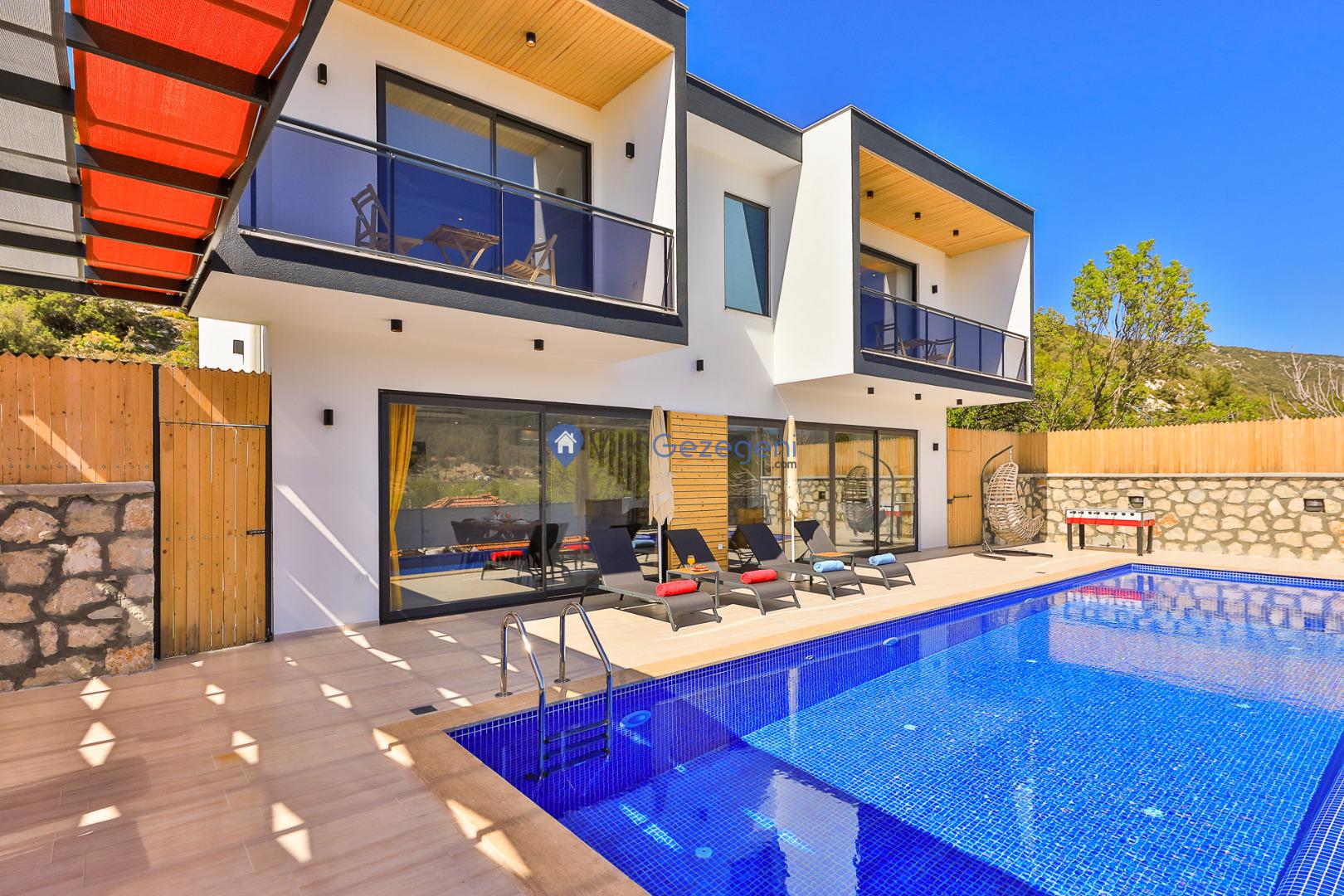 Doğanın sessizliğinde, şehir kalabalığından uzak huzurlu bir tatil hayal ediyorsanız, bu villa tam size göre! Kalkan’ın Sarıbelen Hacıoğlan bölgesinde konumlanan villamız, 2 yatak odası ve 4 kişi kapasitesiyle çekirdek aileler ve balayı çiftleri için ideal bir konaklama seçeneği sunuyor.Yeşilliklerle çevrili doğal bir ortamda yer alan villamız, korunaklı özel havuzu sayesinde özellikle muhafazakar tatil arayan misafirler için mahremiyet sunar. Havuzun dışarıdan görünmemesi, konuklara tamamen özgür ve rahat bir tatil imkânı sağlar.Ahşap detaylarla dekore edilmiş yapısı, doğayla uyumlu mimarisi ve sade ama konforlu yaşam alanlarıyla huzurlu bir atmosfer sunan villamız, tüm temel ihtiyaçlarınıza cevap verecek şekilde donatılmıştır. Geniş veranda, havuz başı şezlonglar, açık hava oturma alanı ve doğa manzarası eşliğinde unutulmaz anlar yaşayabilirsiniz.Hem doğayla baş başa kalabileceğiniz hem de kısa bir araç yolculuğuyla Kalkan merkeze ulaşabileceğiniz bu villa, sakinlik ve konforu bir arada sunar.