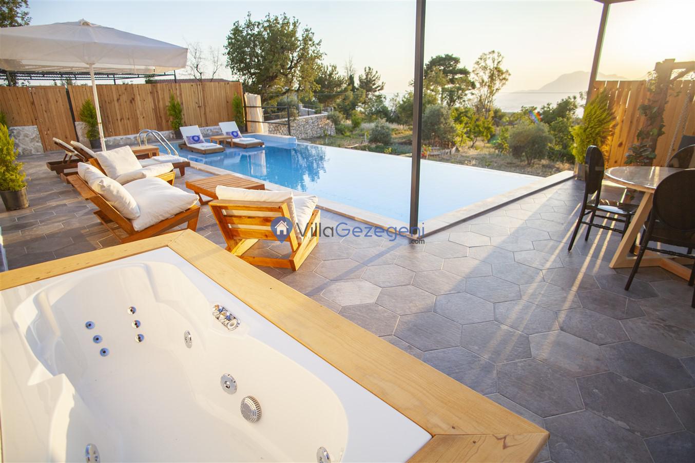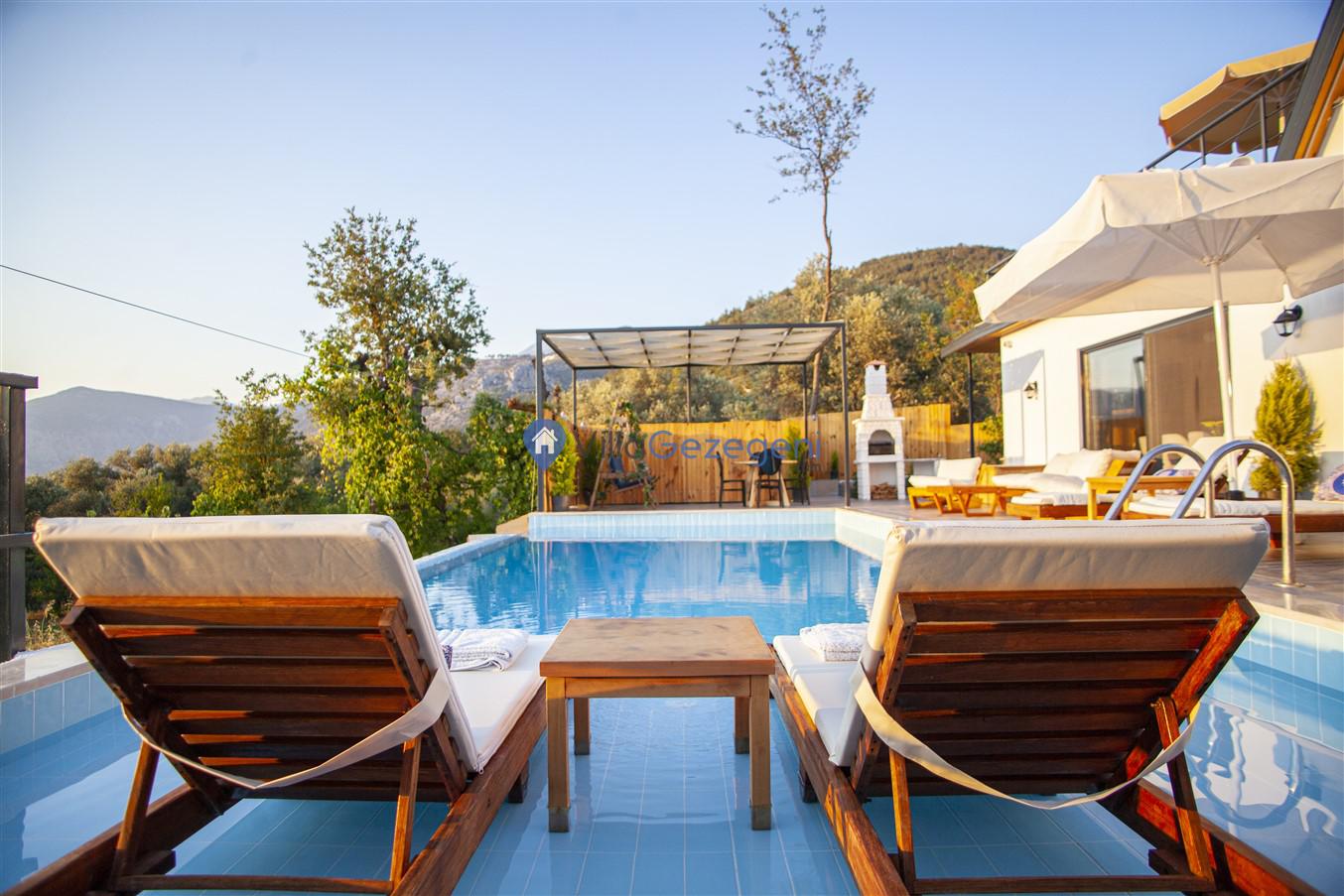 Kalkan Üzümlü' de, 2 yatak odalı, 4 kişilik, muhafazakar kiralık balayı villası