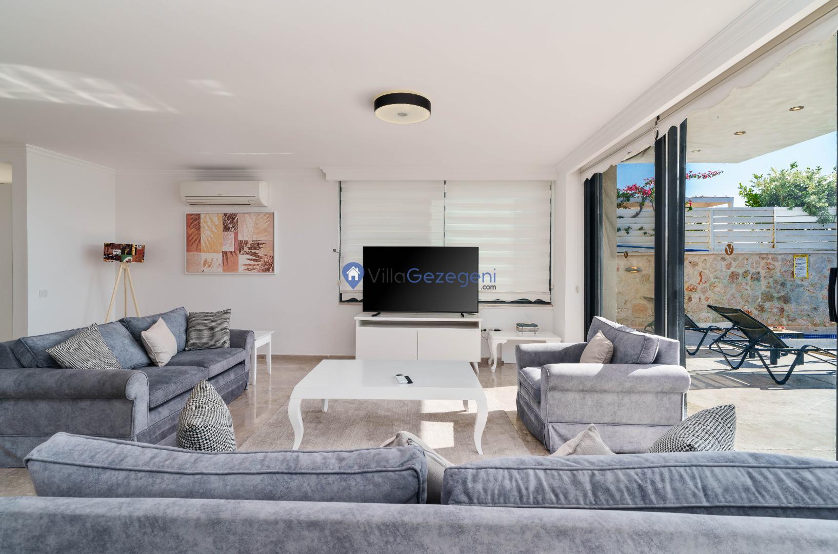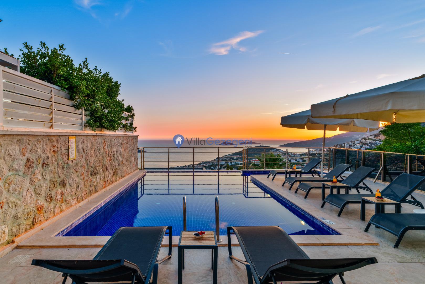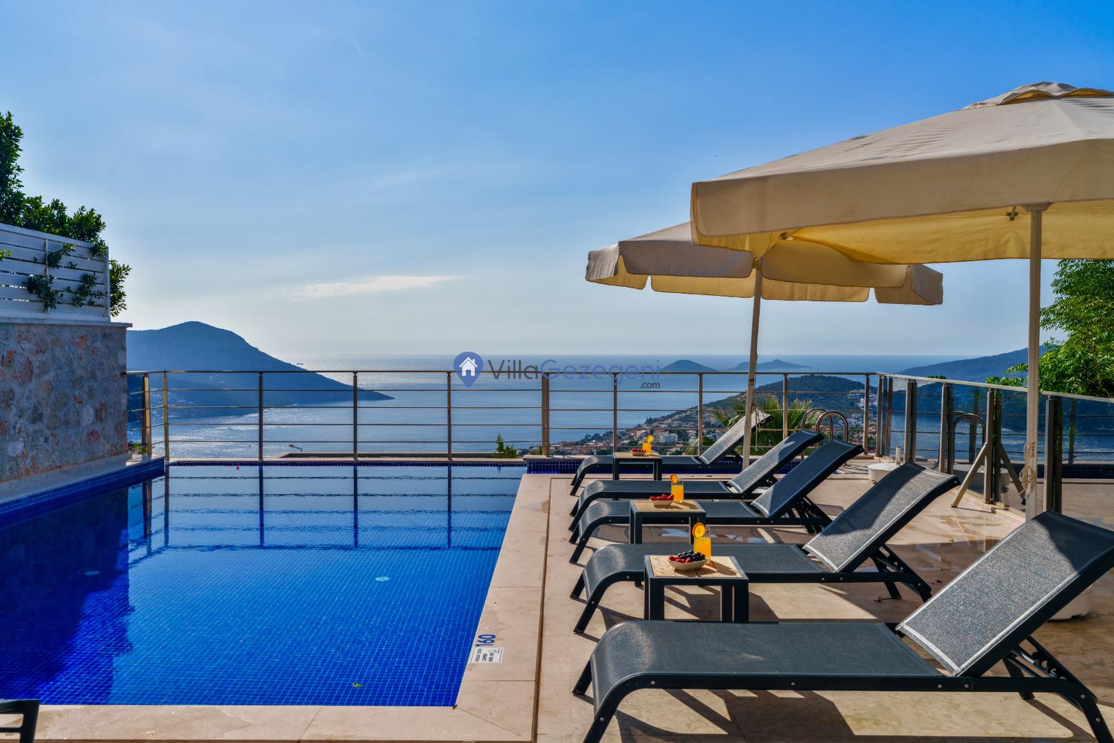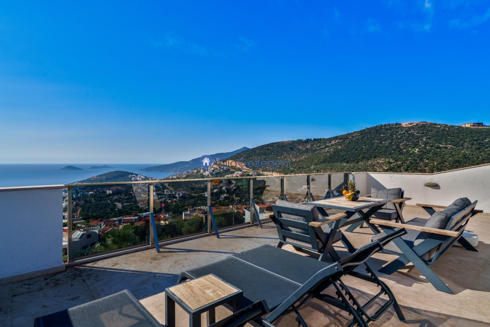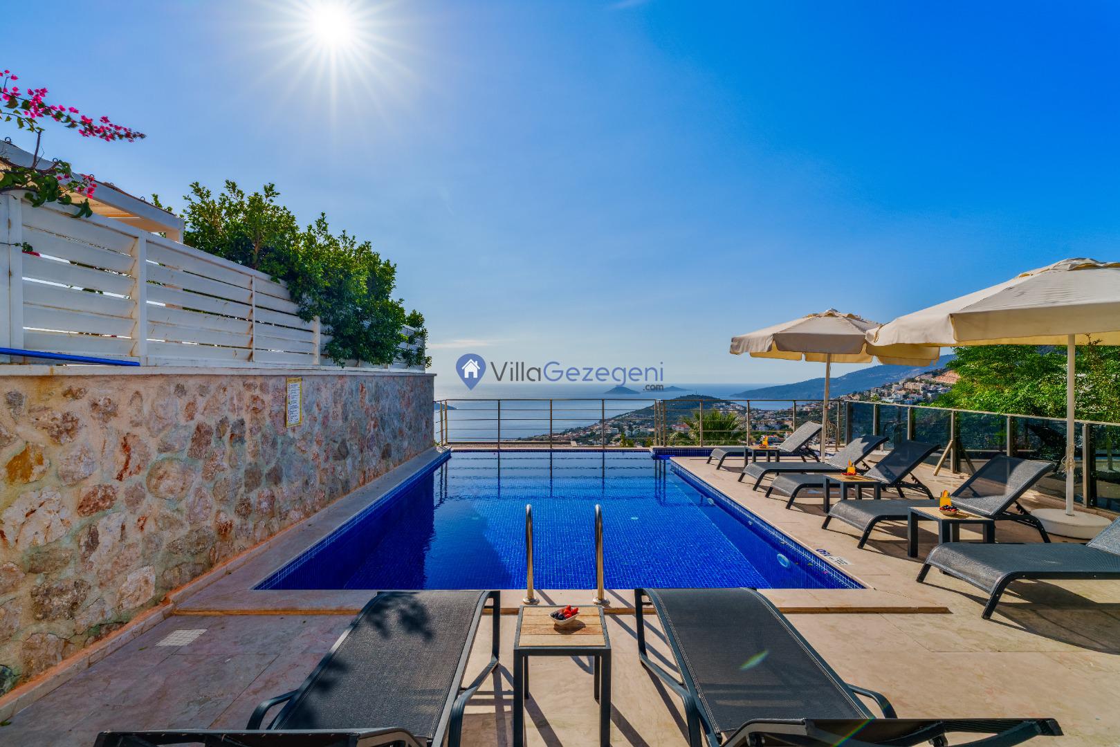 Kaş/Kalkan/Kızıltaş Bölgesinde yer alan 3 Yatak Odalı 6 Kişi Kapasiteli Deniz Manzaralı Tatil Villasıdır.