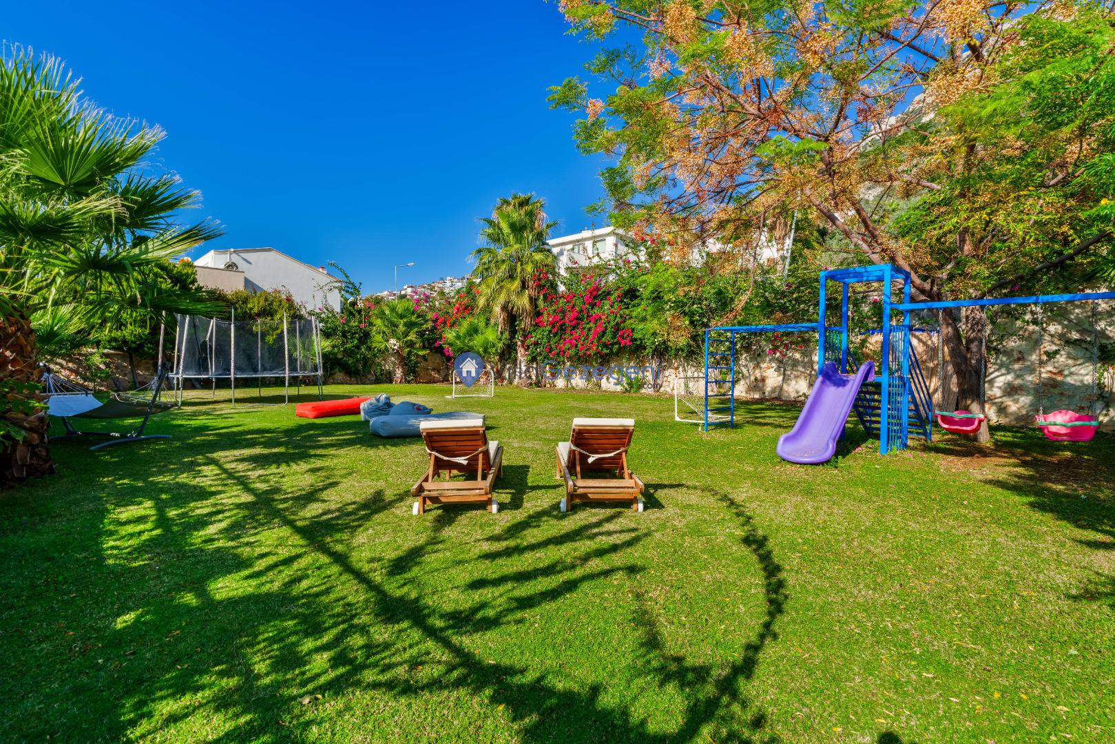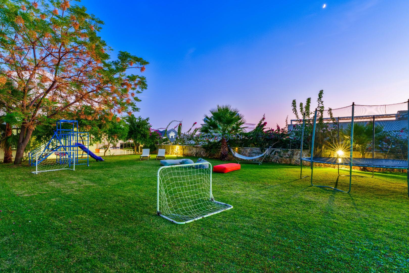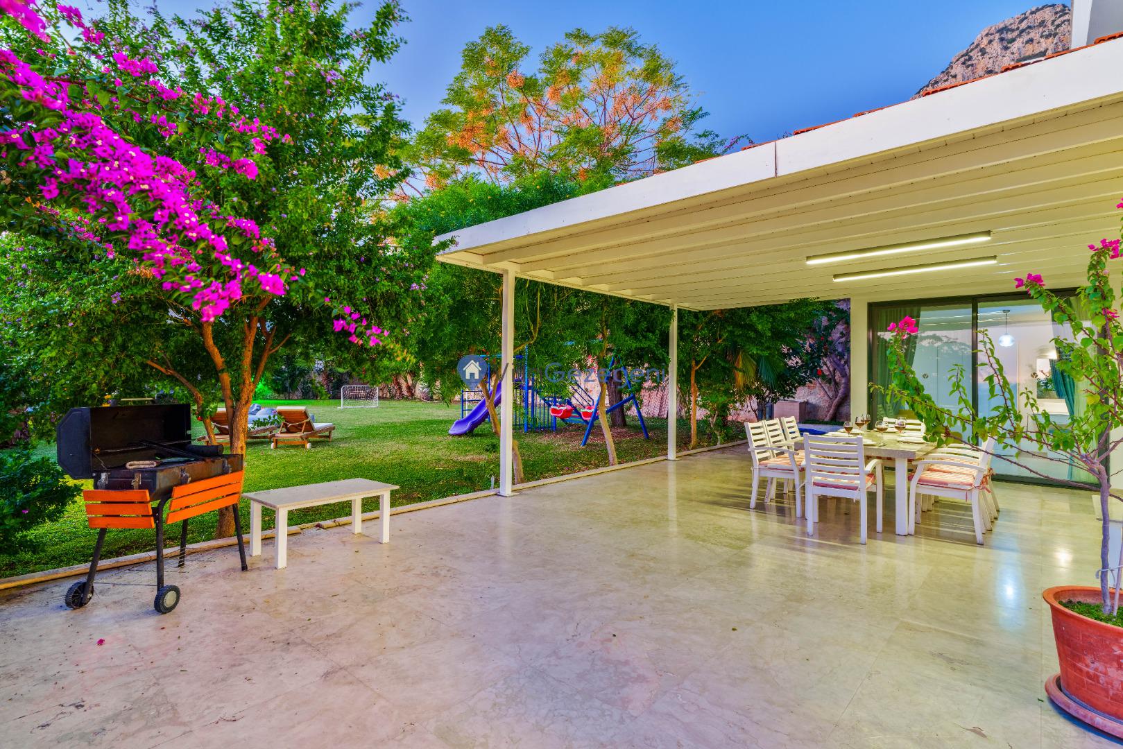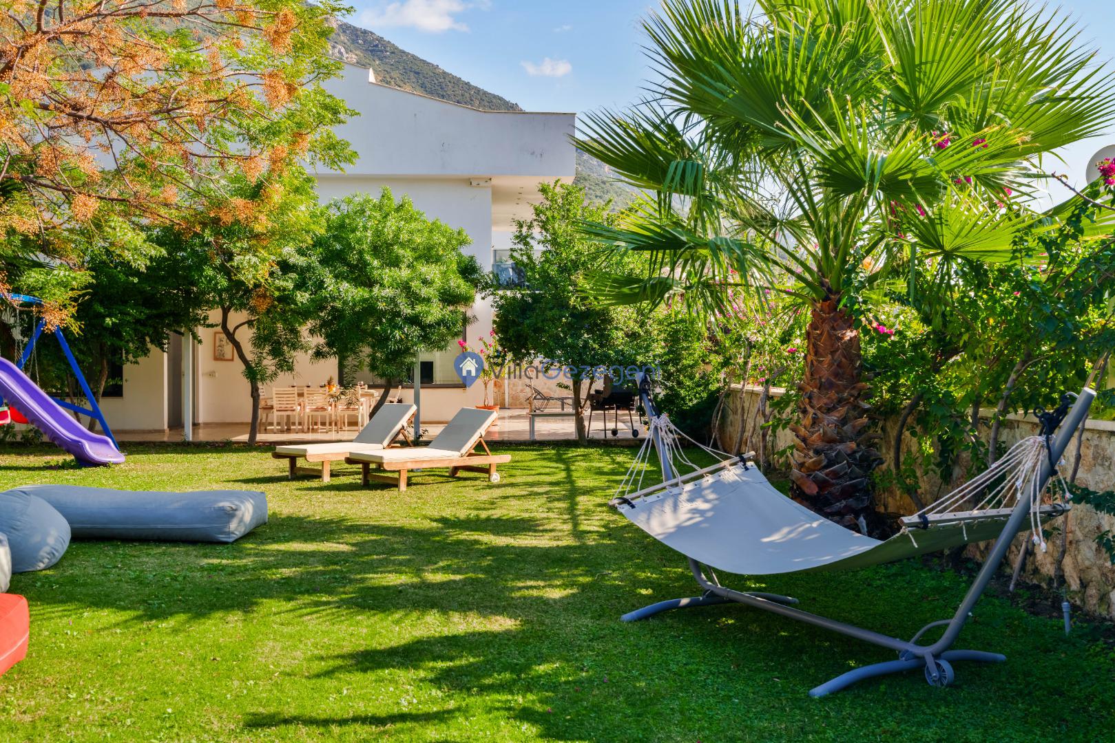 Yemek Masası ve bahçe mobilyaları kullanımınız için hazır bulunmaktadır sevdikleriniz ile beraber yemekler yiyip sohbetin dibine vurabilirsiniz. Villanın bahçesindeki salıncak ile keyifli vakitler geçirebilirsiniz.