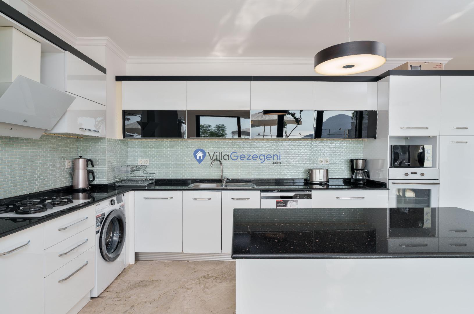 Villamız günlük hayatta sık kullanılan; Mikrodalga fırın, ankastre fırın, buzdolabı, çamaşır makinası, bulaşık makinesi, elektrikli su ısıtıcı kettle, ankastre 4’lü ocak, 4 kişilik yemek takımı, kaşık ve çatal takımı, tencere ve tava takımı, bardaklar yer almaktadır. İhtiyacınız durumunda villamızda bulunmayan malzemeler hakkında bizle iletişime geçebilir ve yardım isteyebilirsiniz.